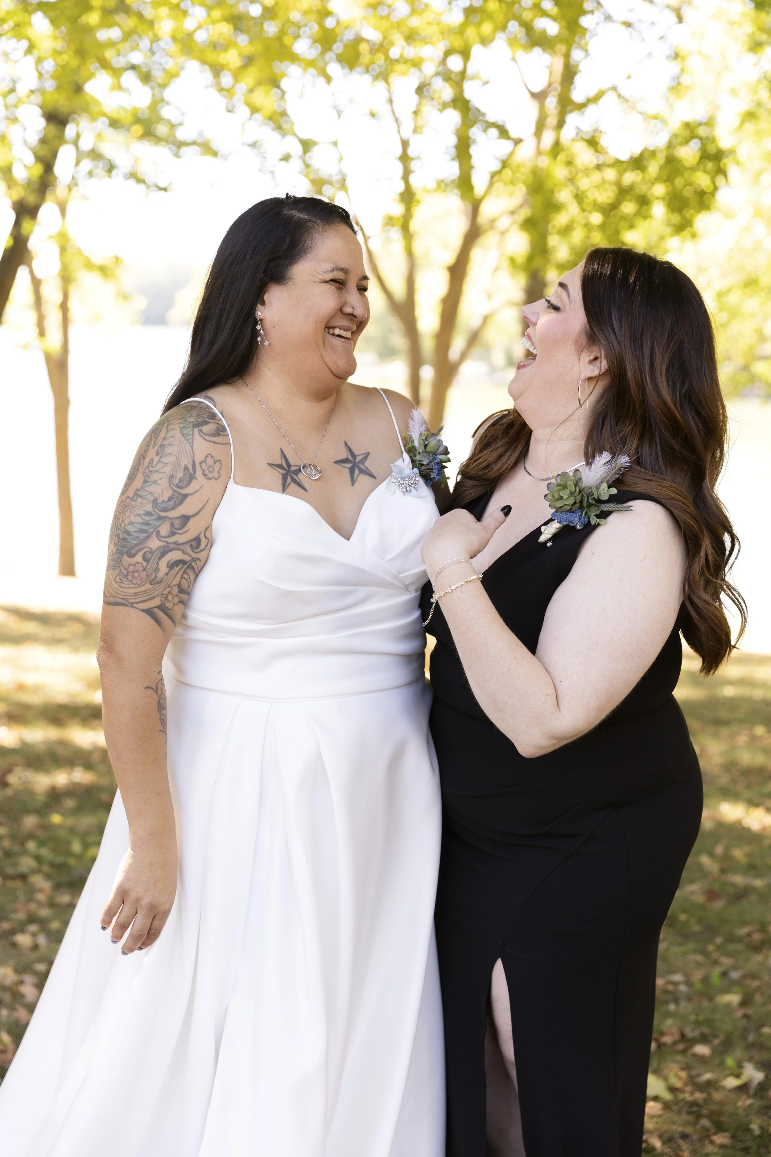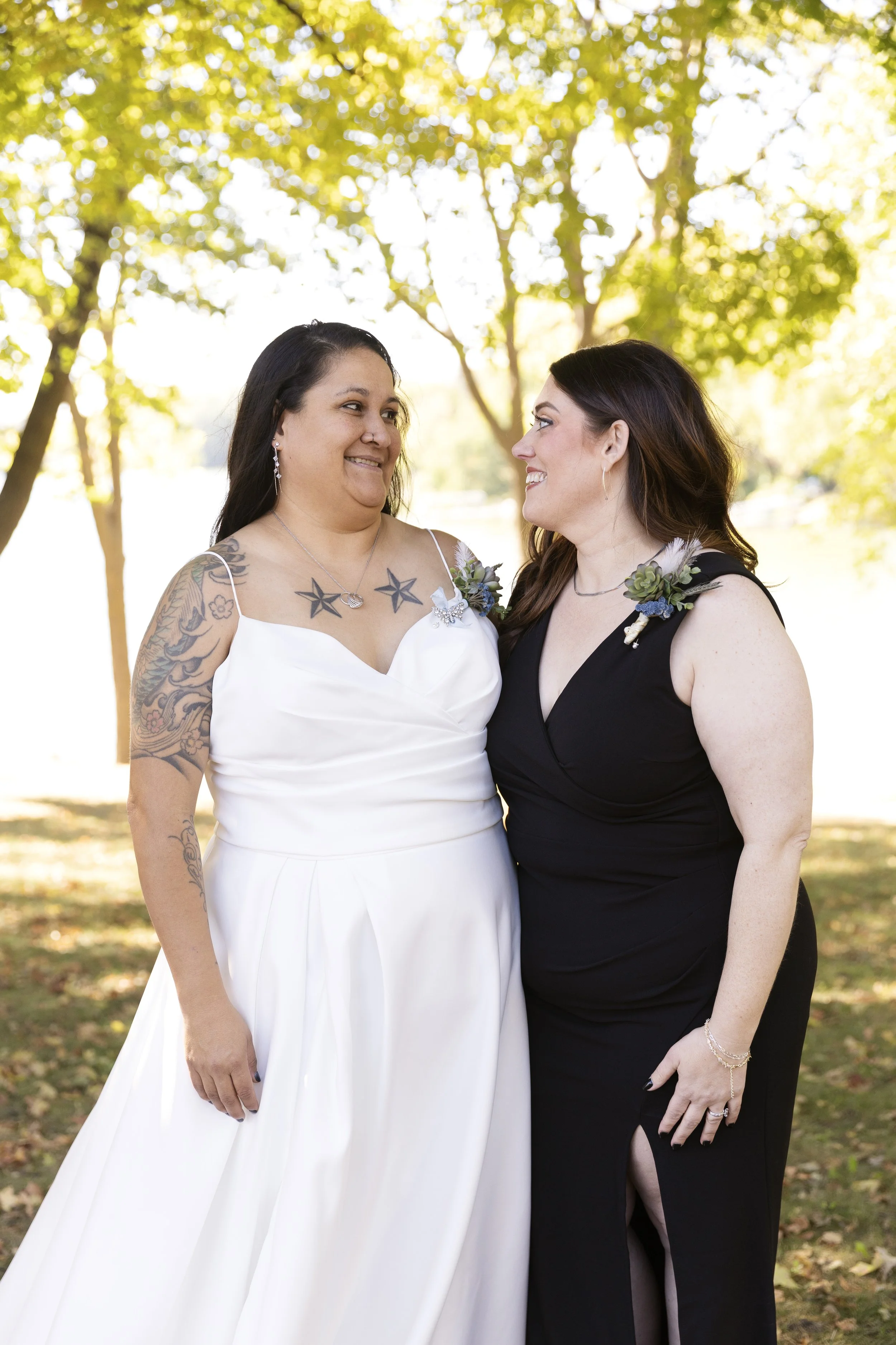 Sam and Bre got married on a beautiful October Friday in Southern Minnesota. The way they fixed each other’s hair and made sure each other was doing well was adorable. Bre met that caring person. Sam met that person she can share cute glances at…forever.