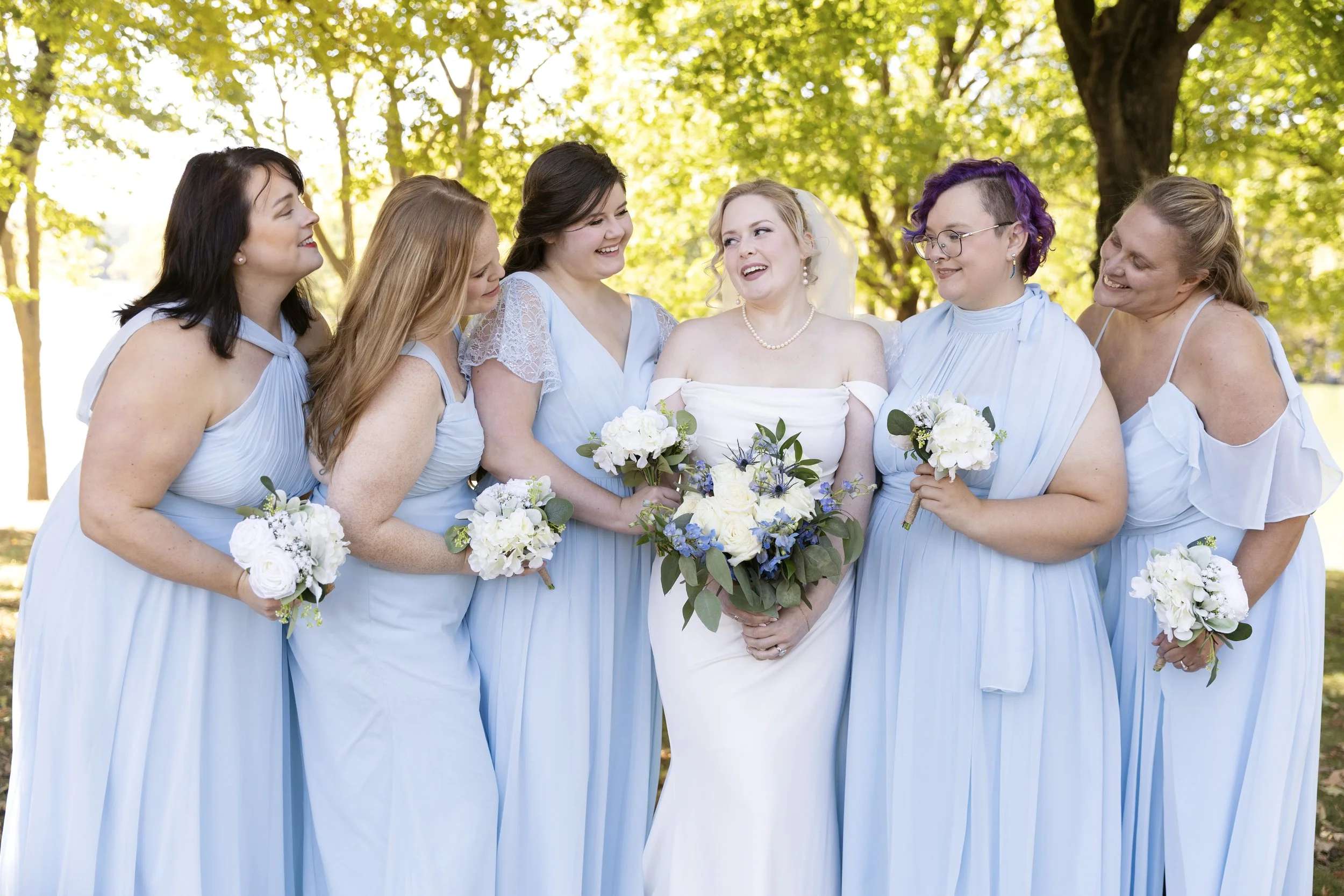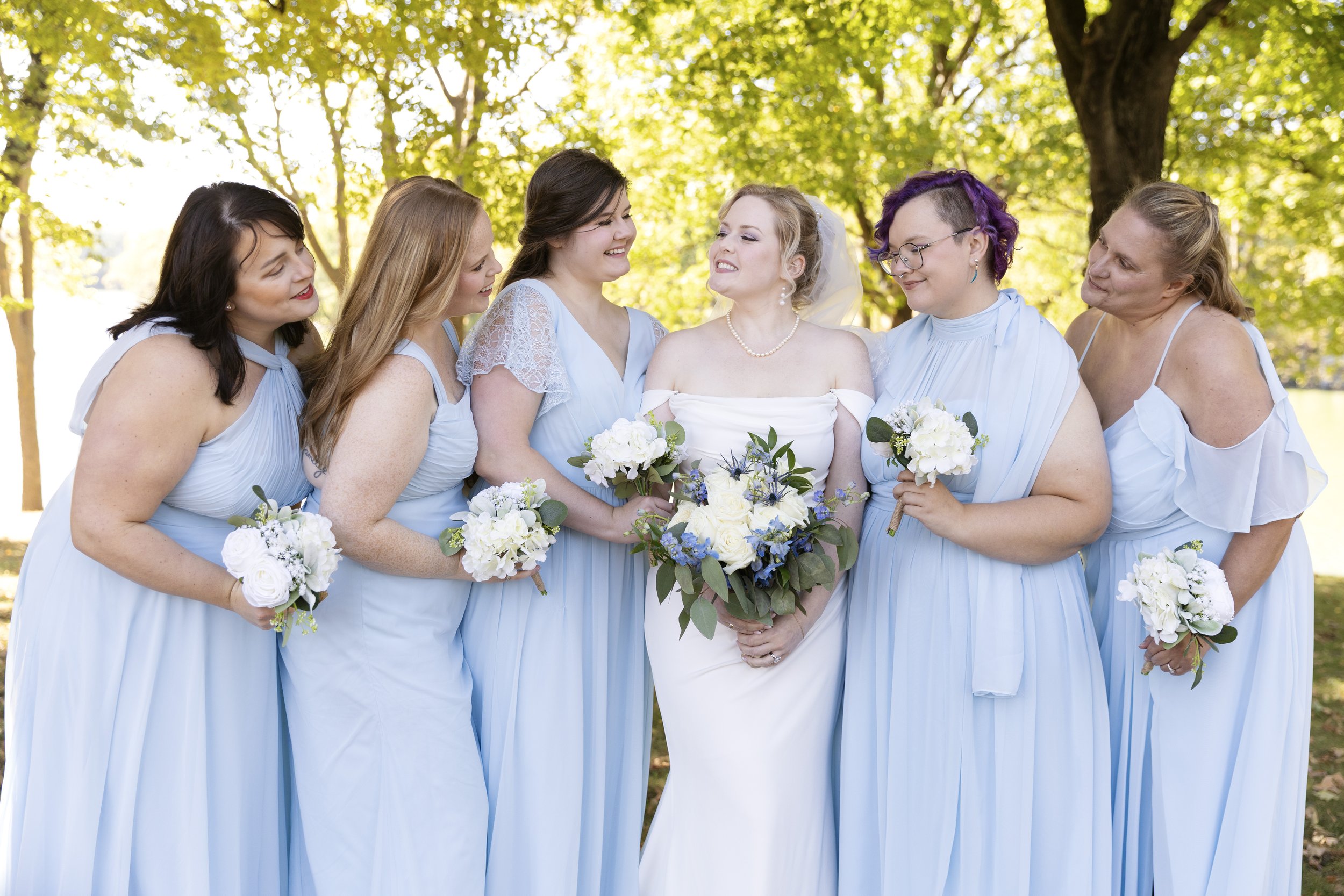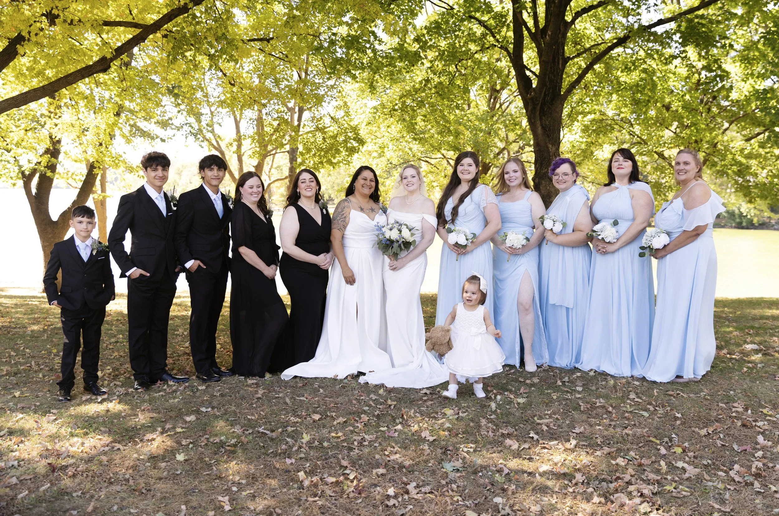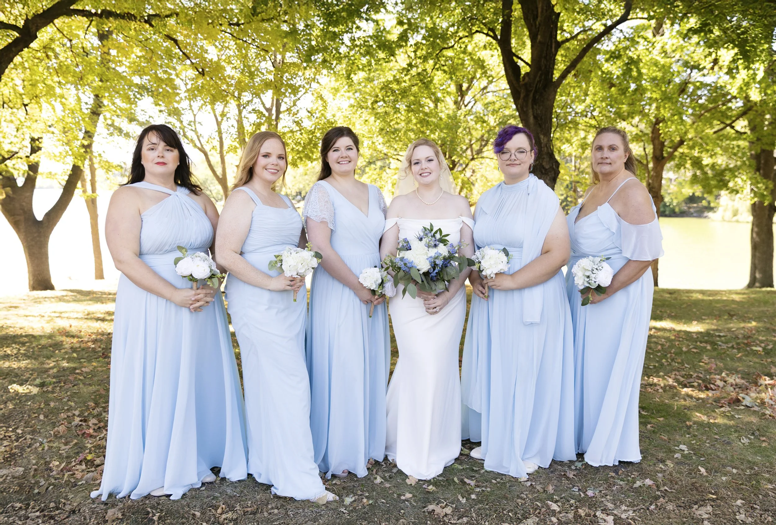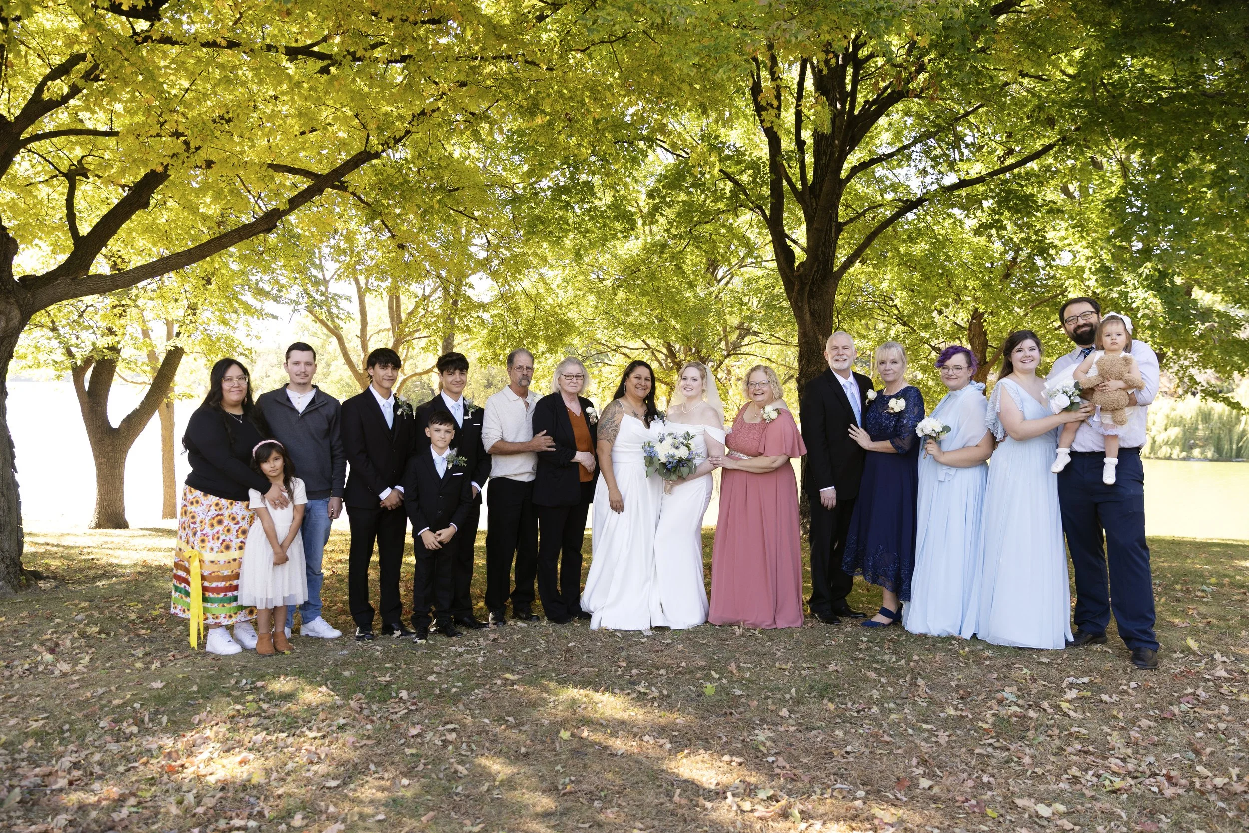 The Texas couple decided to have a beautiful lakeside wedding in Minnesota so their Midwest family could come. The couple included all of their family in the wedding, and close friends to have fun with. We easily came up with fun ideas for posing. Sometimes, large wedding parties have a tough time with posing. Every single person easily got understood how to pose with little coaching.