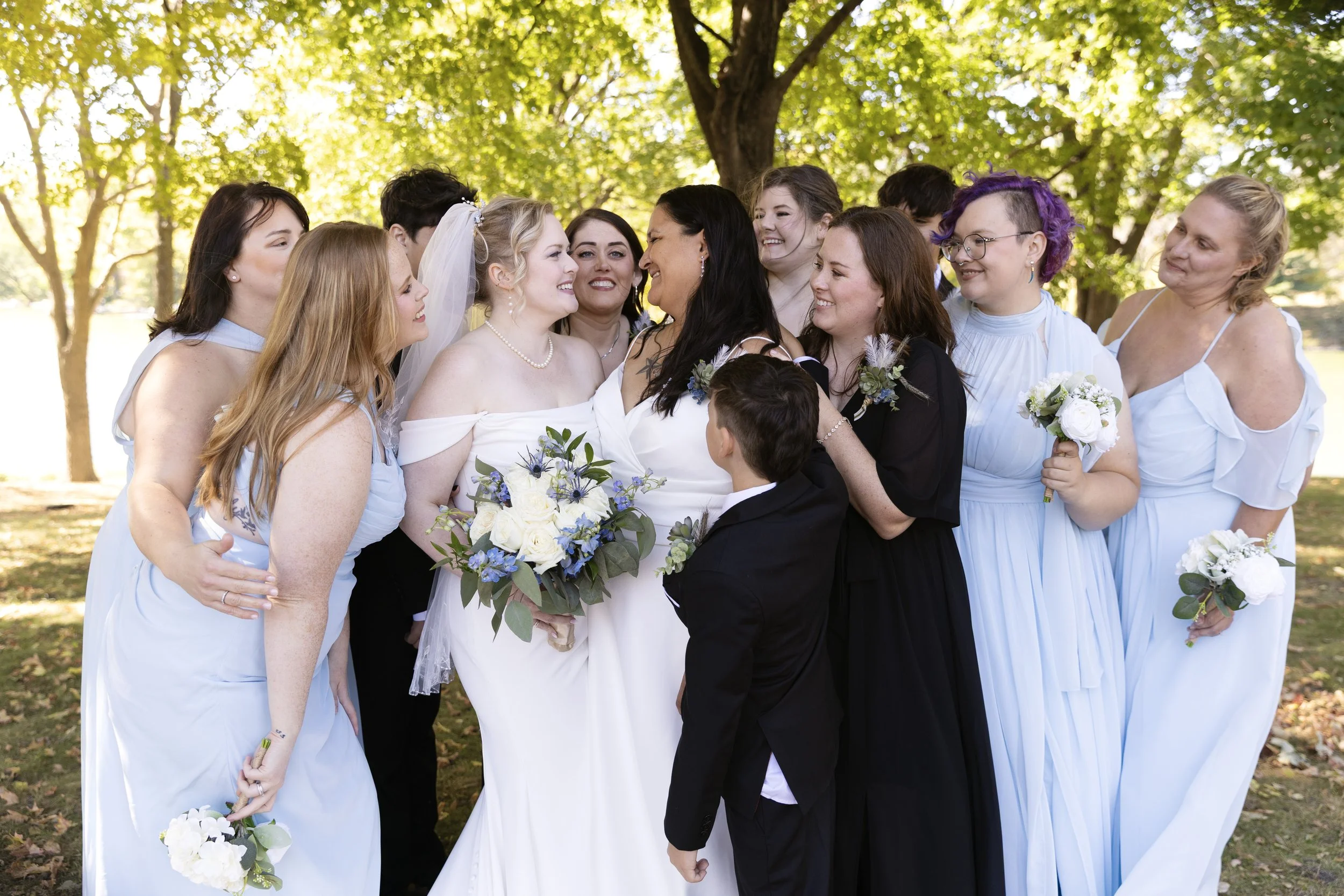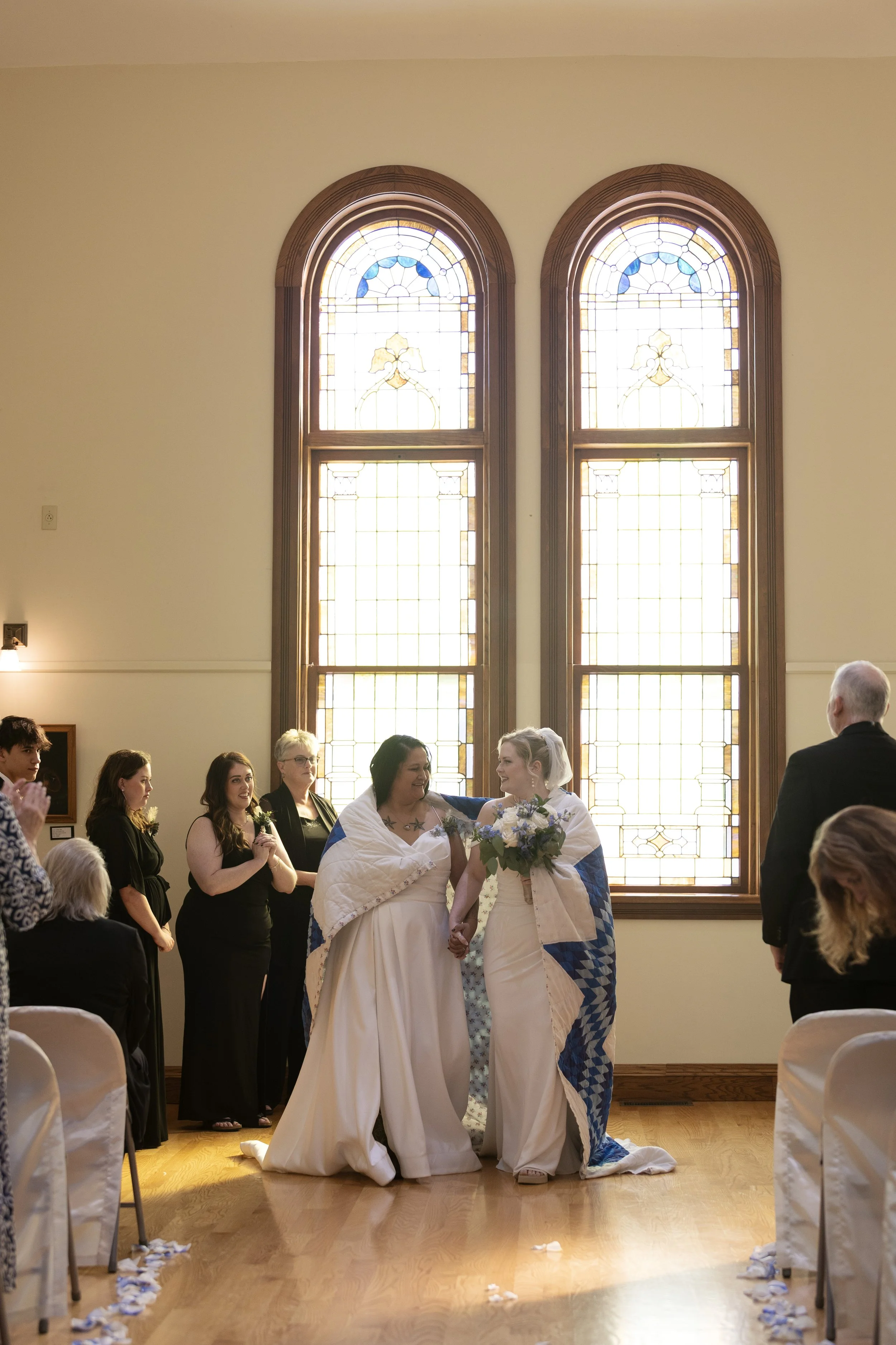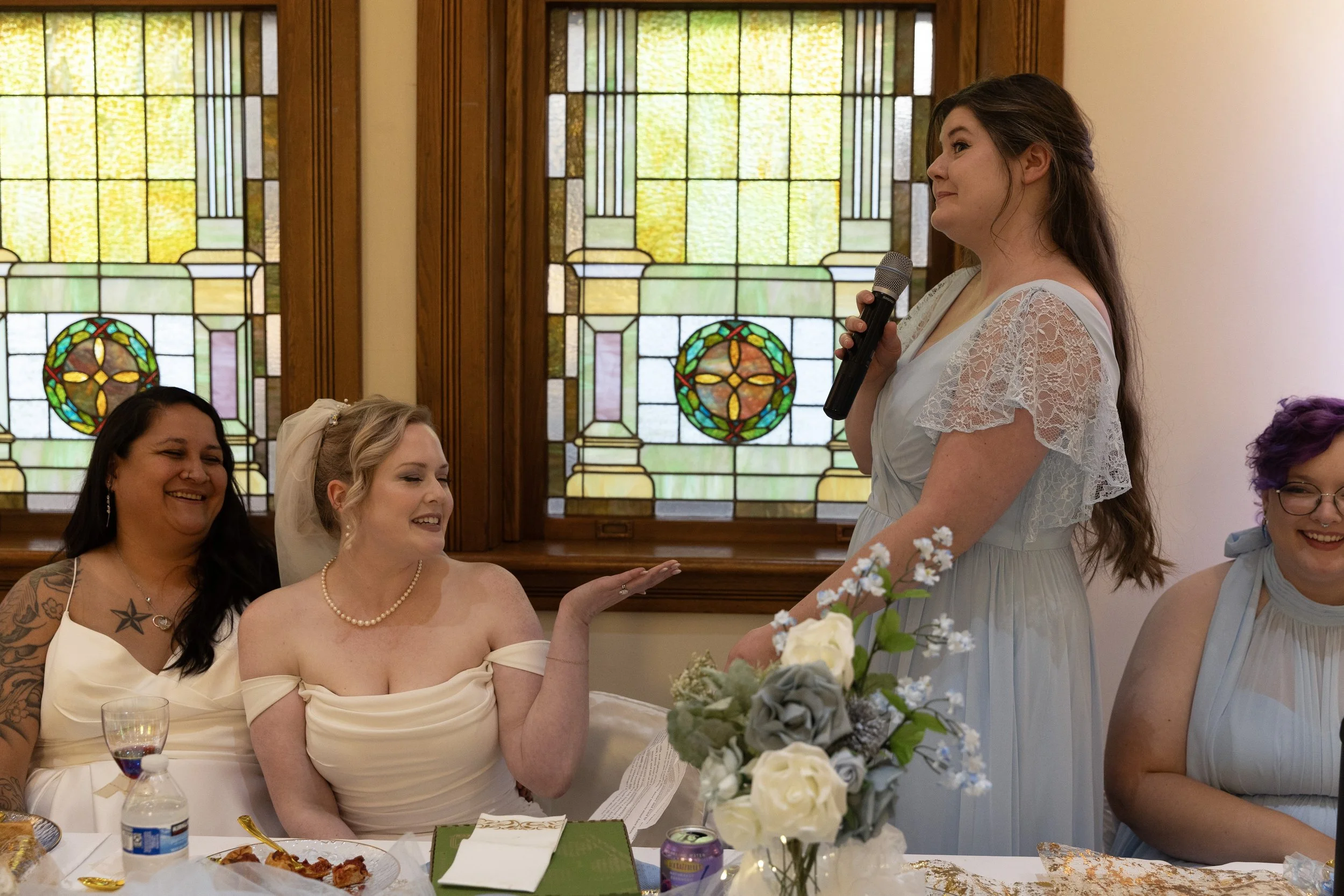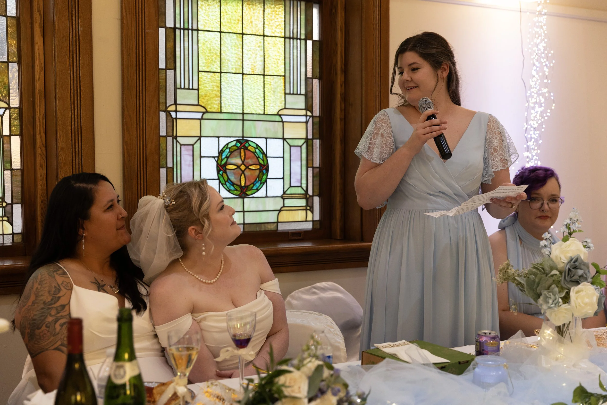 On the last day of summer, it just happened to be one of the windiest. As Midwestern’s, we talk about the weather because it’s our way of filling in the awkward moments when the wind is blowing hair around our faces. Much like hair being our face, some of us also do not like being in the spotlight. A wedding day can be a whole day of being in the spotlight. When Shandi and Tom had time alone, either on the dance floor or posing, Shandi would sing (either well or in humor) to ease to awkwardness of being in the spotlight. Her ‘robot,’ as she affectionately referred to Tom, and her smiled and laughed like it was ‘their way’ to ease awkward situations. When you meet someone that just ‘makes sense’ in your life, there are many ways you find peace in each other. If singing awkwardly with your other half is what makes you two laugh, keep singing.