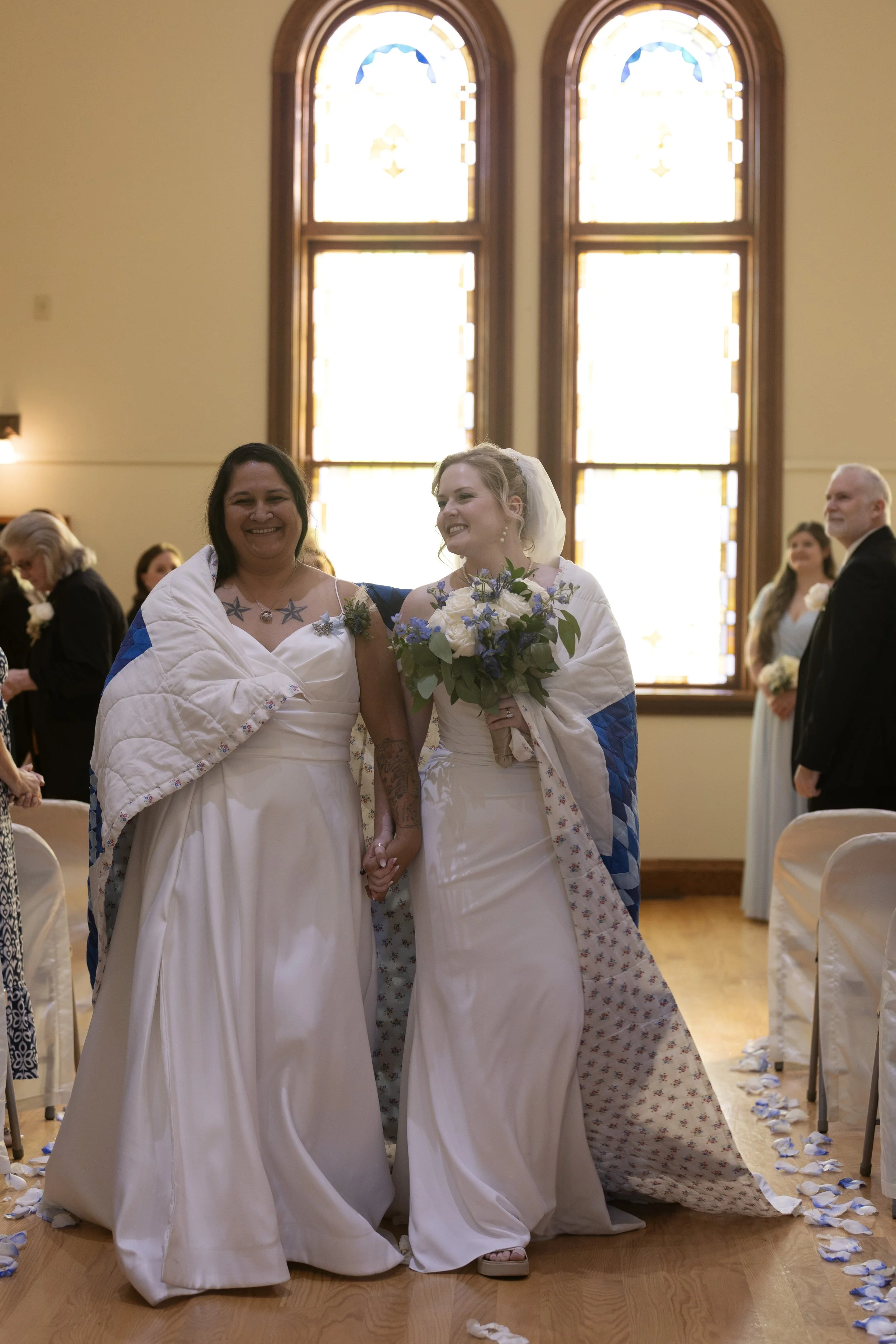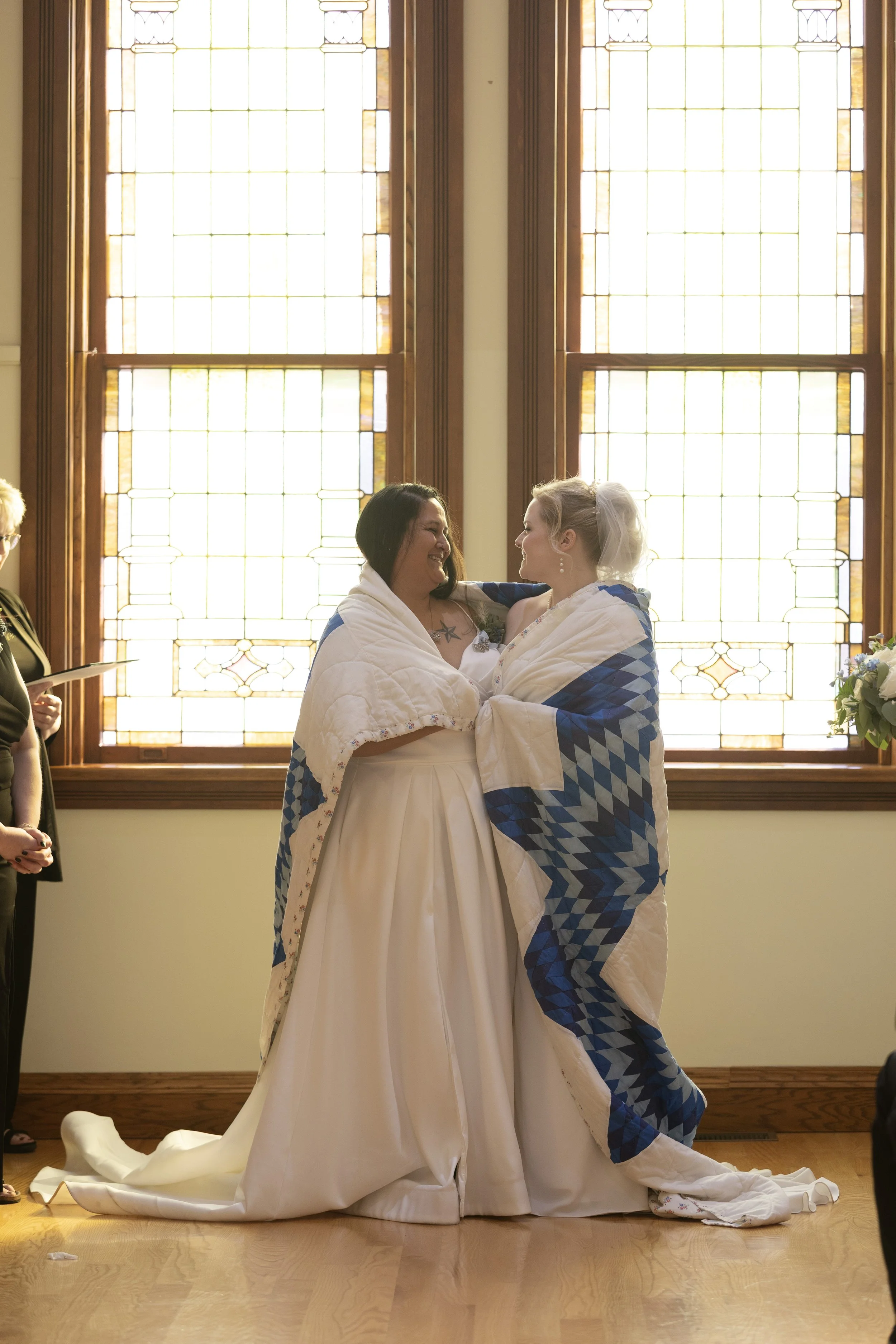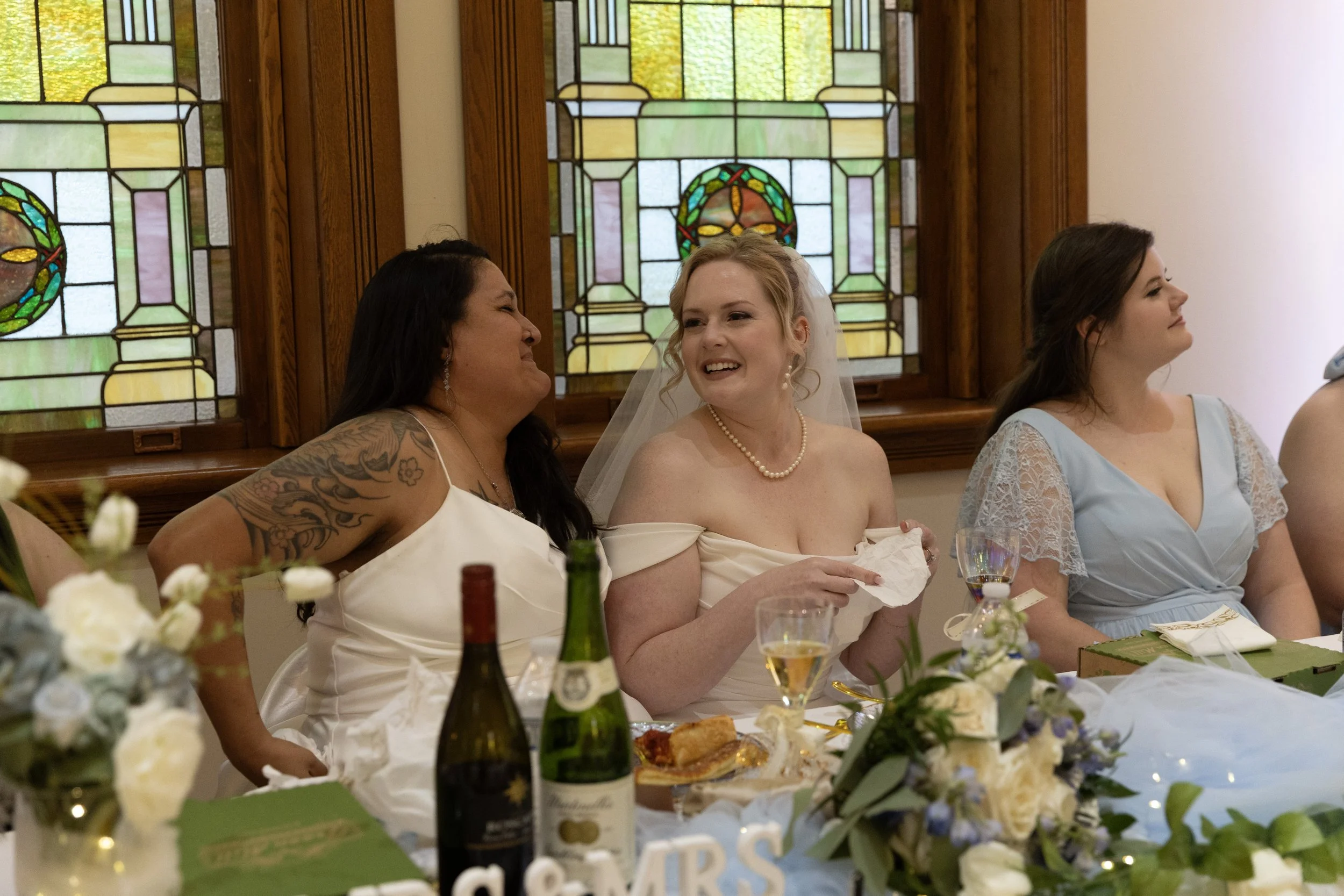 What would your way of making your wedding unique to you two? For Jessie and Brody, it was books at tables for people to take home, blue sunglasses with their names, drinking a glass of beer during the ceremony (their version of a ‘sand ceremony’), and spending time with their guests.
