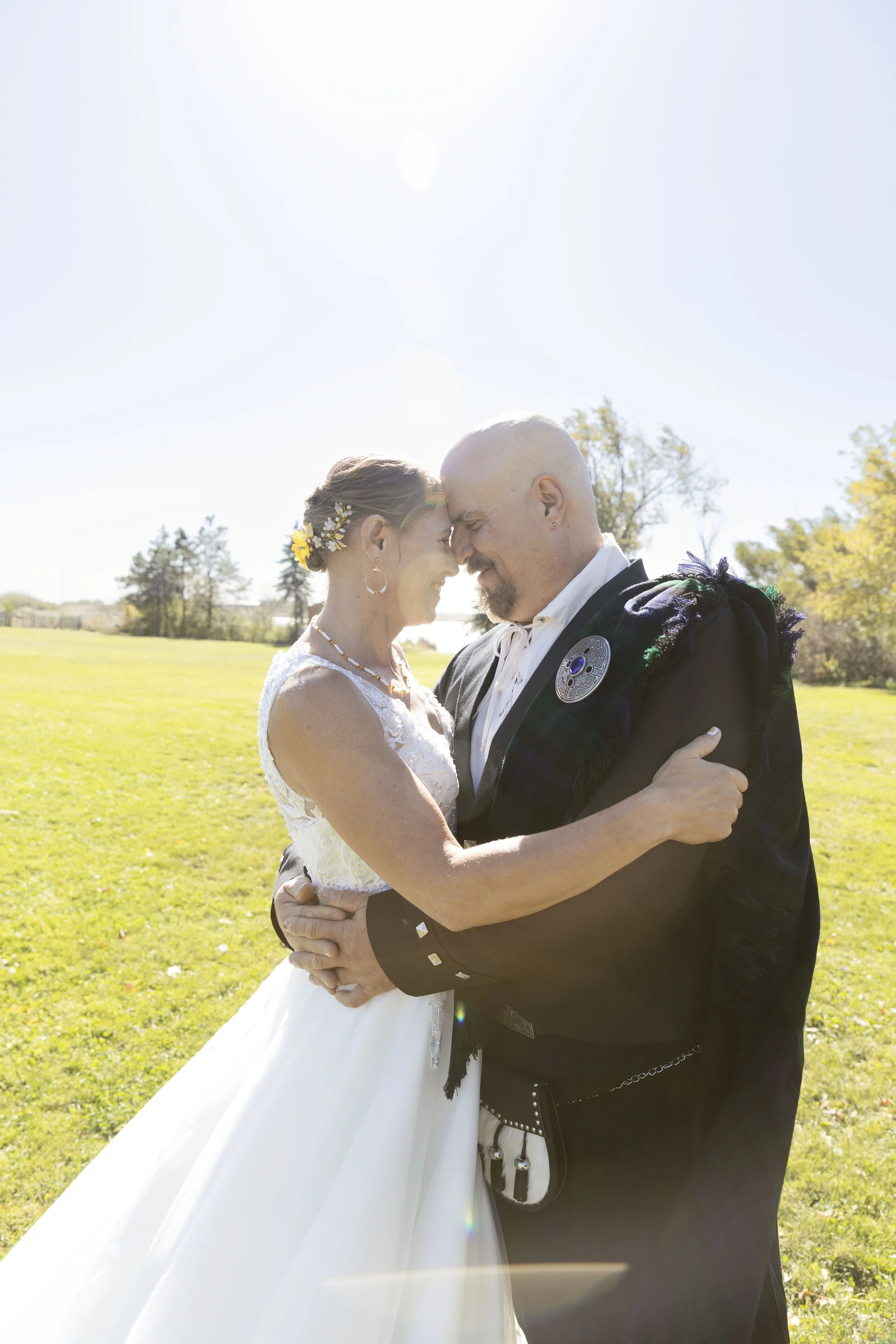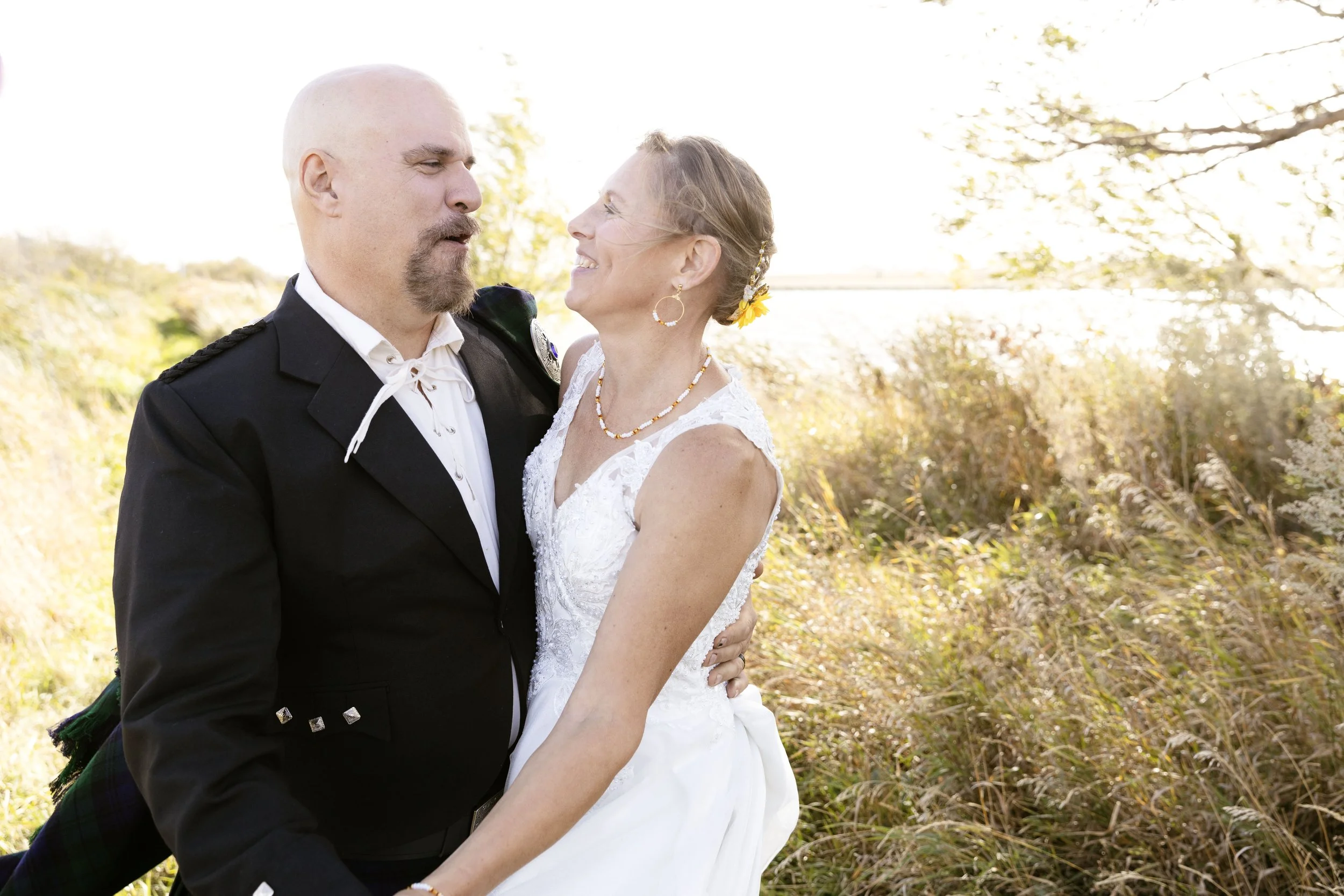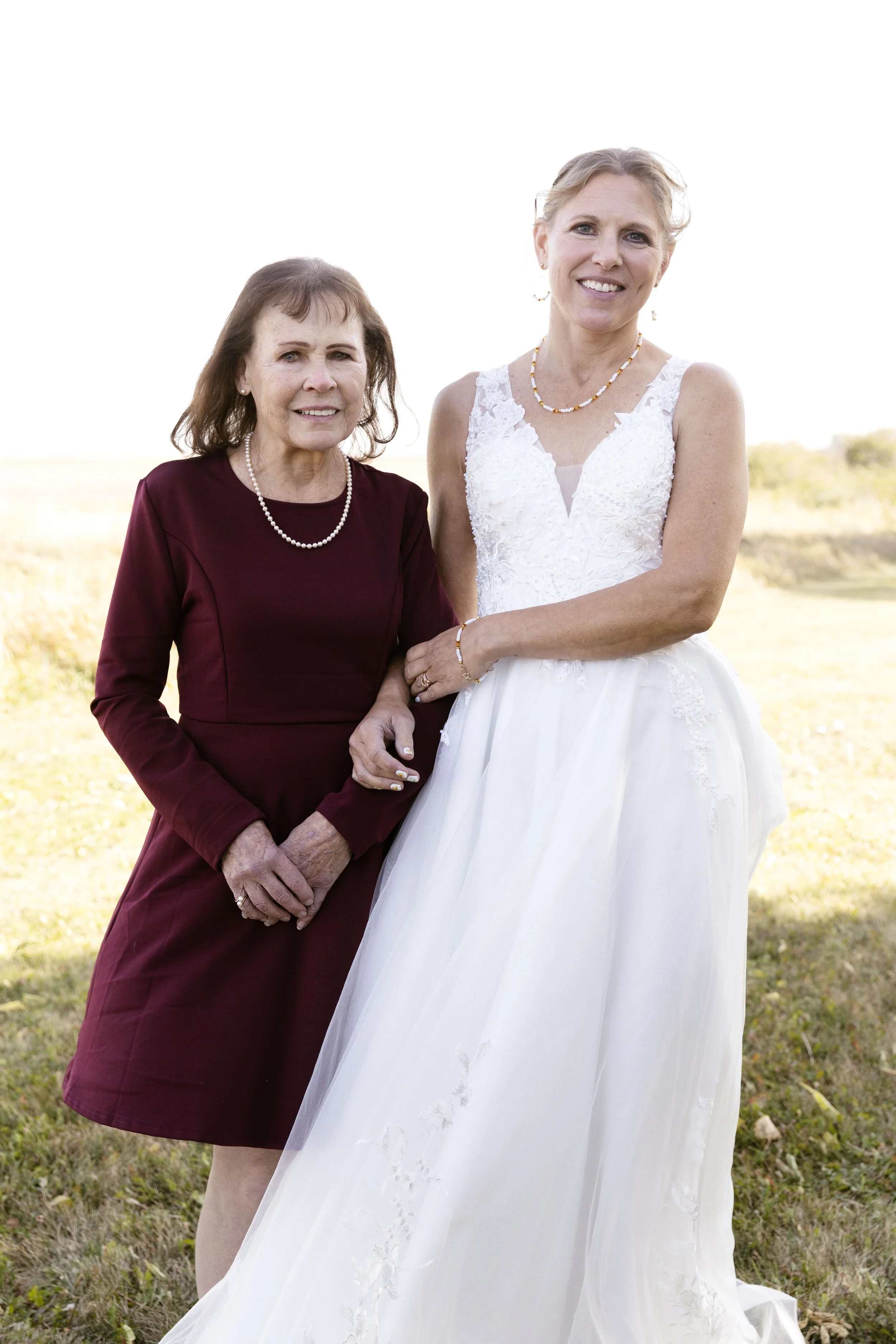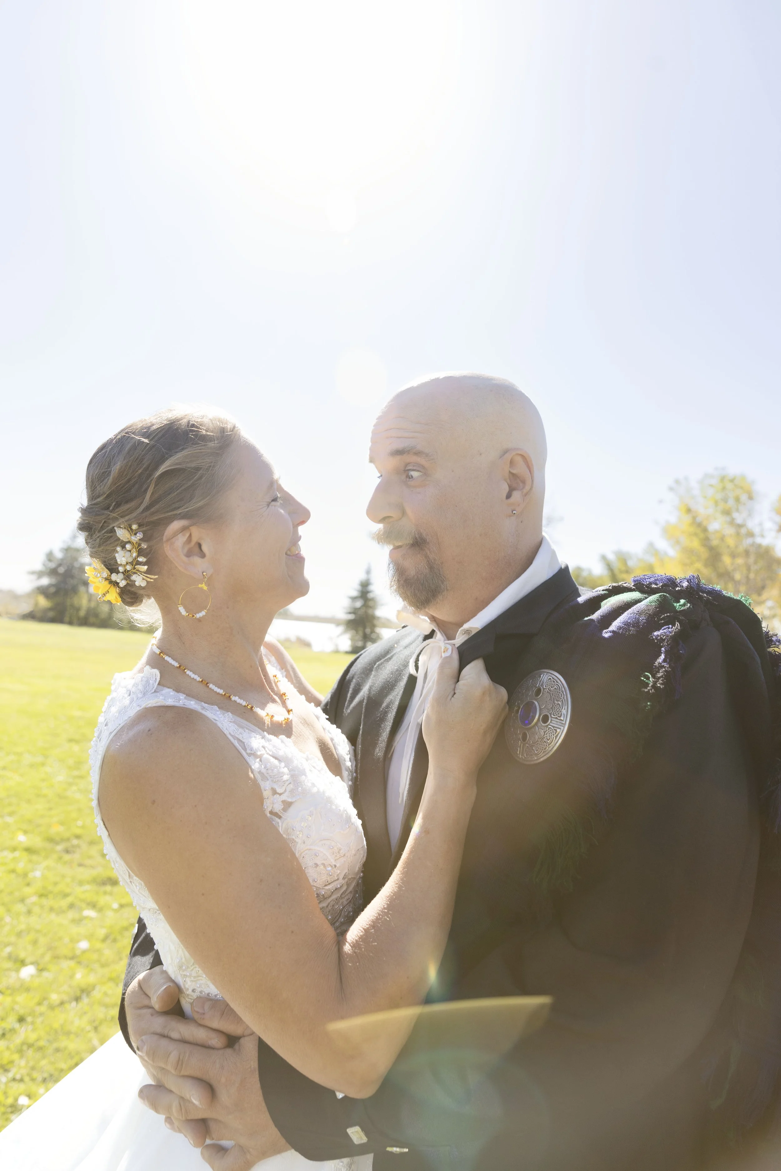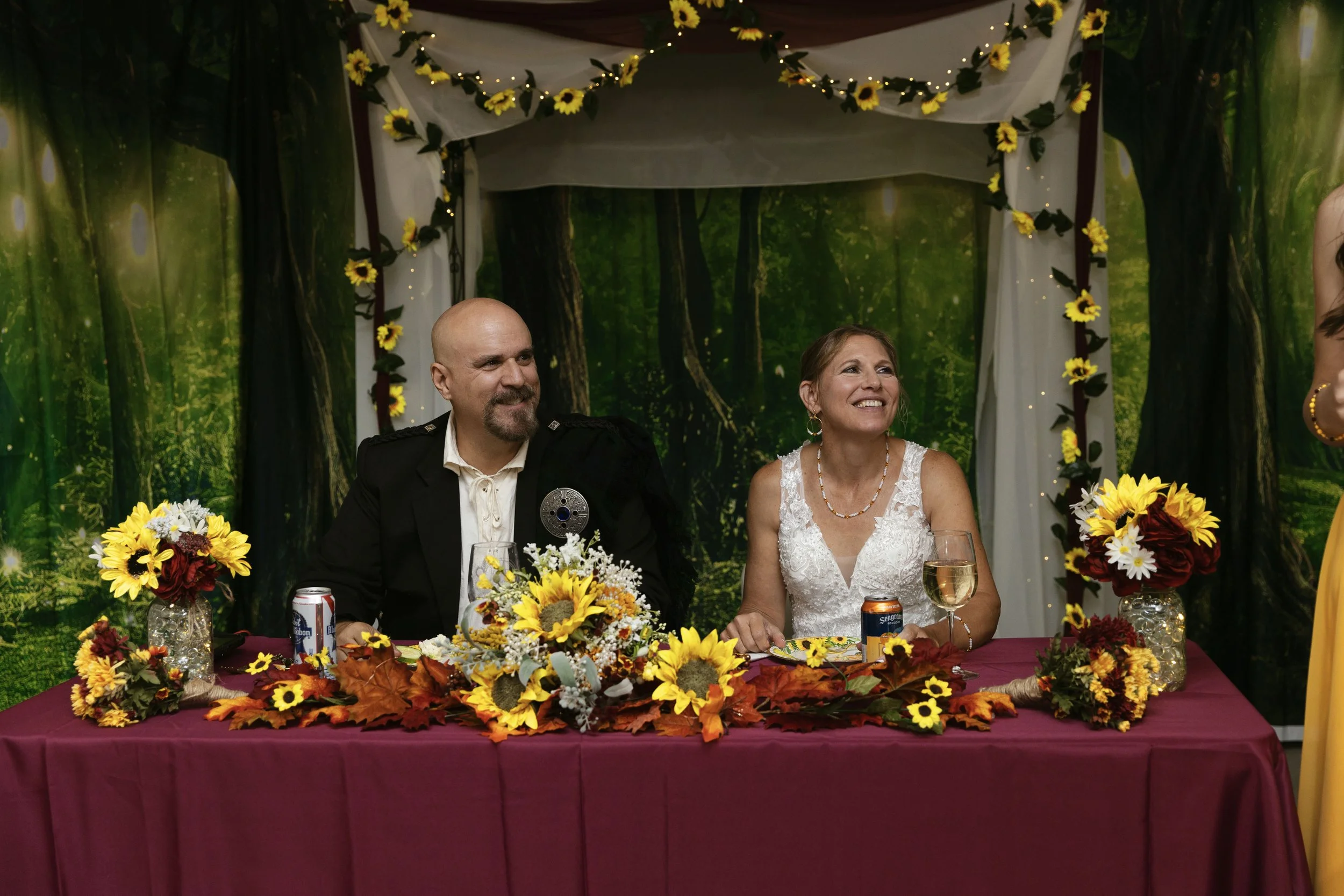 On a windy, sunny October day in 2024, Christine and Walt got married on their own land surrounded by a few friends, and family. It was fitting that sunflowers were part of the decor on such a sunny day. The wind added a sort of editorial feel to their portraits.