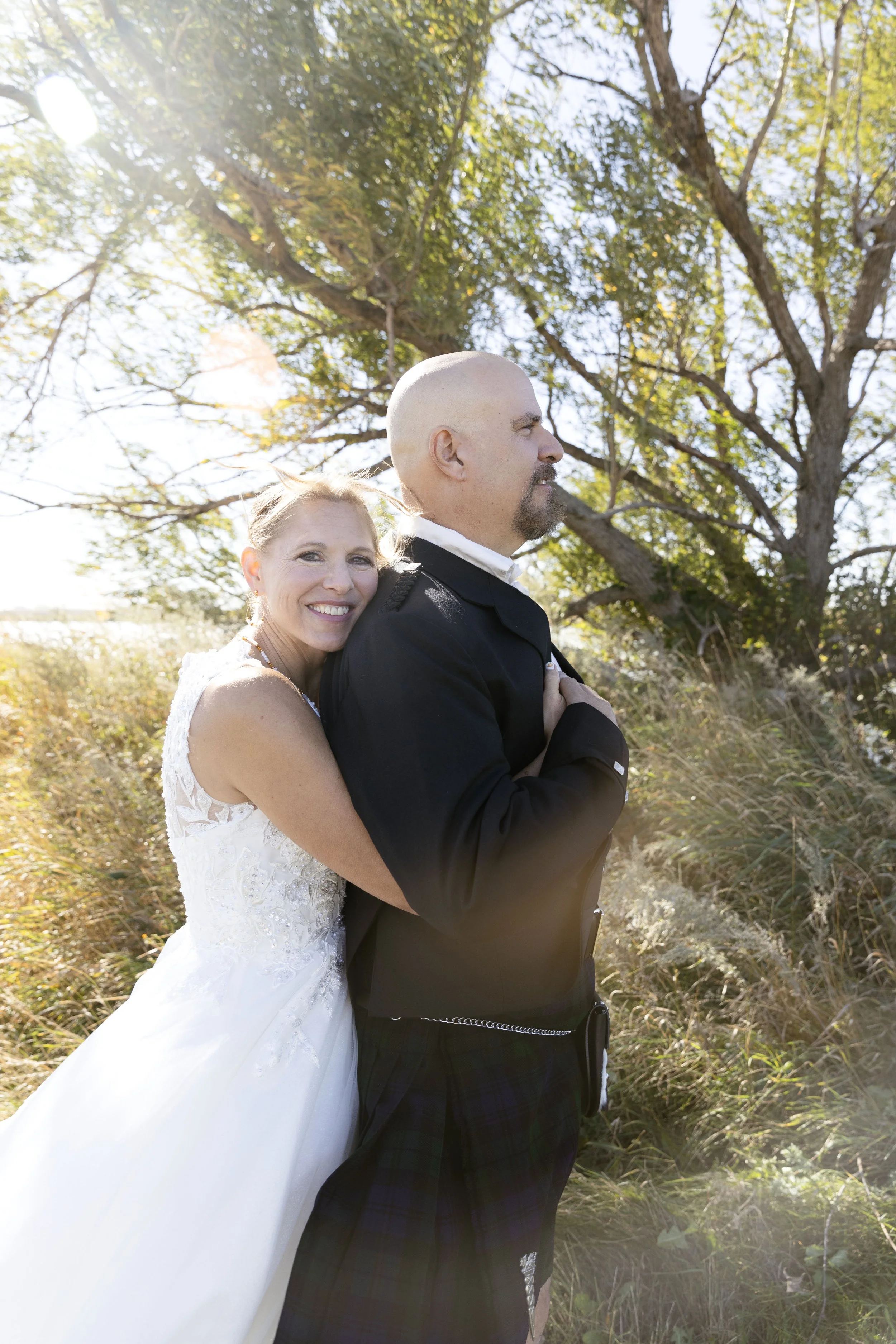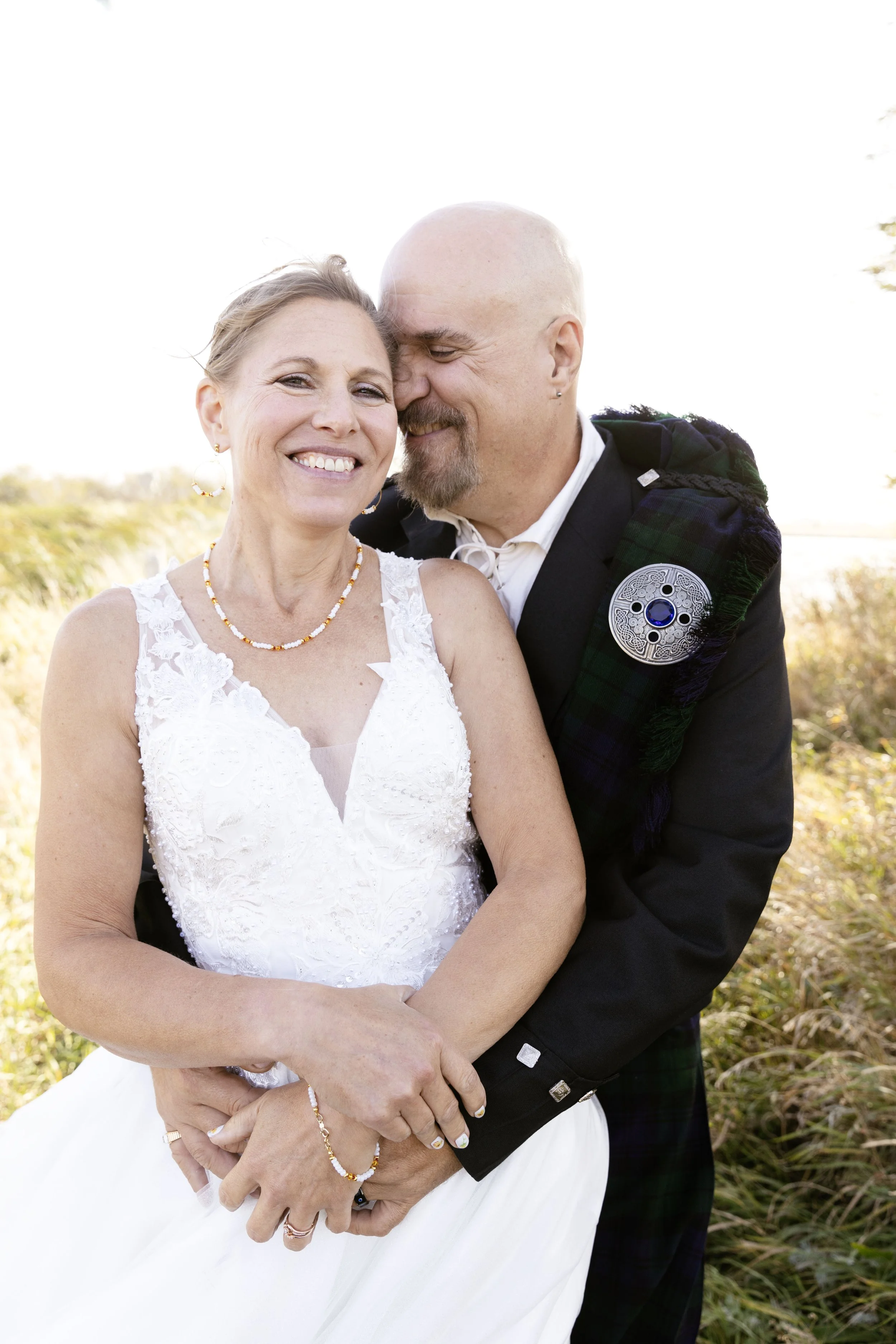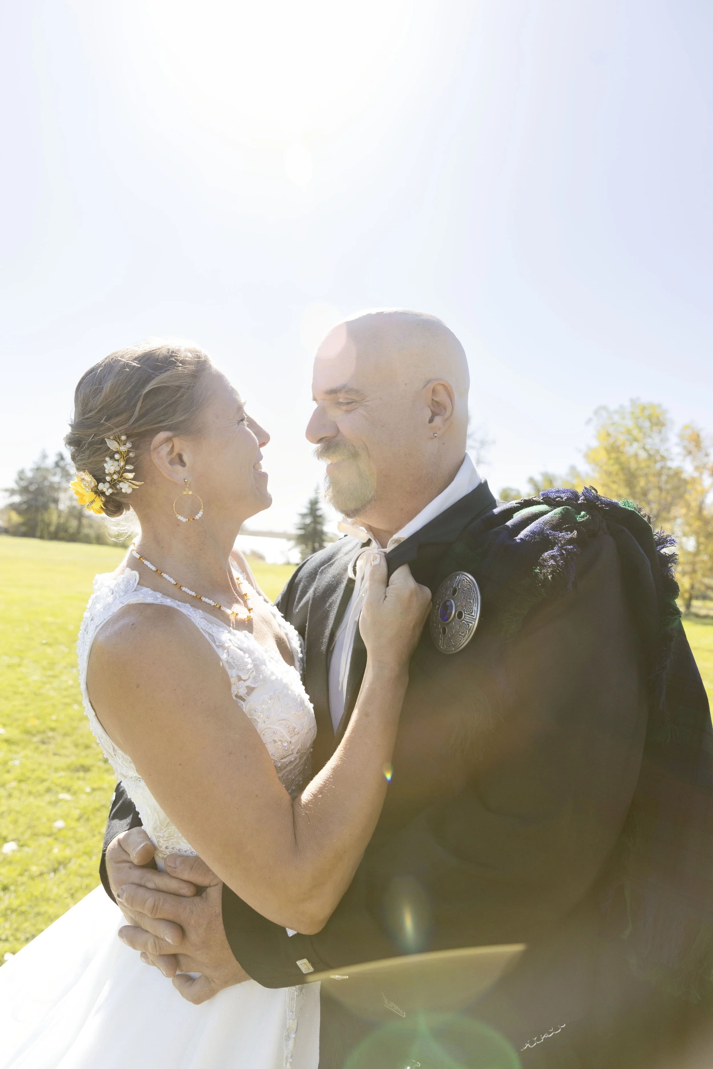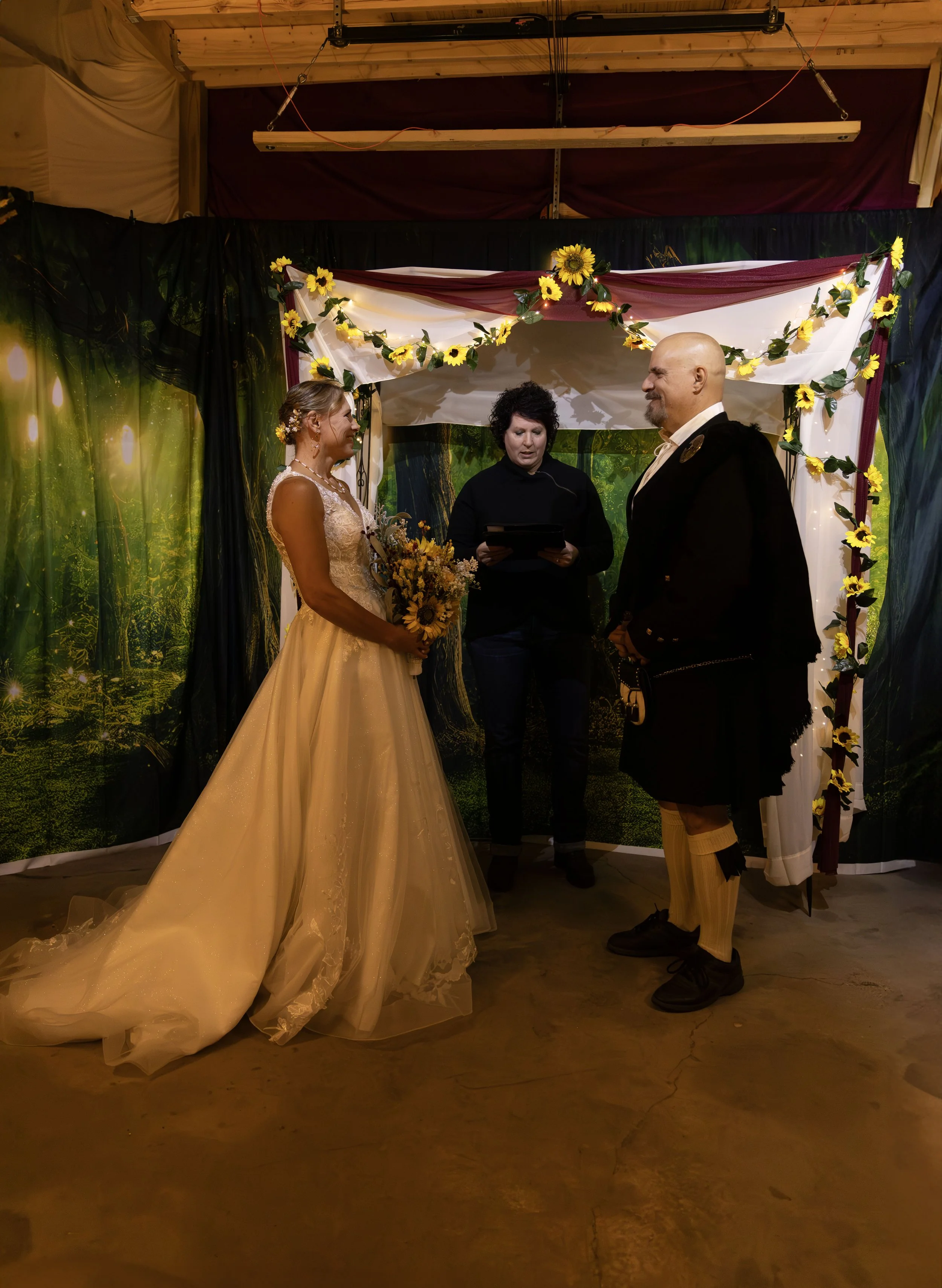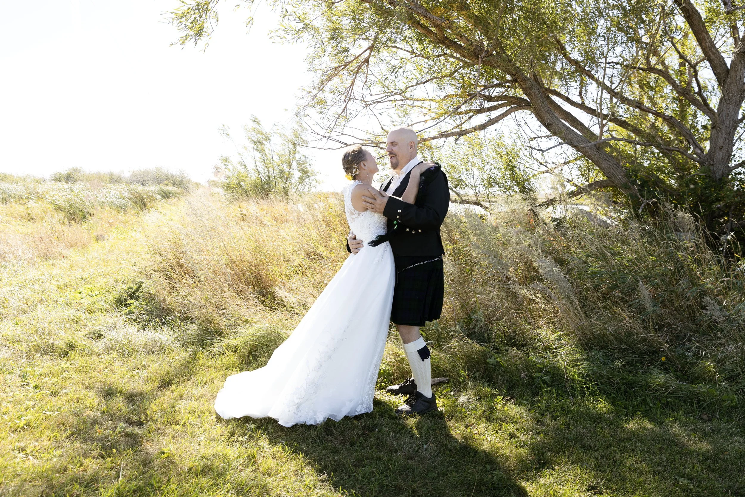 On a windy, sunny October day in 2024, Christine and Walt got married on their own land surrounded by a few friends, and family. It was fitting that sunflowers were part of the decor on such a sunny day. The wind added a sort of editorial feel to their portraits.