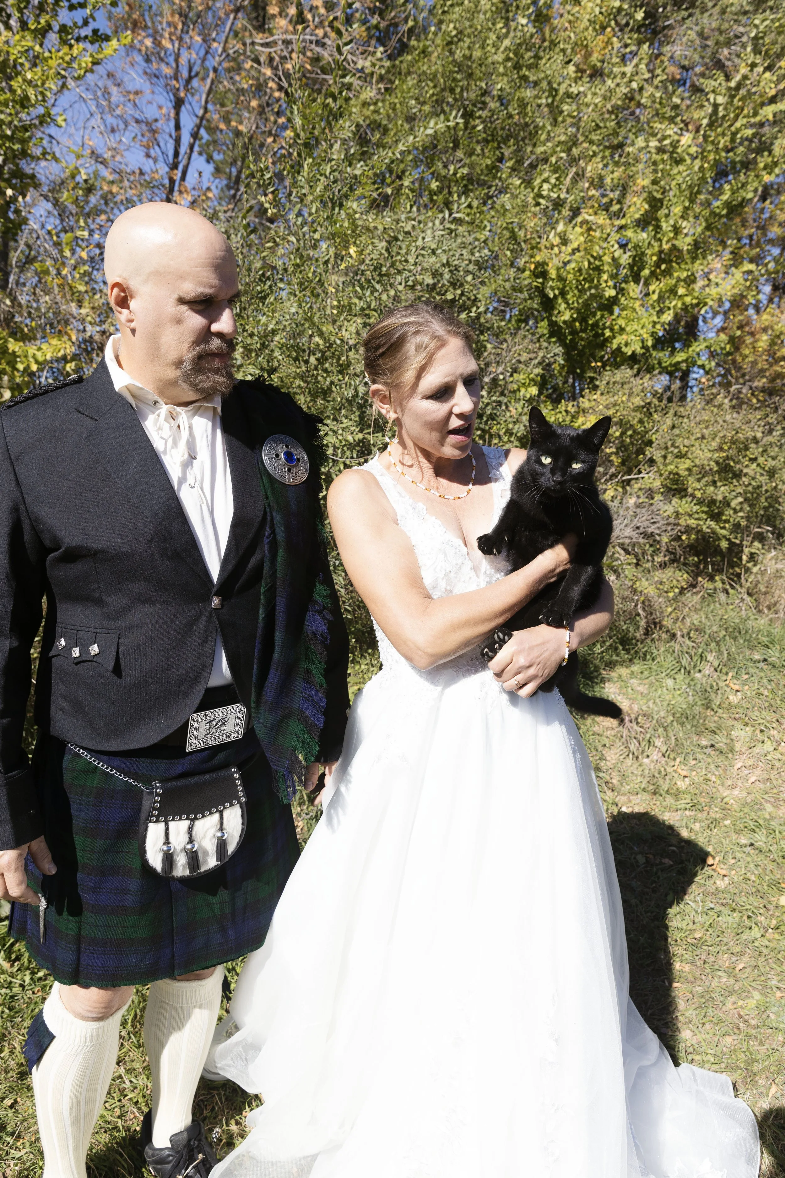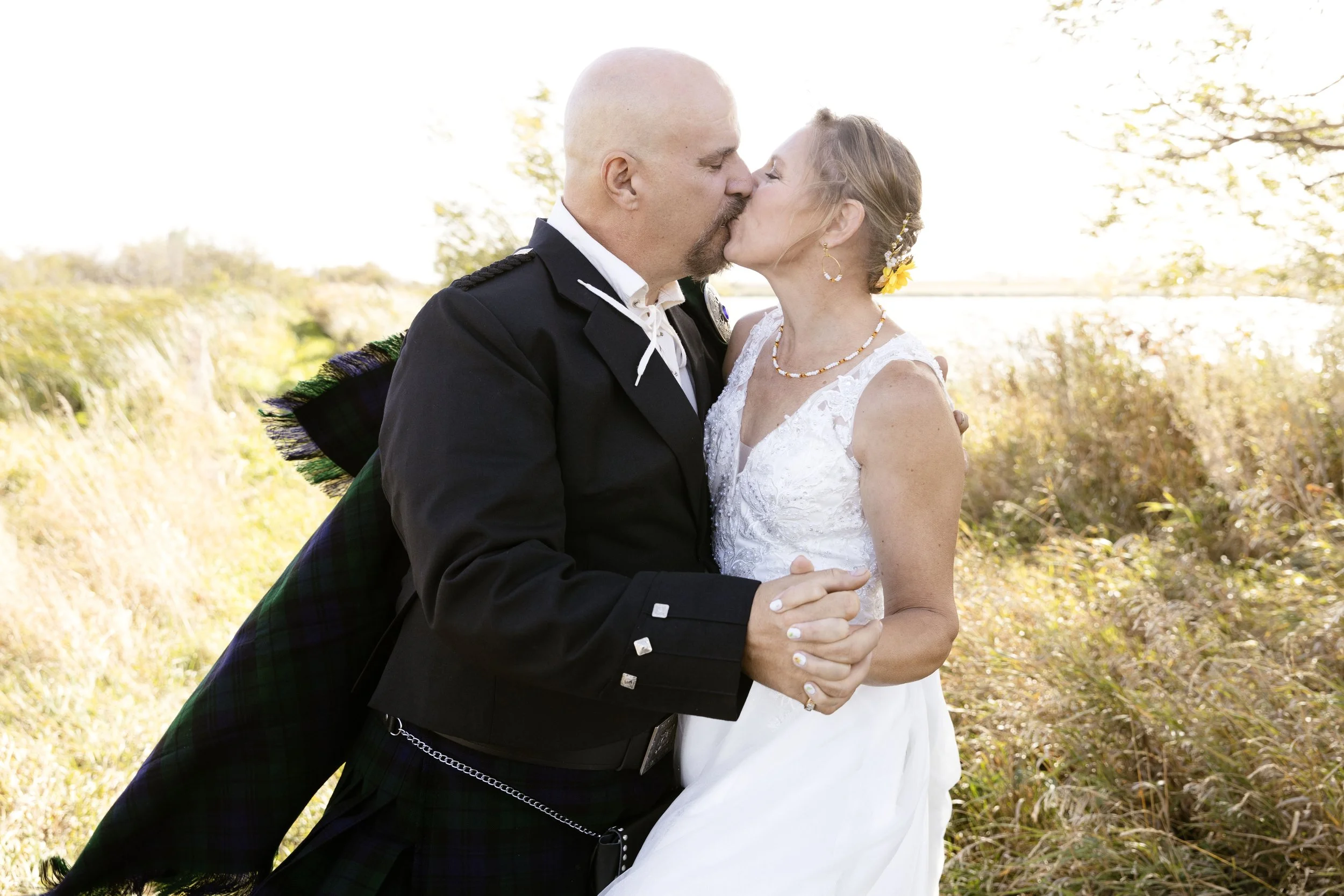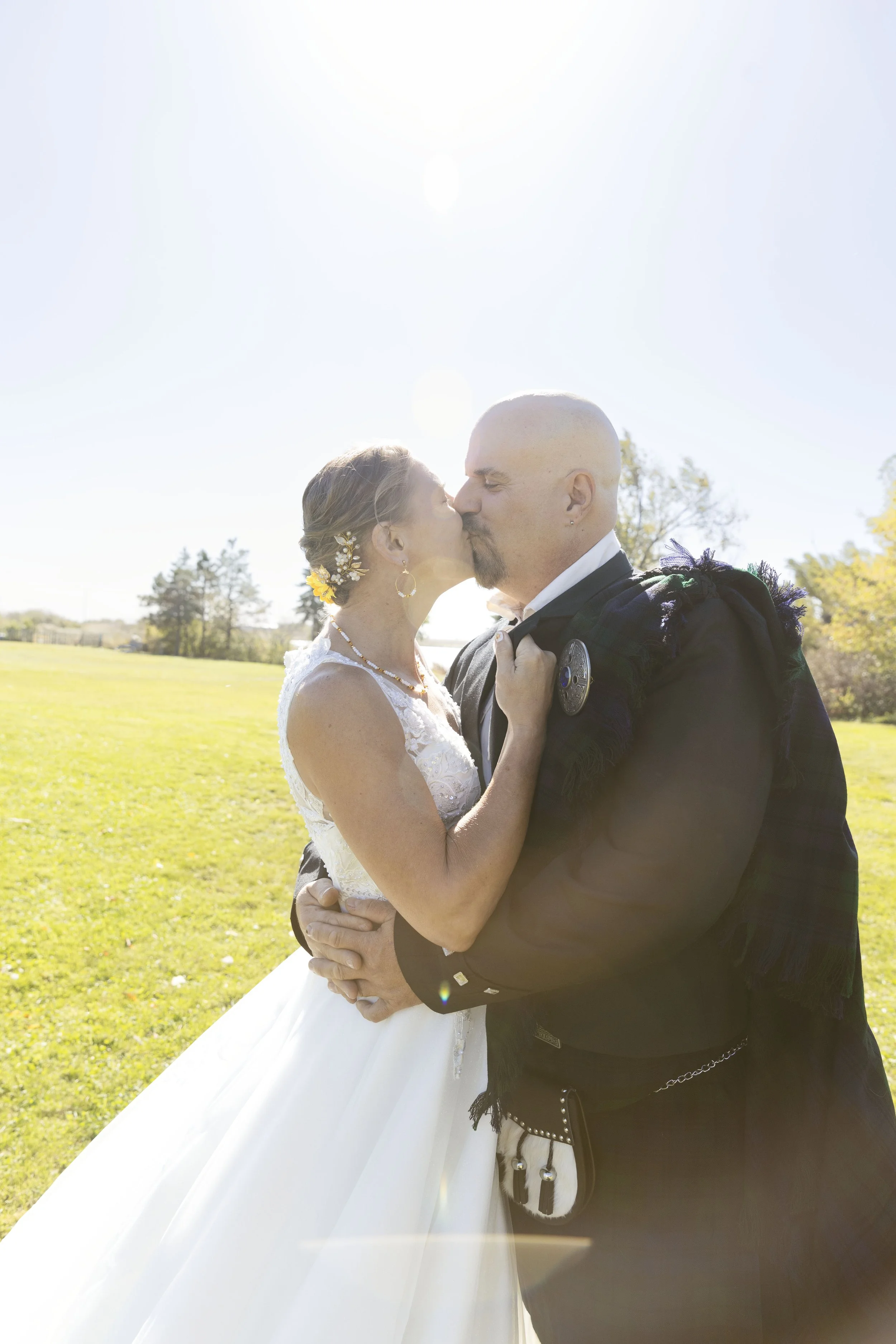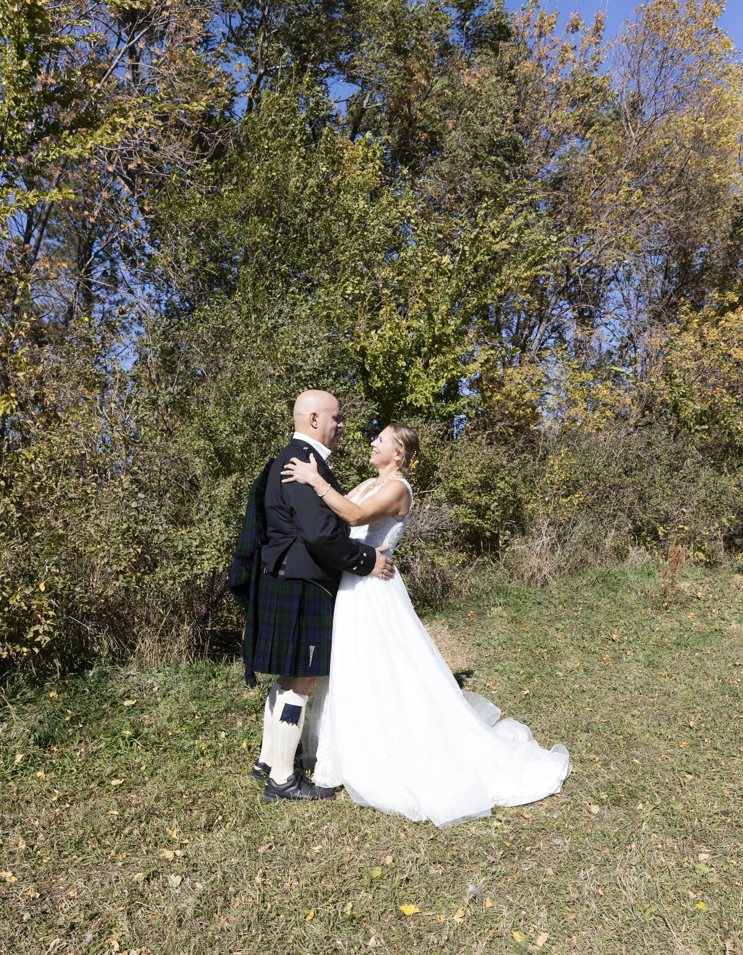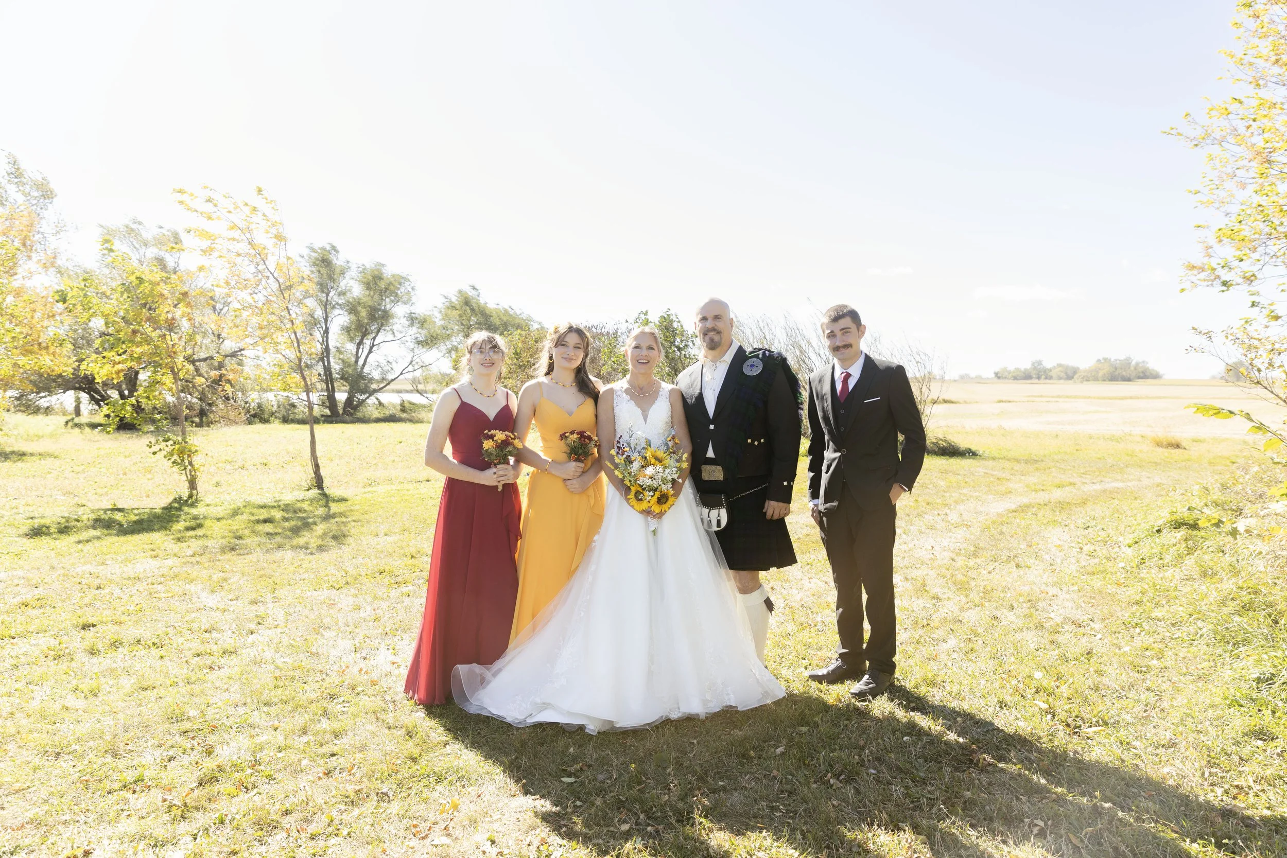 On a windy, sunny October day in 2024, Christine and Walt got married on their own land surrounded by a few friends, and family. It was fitting that sunflowers were part of the decor on such a sunny day. The wind added a sort of editorial feel to their portraits.