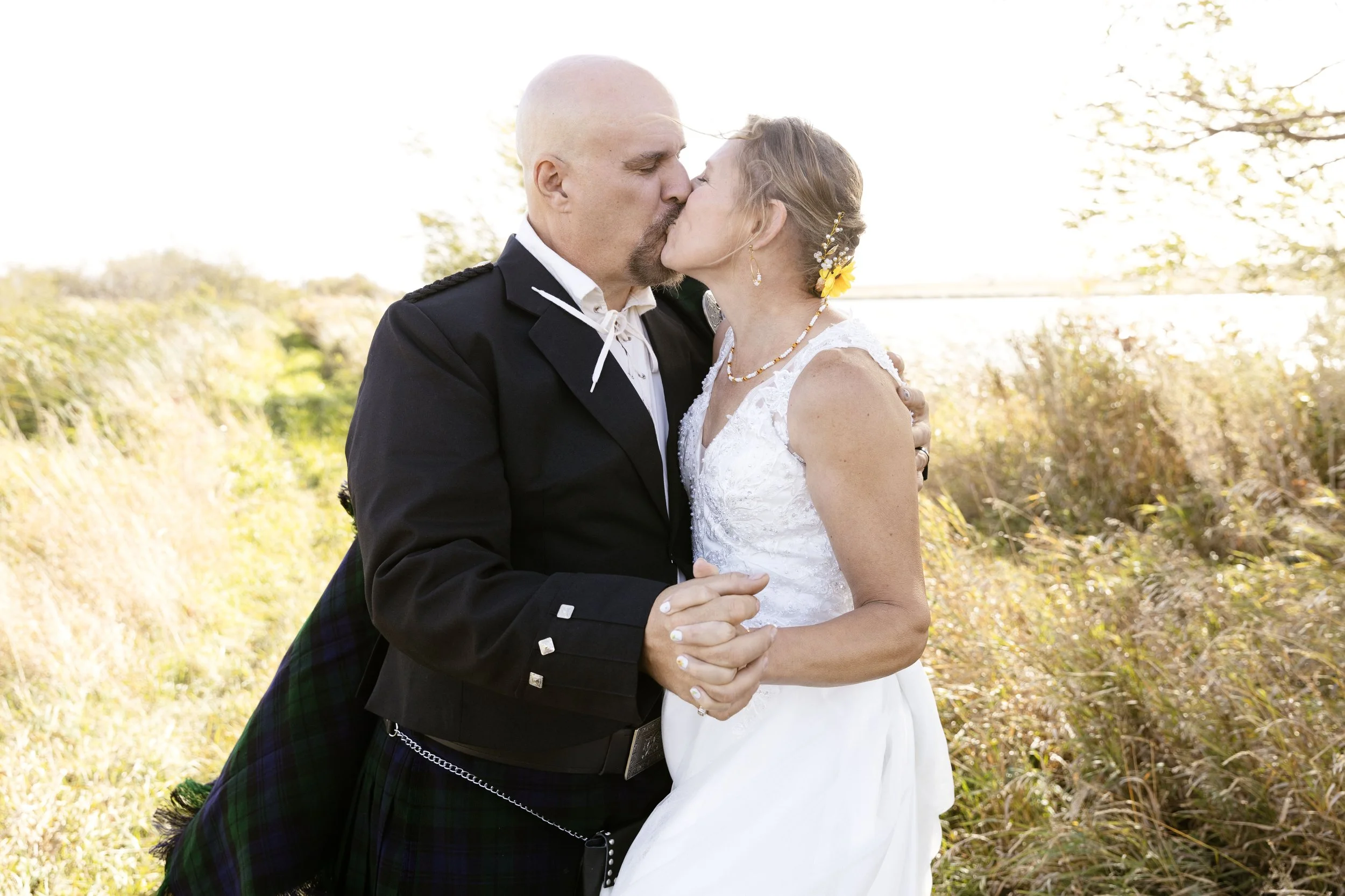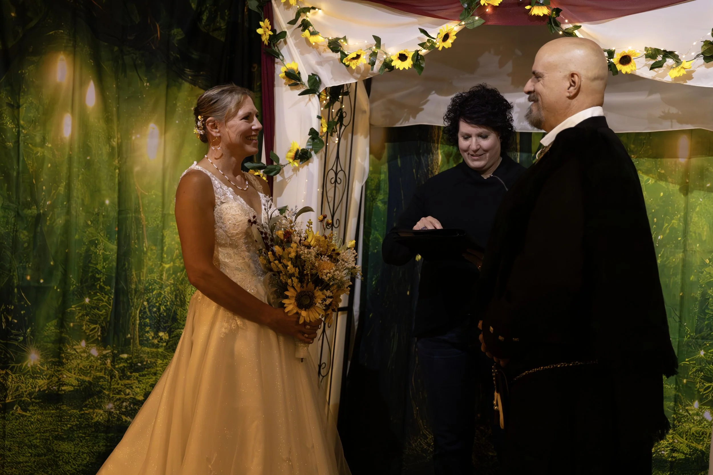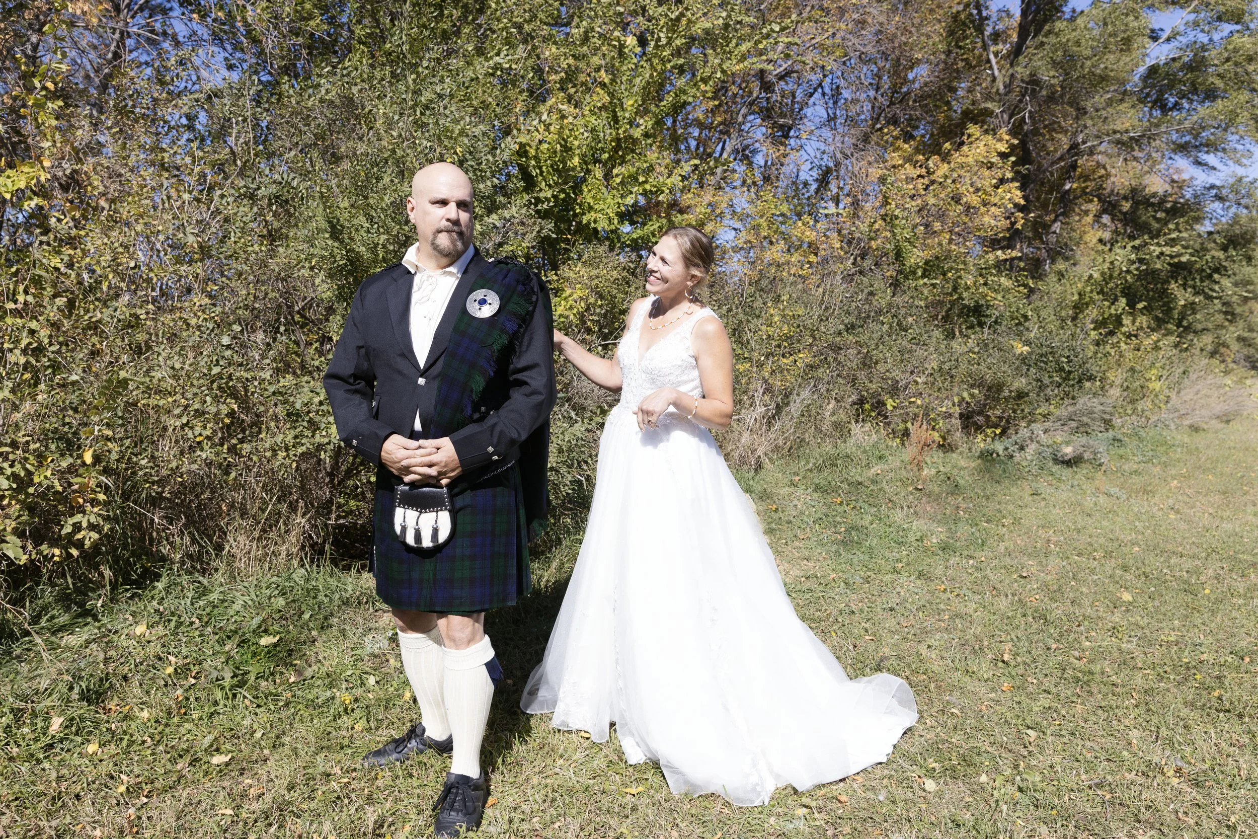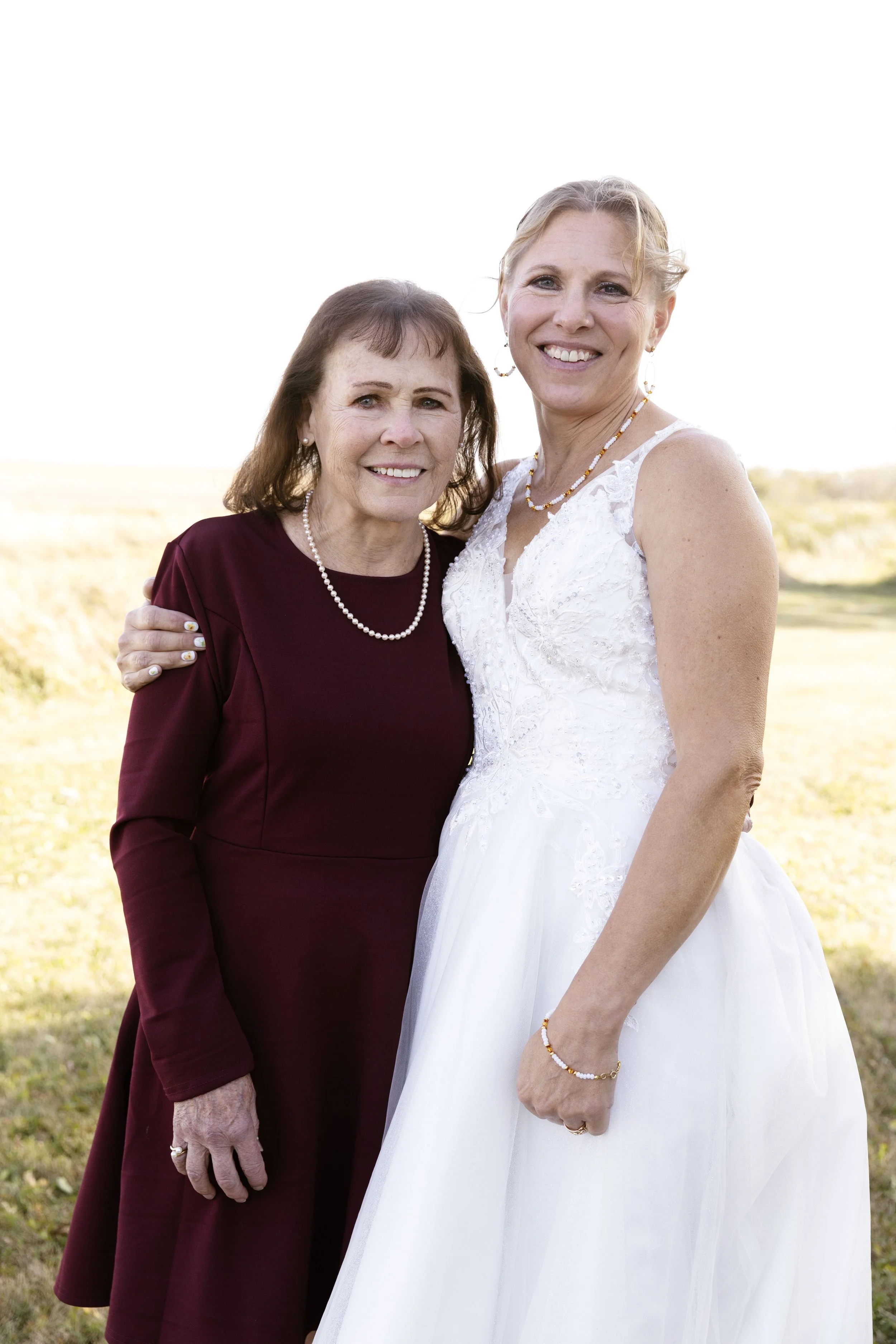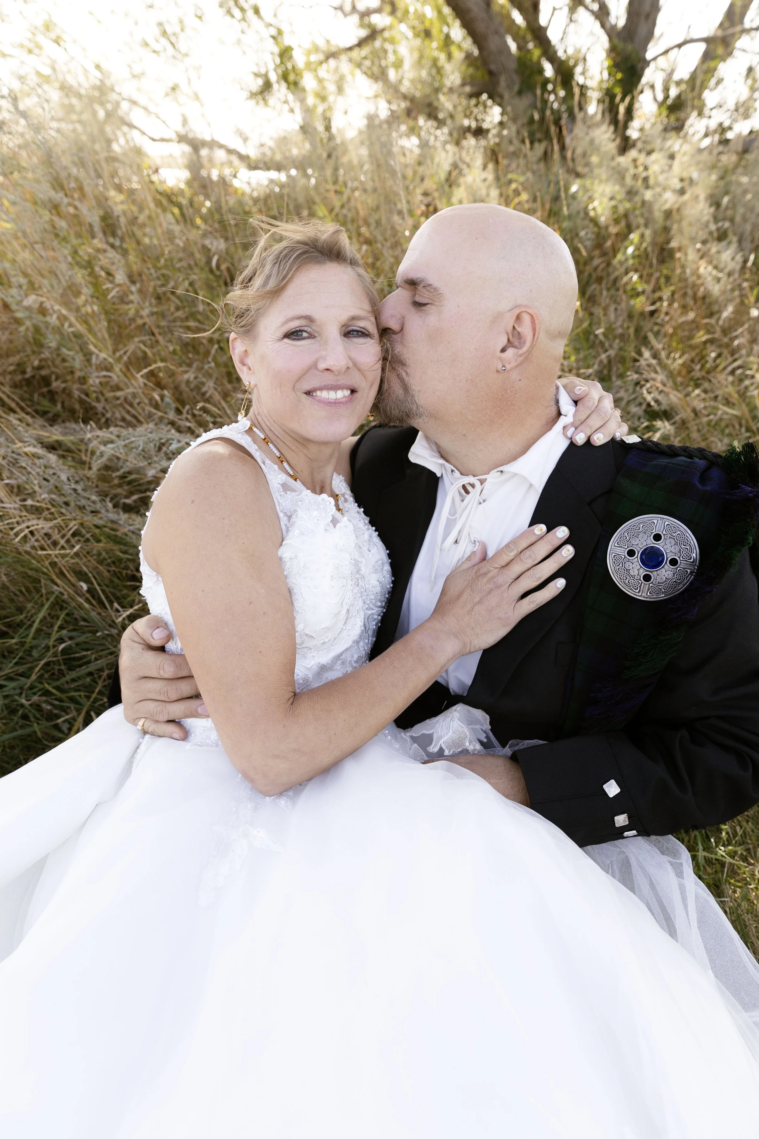 On a windy, sunny October day in 2024, Christine and Walt got married on their own land surrounded by a few friends, and family. It was fitting that sunflowers were part of the decor on such a sunny day. The wind added a sort of editorial feel to their portraits.