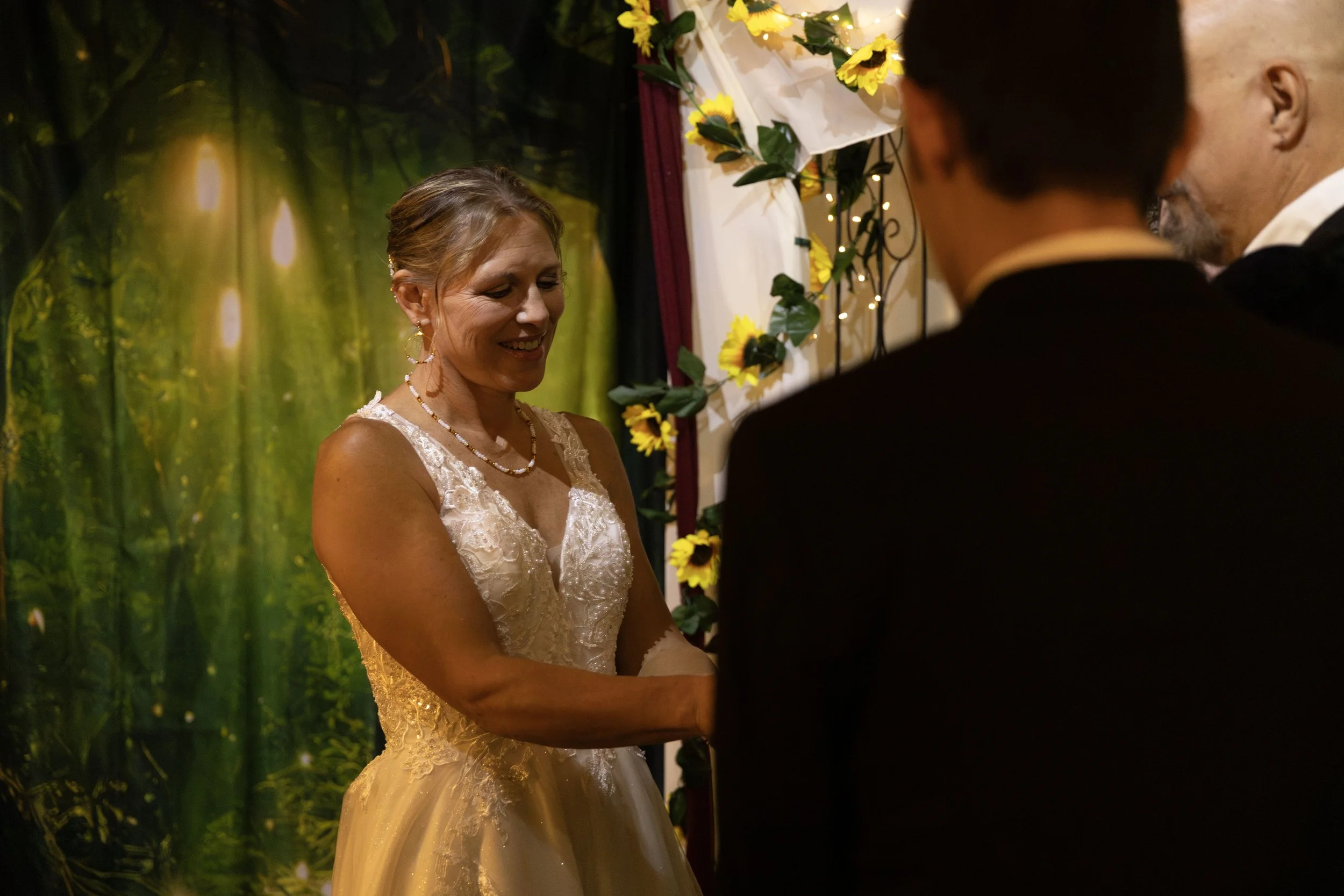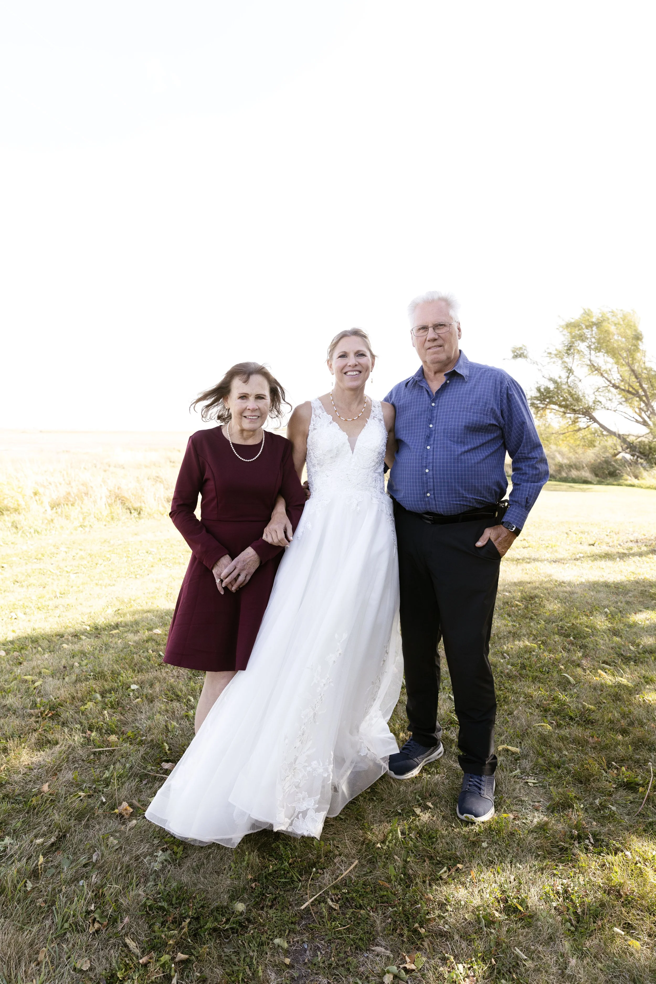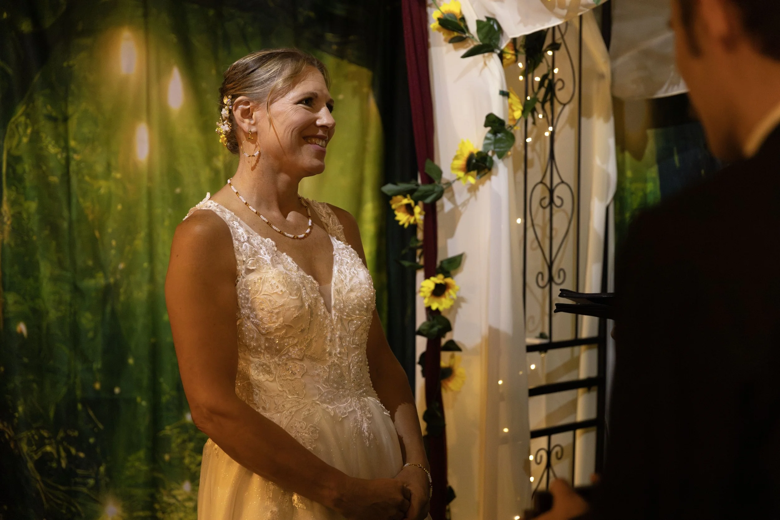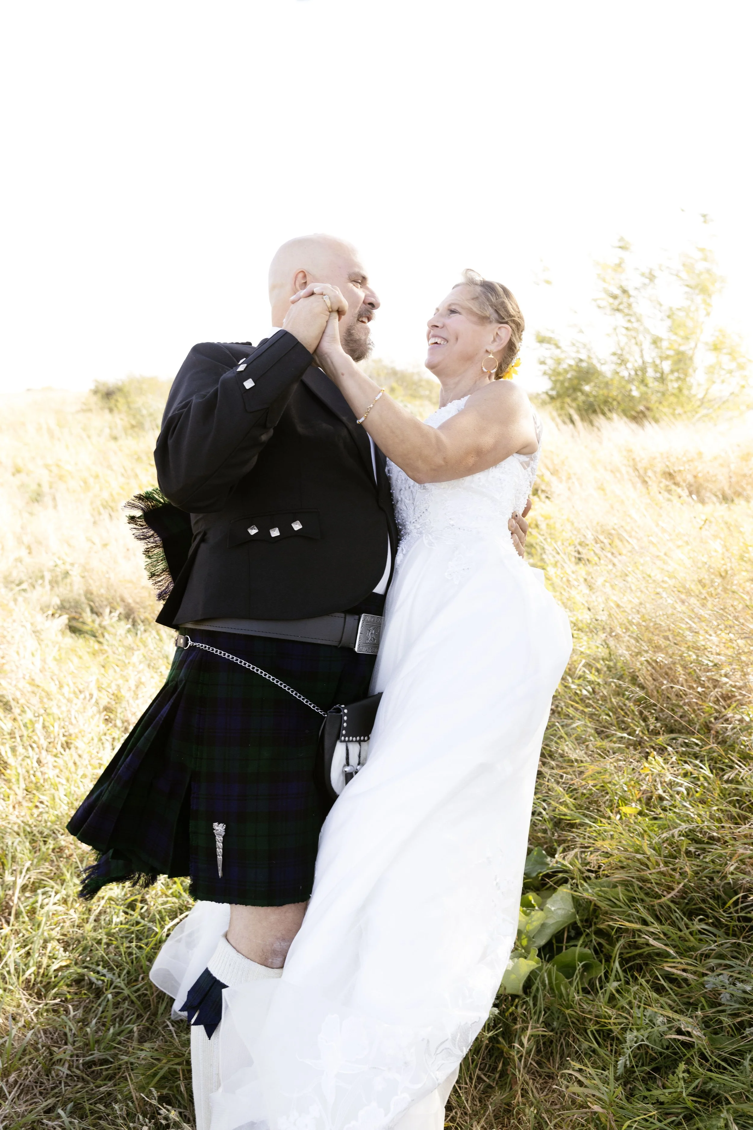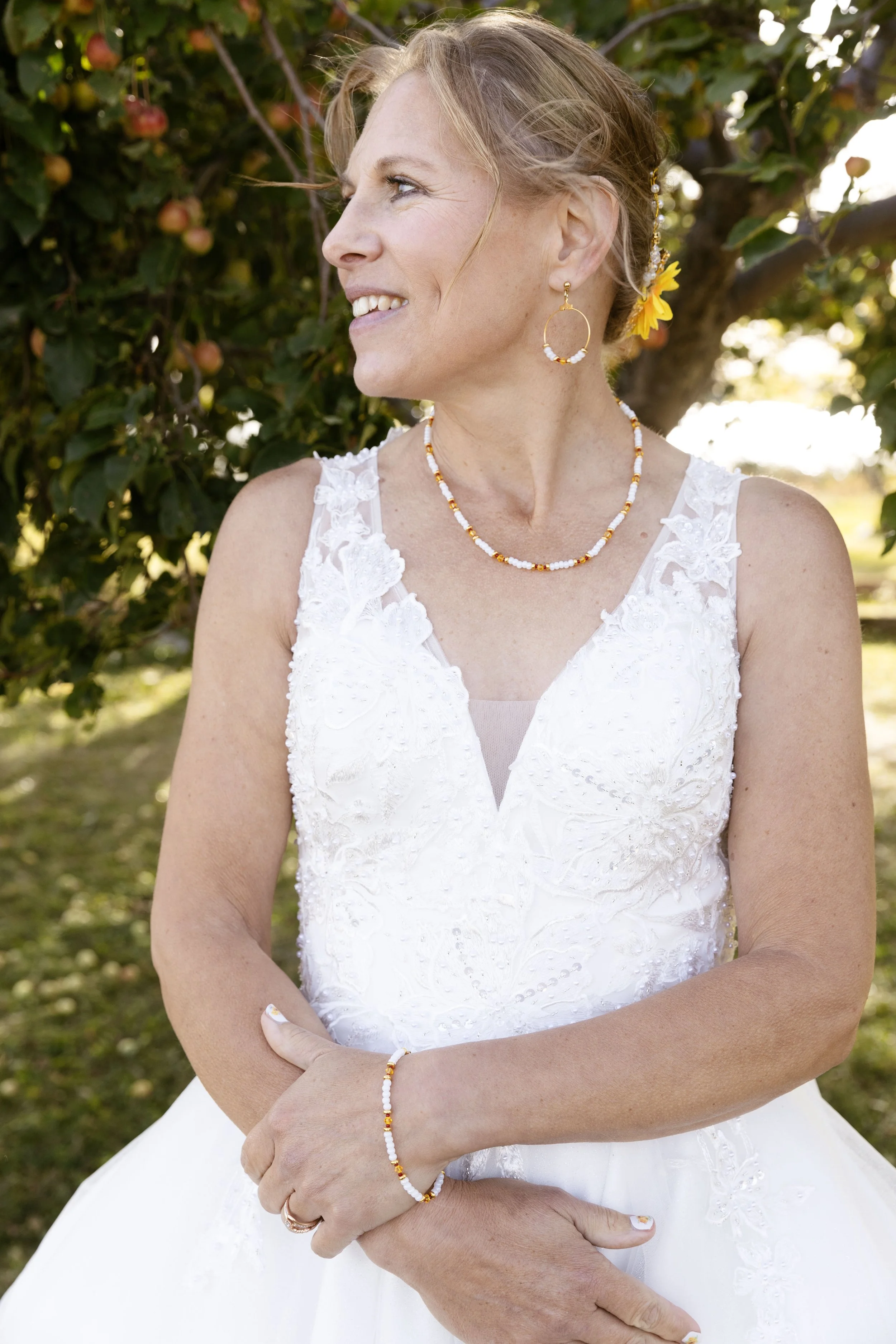 On a windy, sunny October day in 2024, Christine and Walt got married on their own land surrounded by a few friends, and family. It was fitting that sunflowers were part of the decor on such a sunny day. The wind added a sort of editorial feel to their portraits.