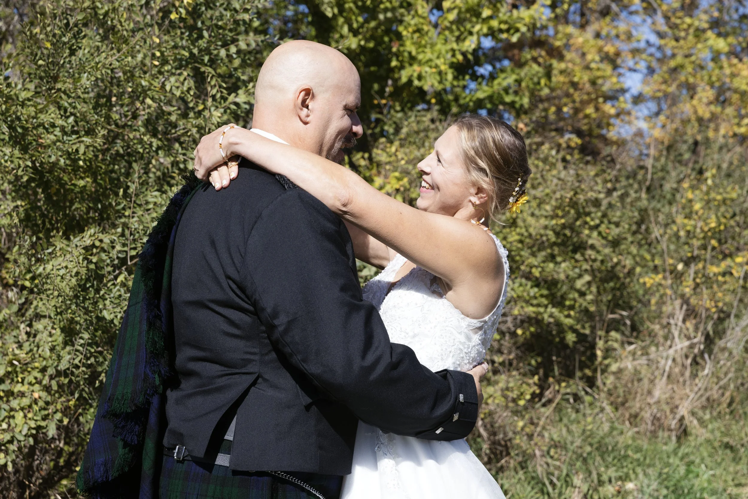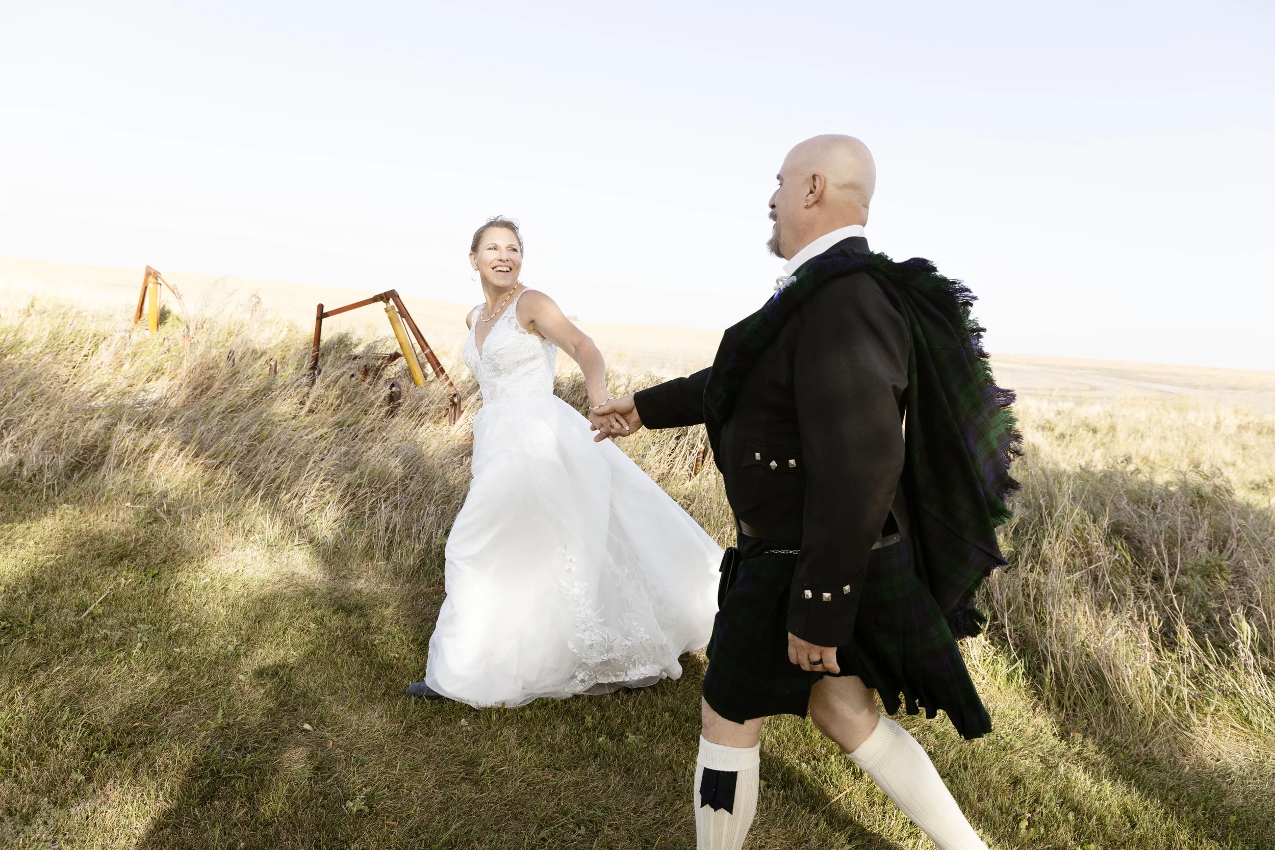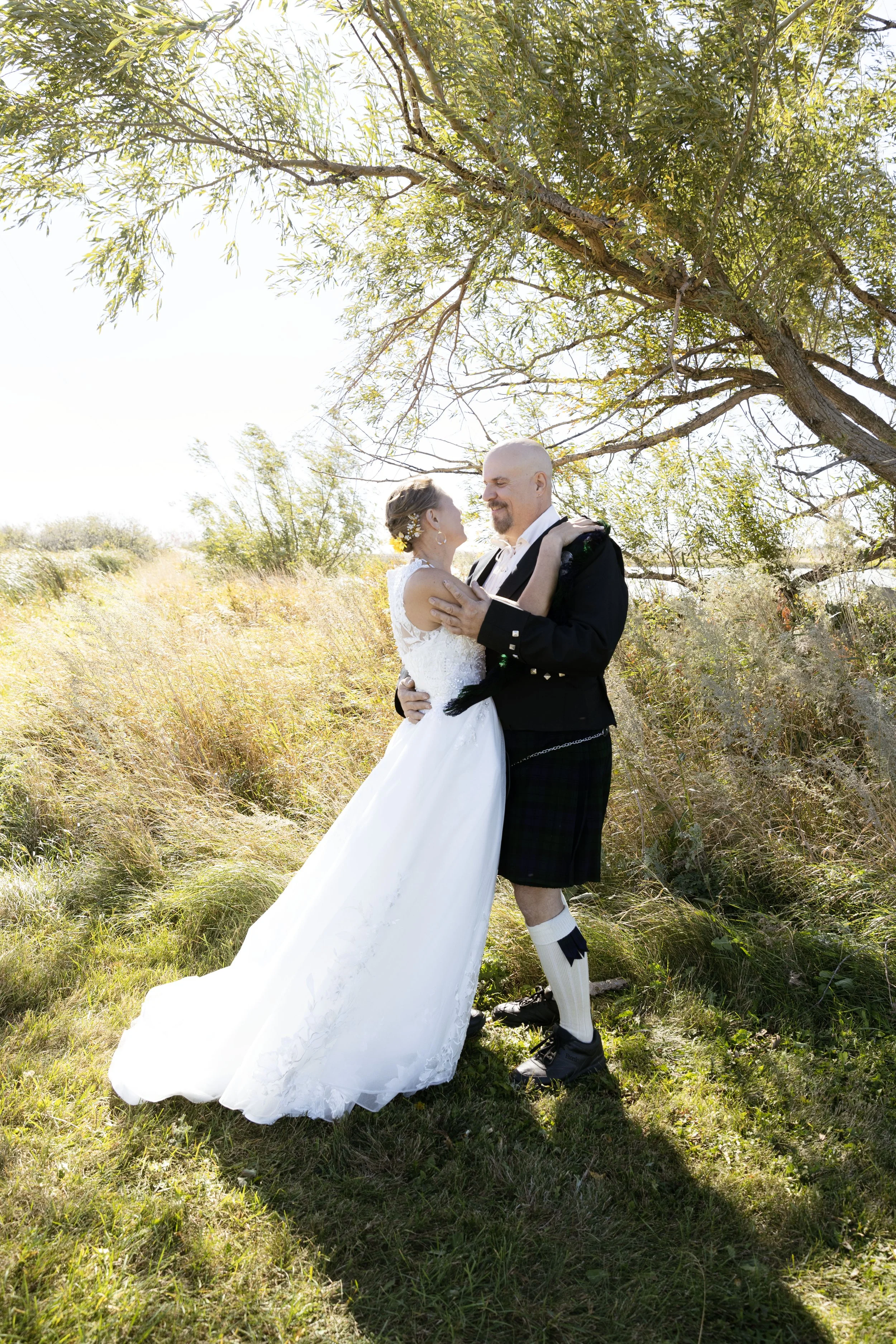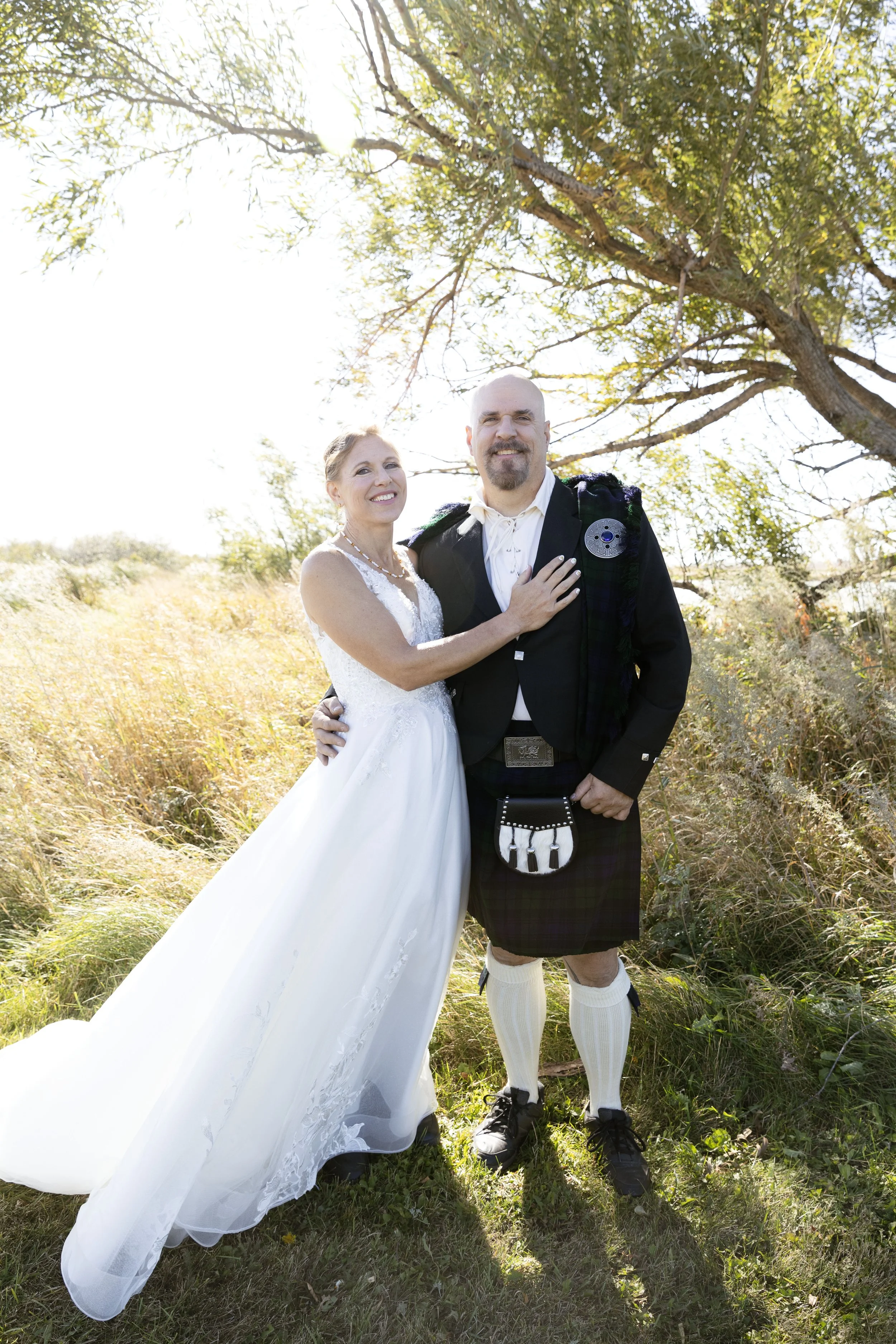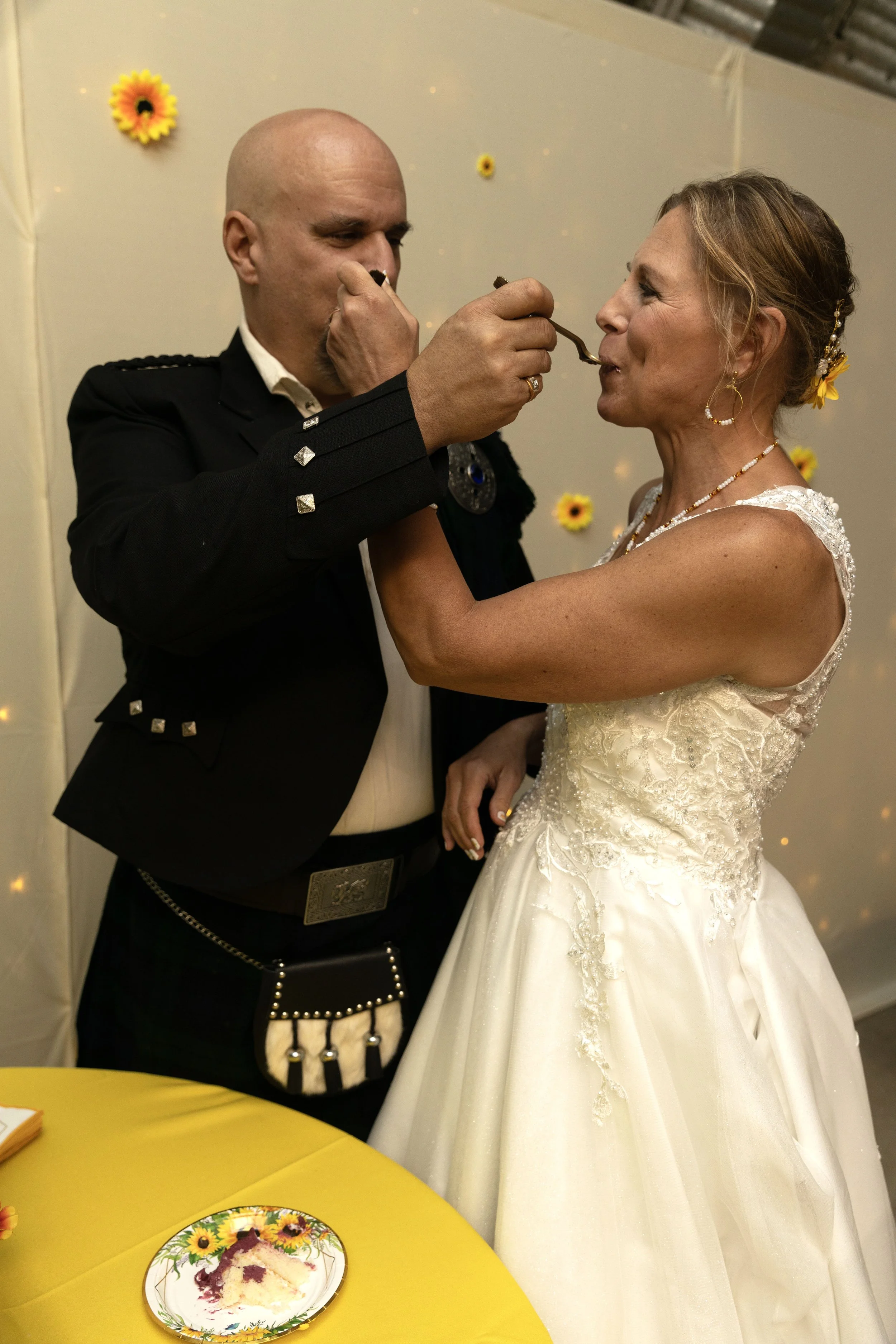 On a windy, sunny October day in 2024, Christine and Walt got married on their own land surrounded by a few friends, and family. It was fitting that sunflowers were part of the decor on such a sunny day. The wind added a sort of editorial feel to their portraits.