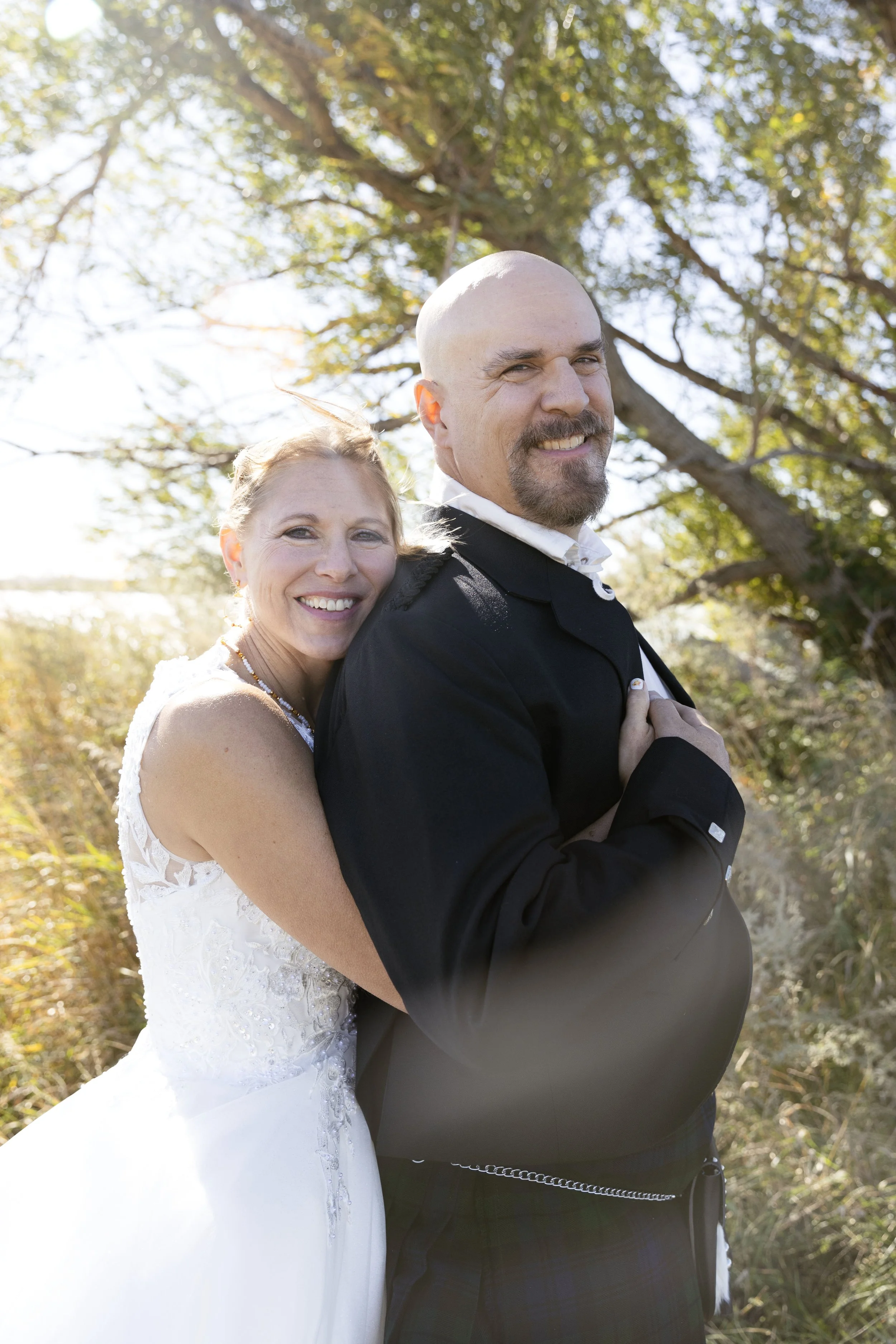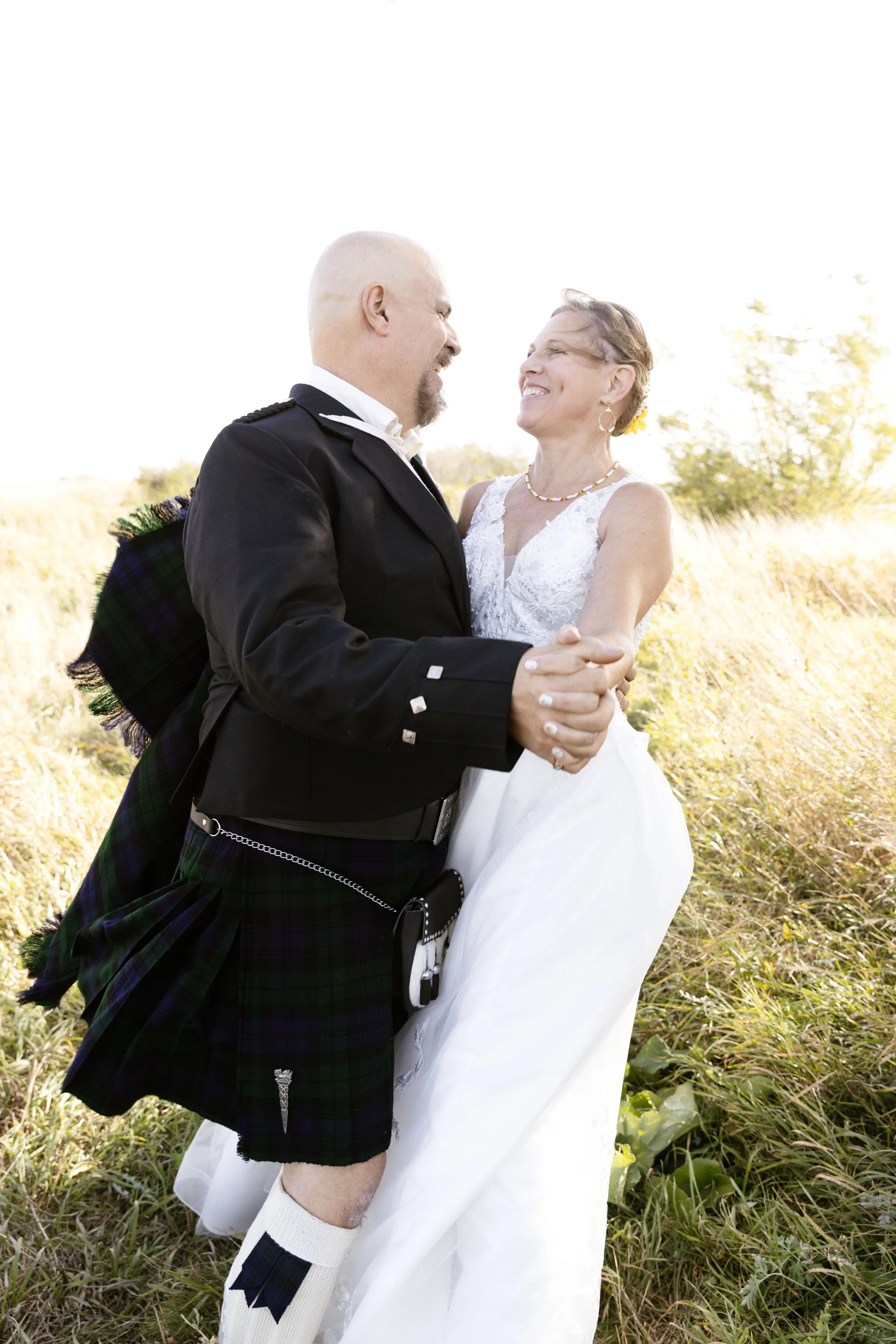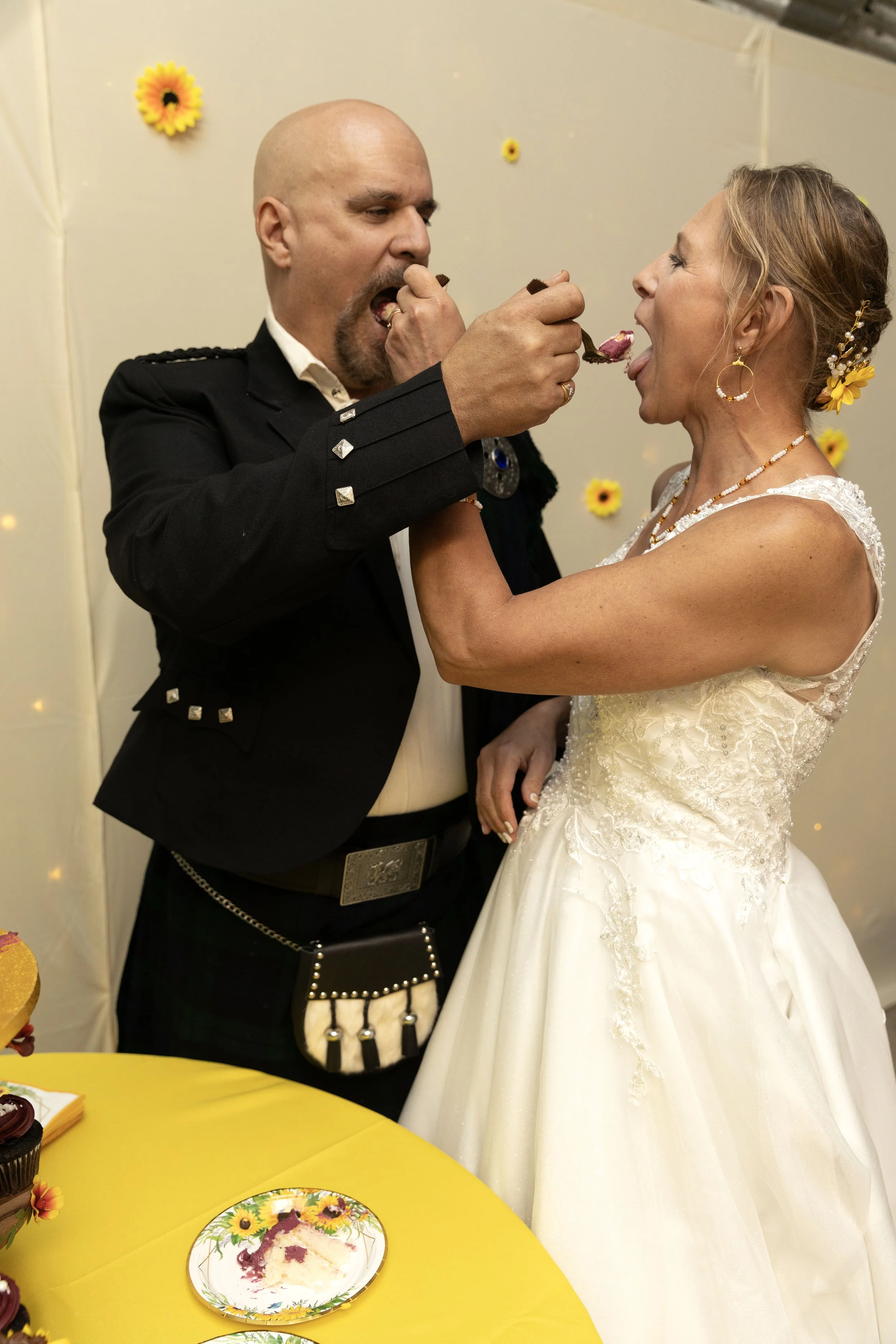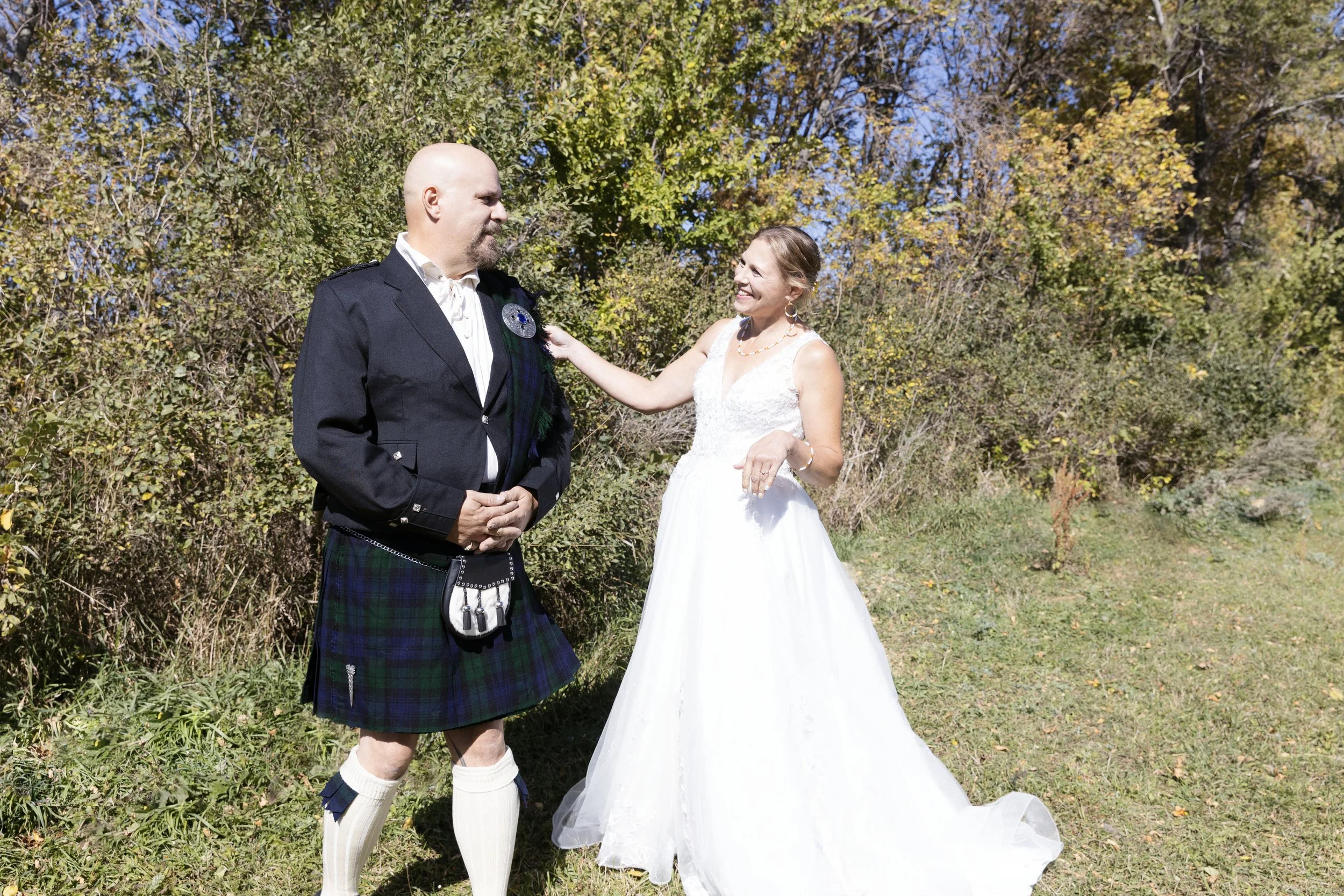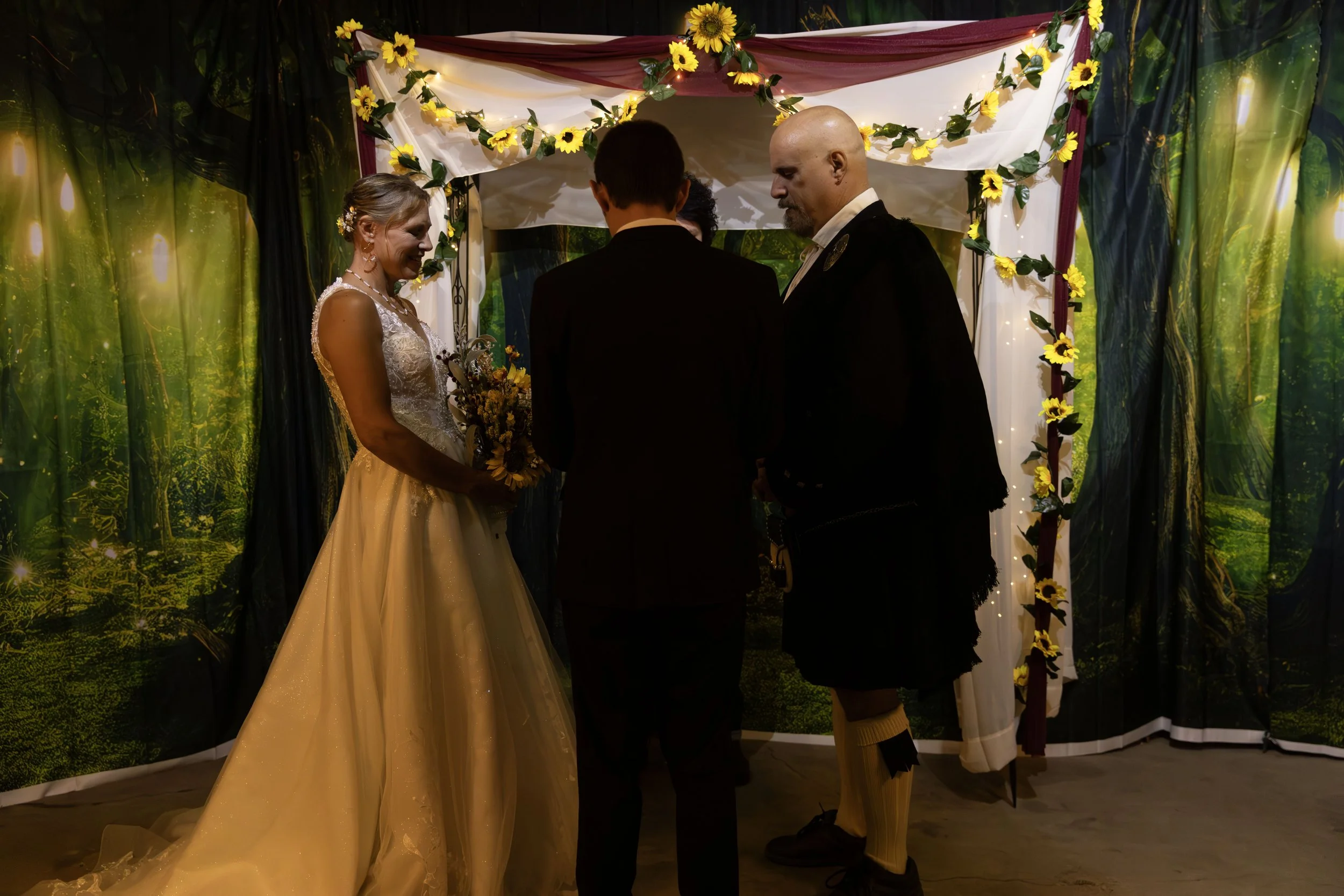 On a windy, sunny October day in 2024, Christine and Walt got married on their own land surrounded by a few friends, and family. It was fitting that sunflowers were part of the decor on such a sunny day. The wind added a sort of editorial feel to their portraits.