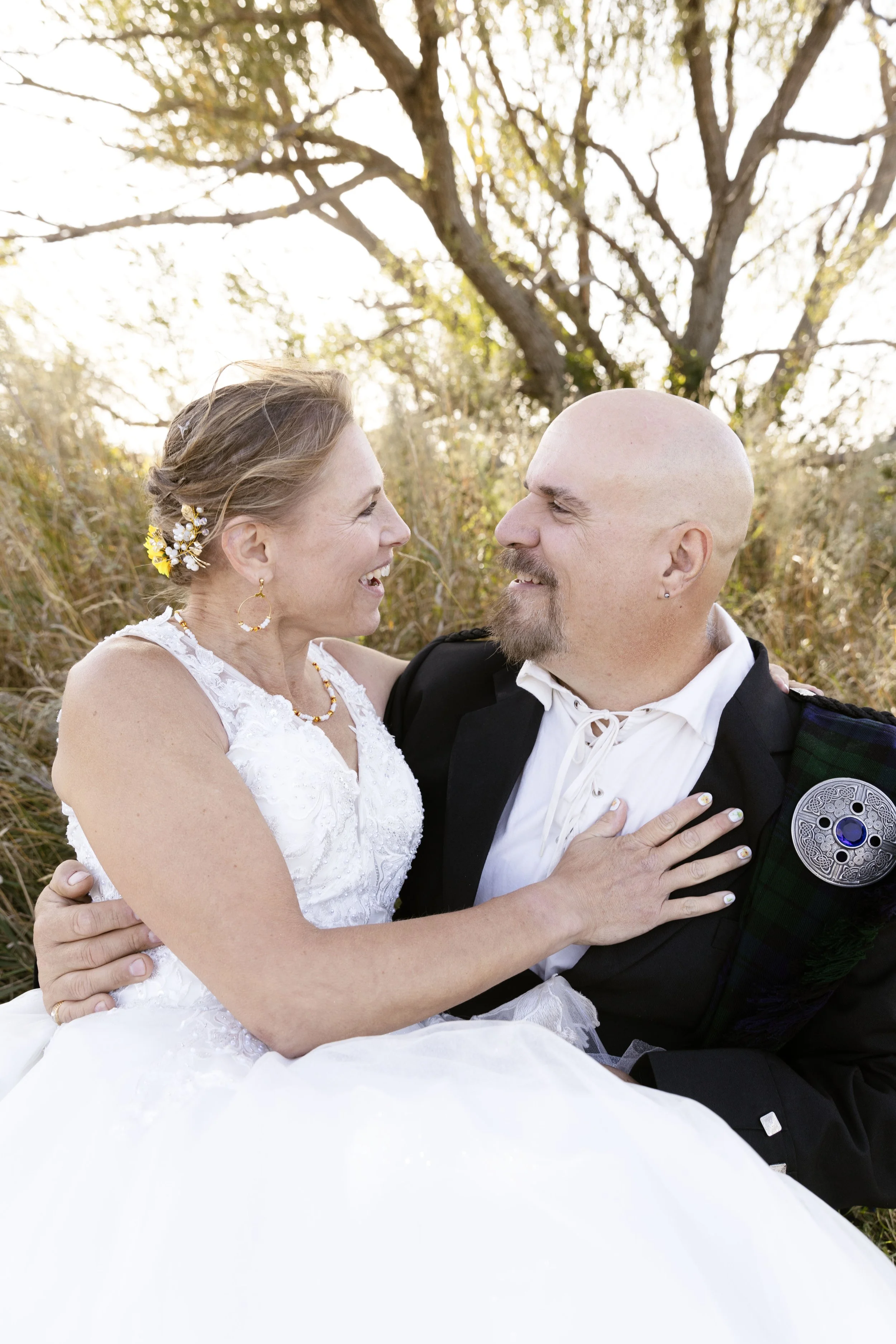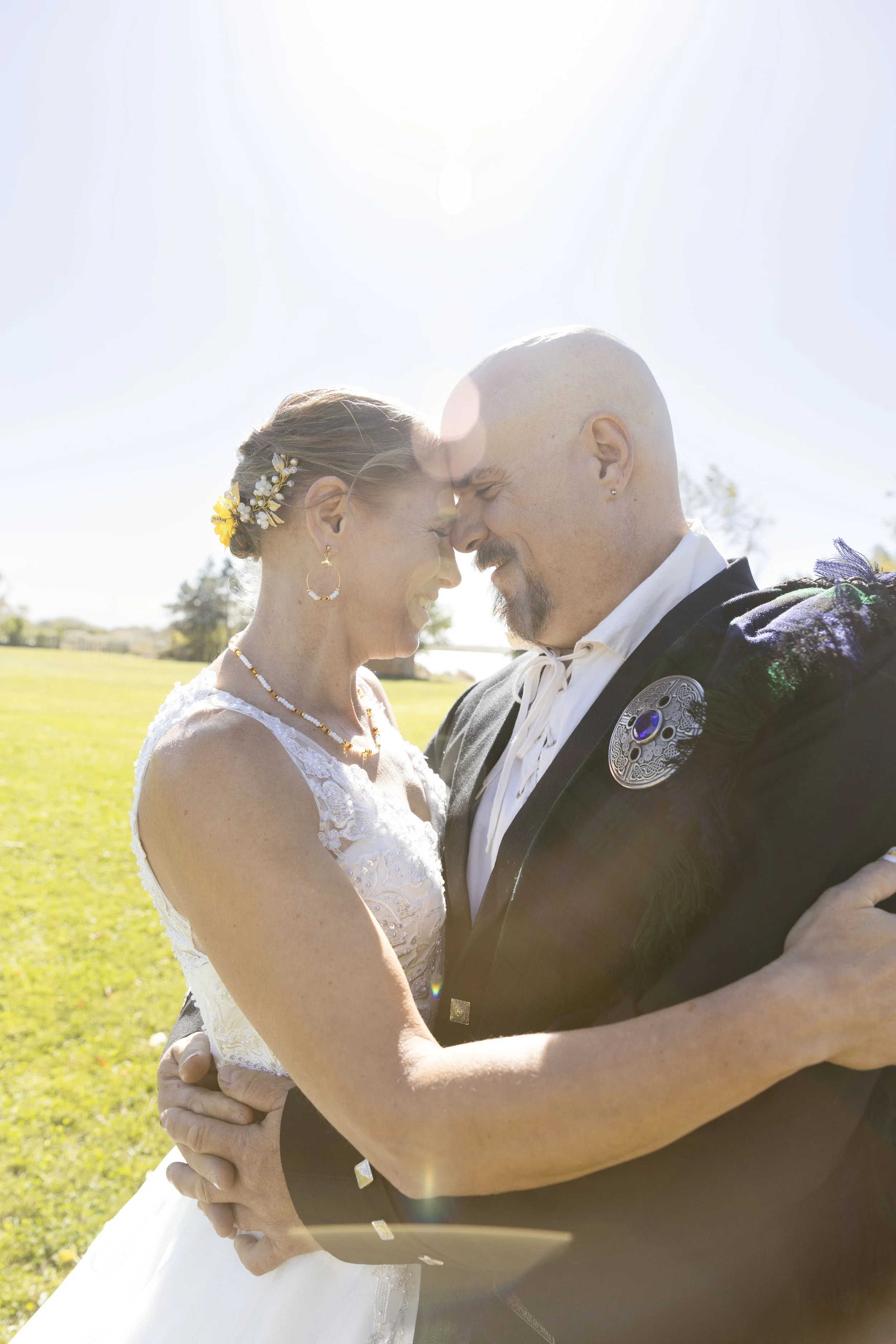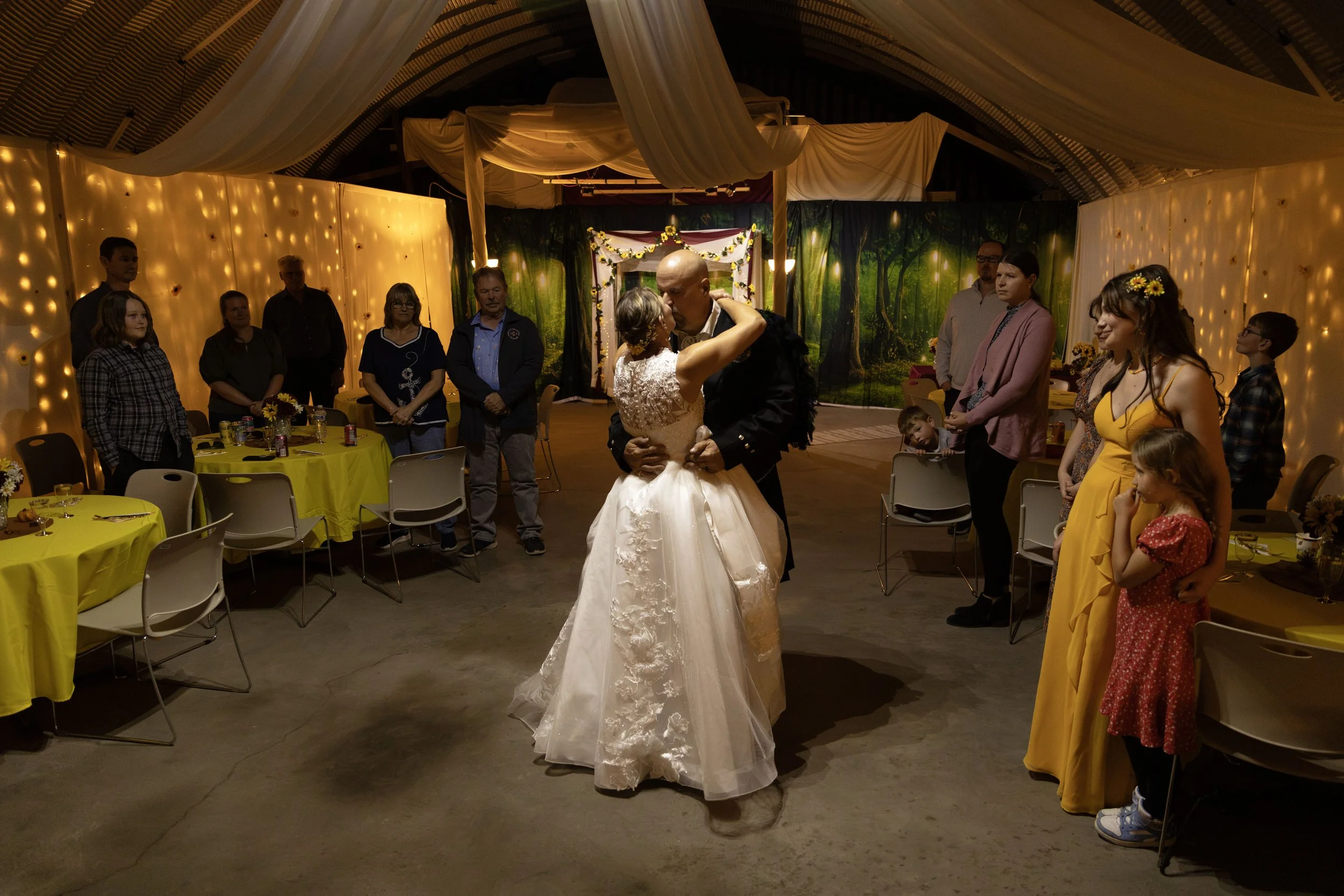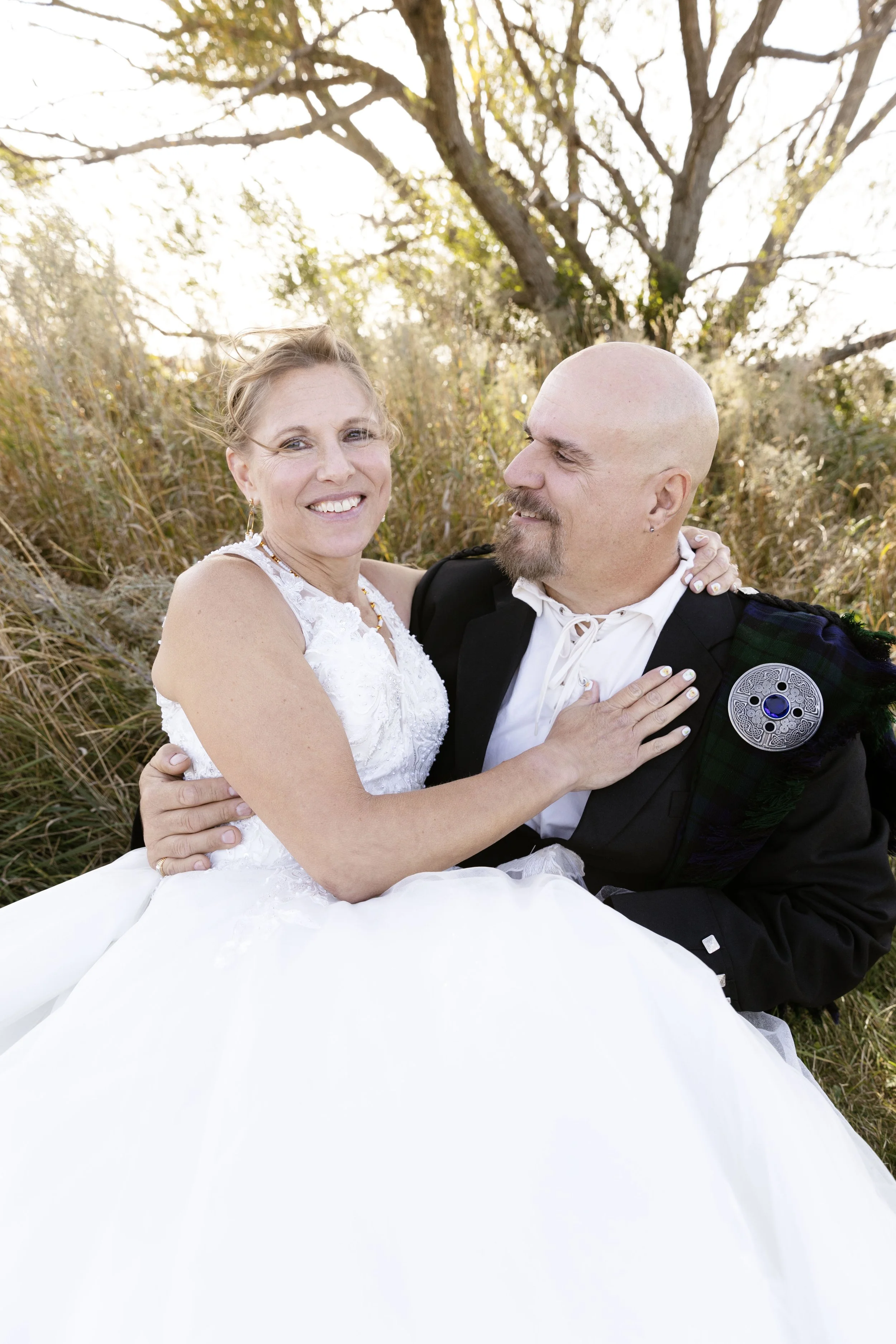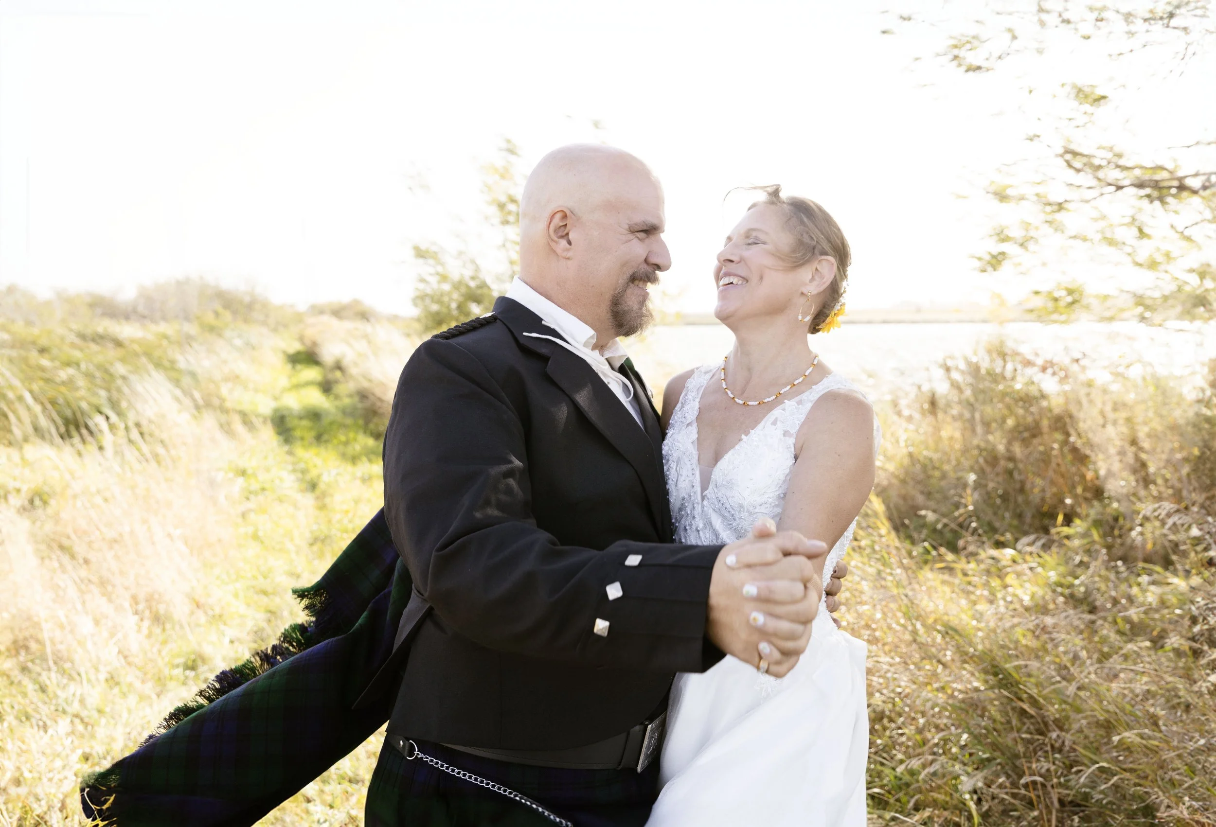 On a windy, sunny October day in 2024, Christine and Walt got married on their own land surrounded by a few friends, and family. It was fitting that sunflowers were part of the decor on such a sunny day. The wind added a sort of editorial feel to their portraits.
