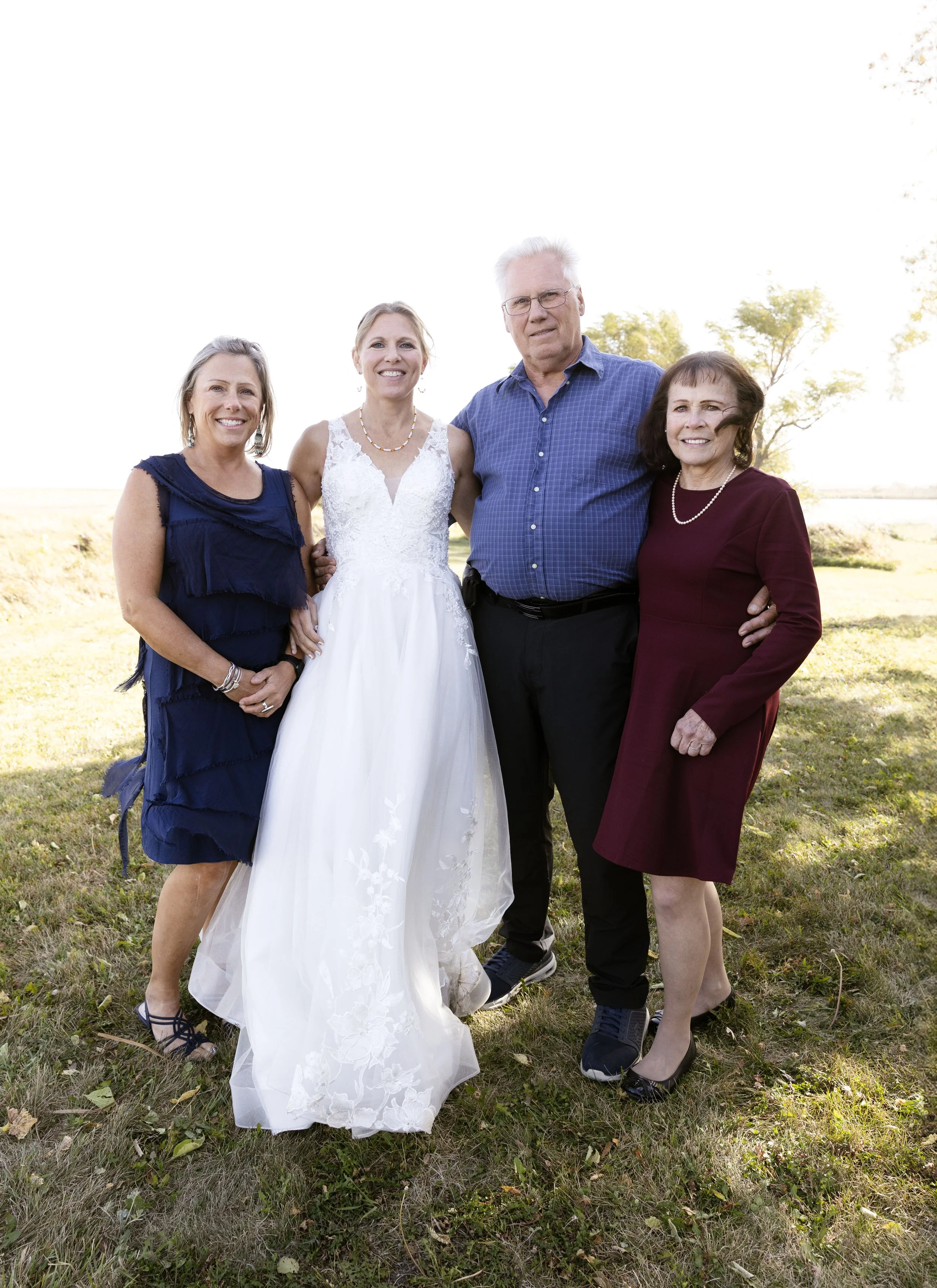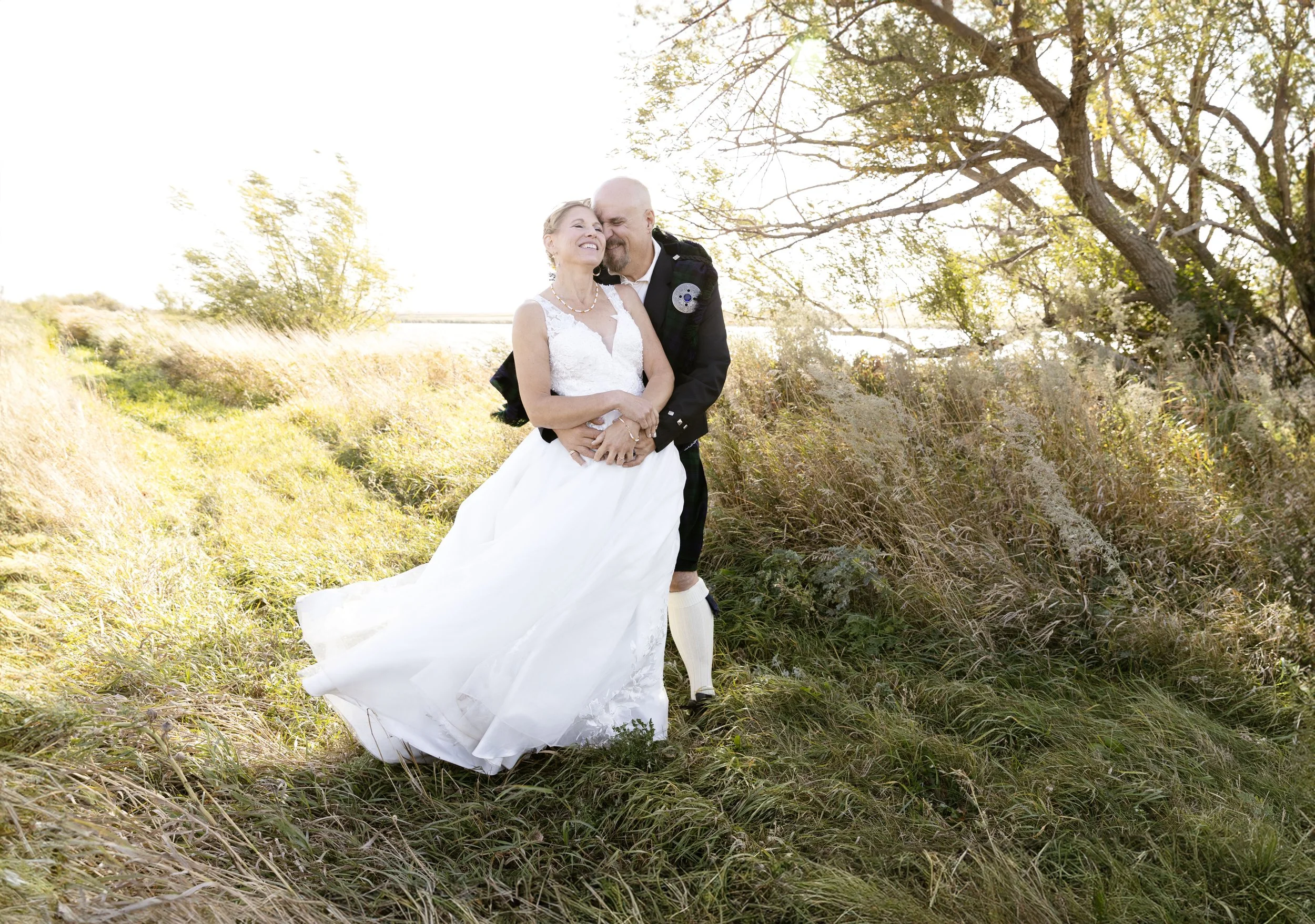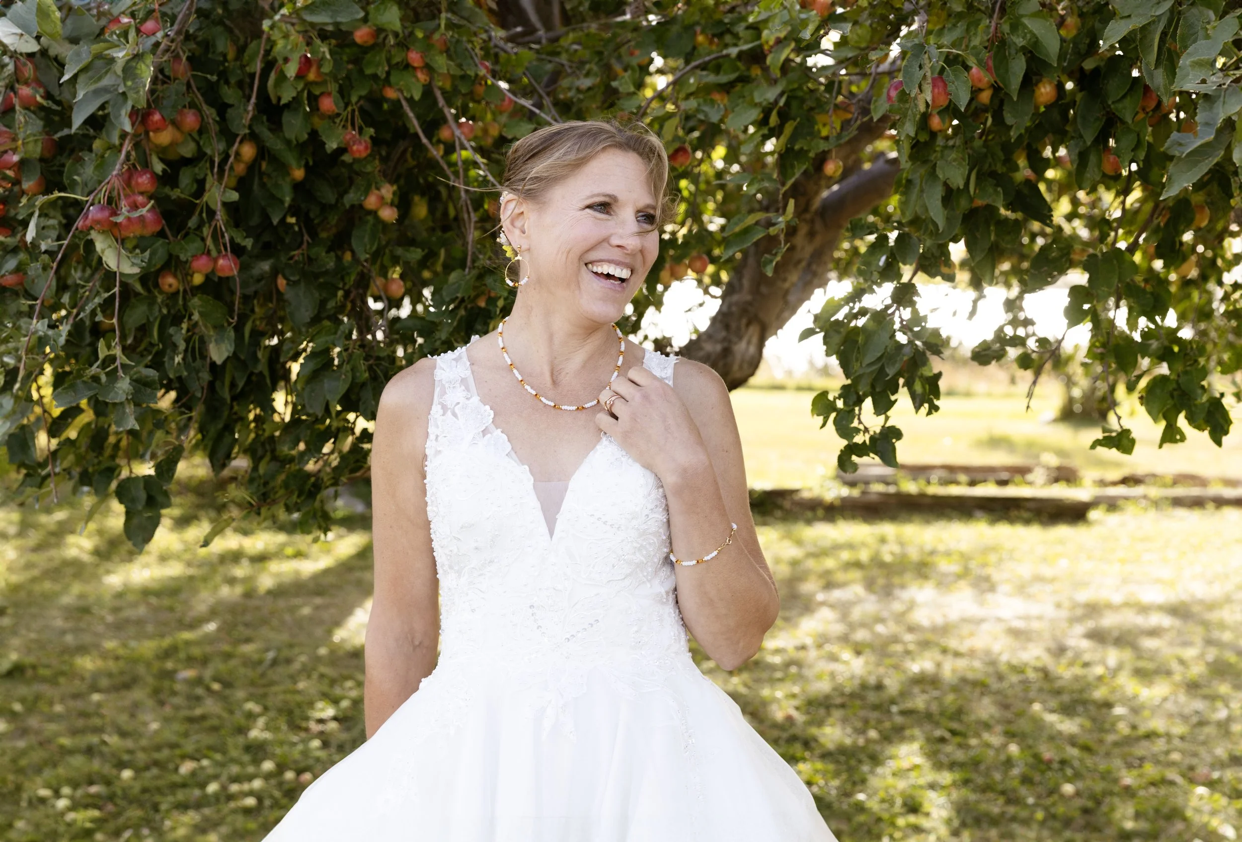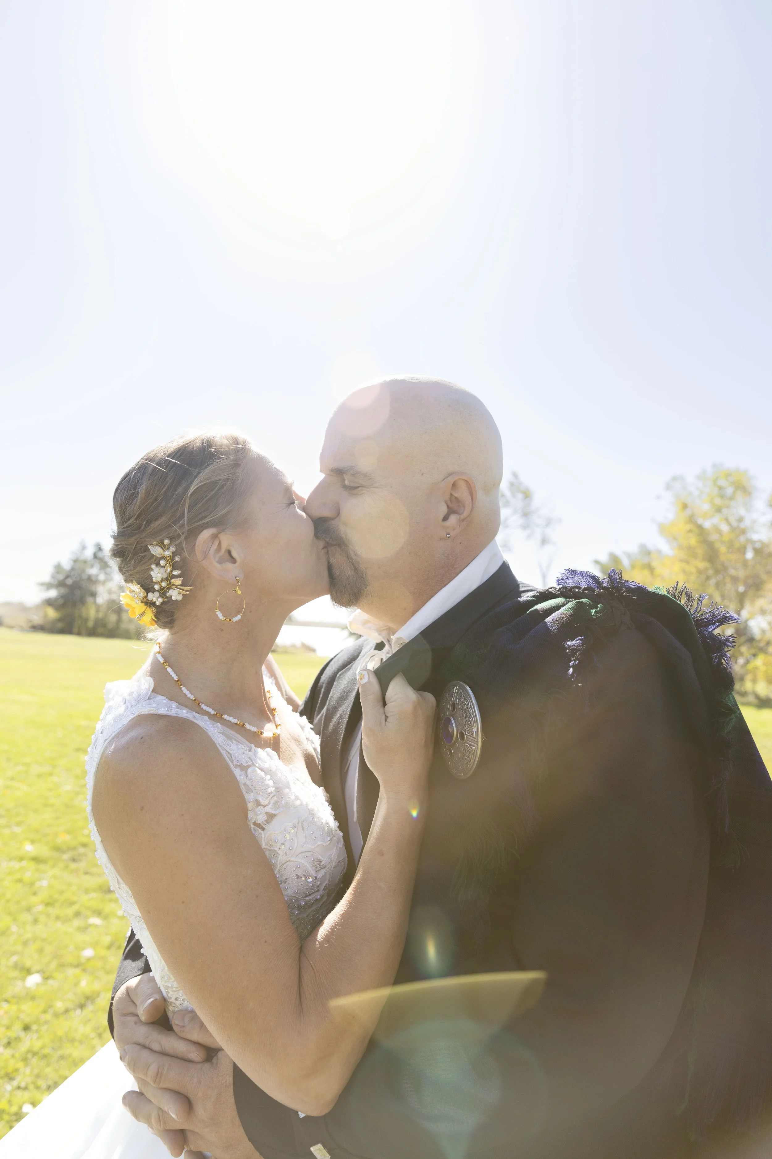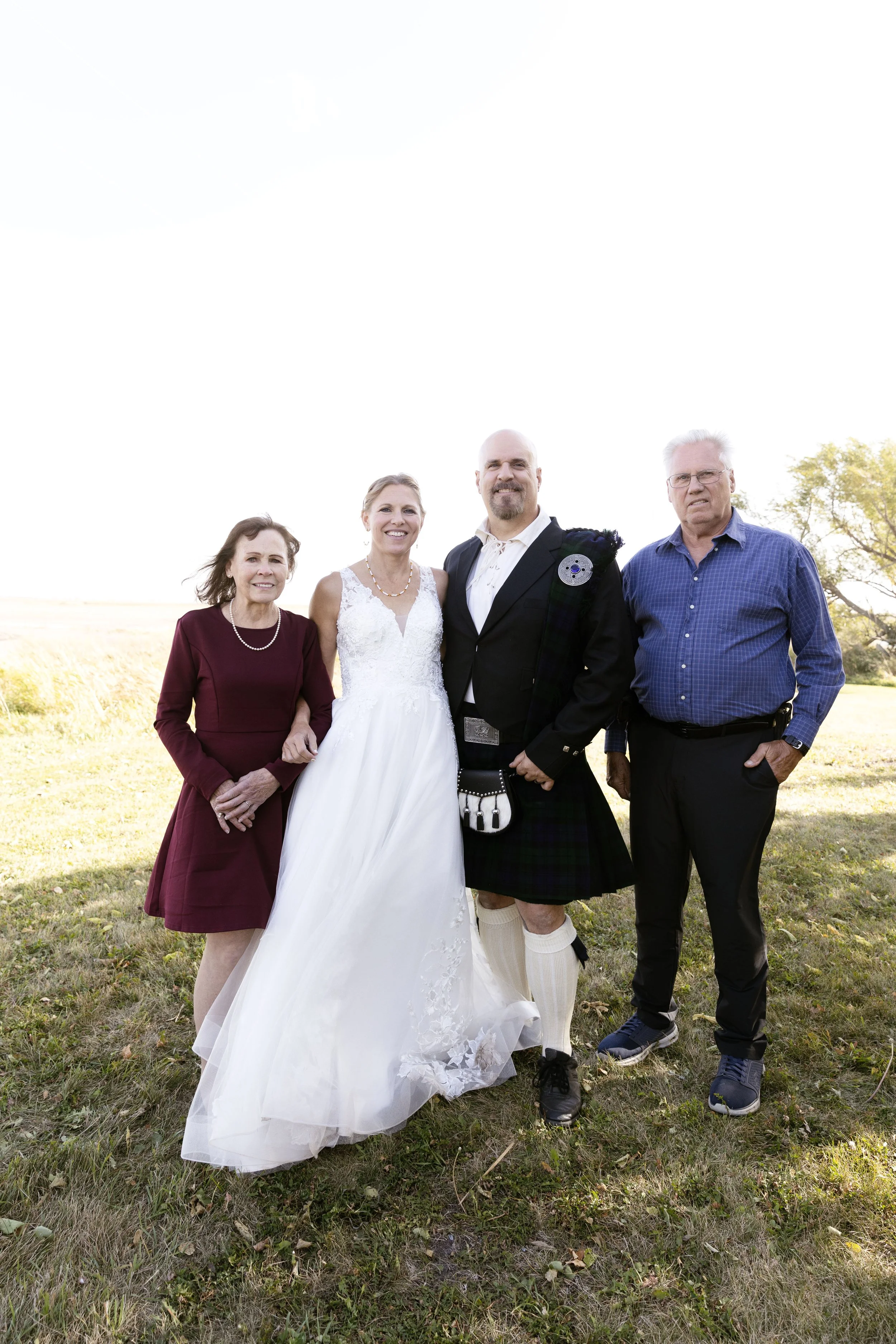 On a windy, sunny October day in 2024, Christine and Walt got married on their own land surrounded by a few friends, and family. It was fitting that sunflowers were part of the decor on such a sunny day. The wind added a sort of editorial feel to their portraits.