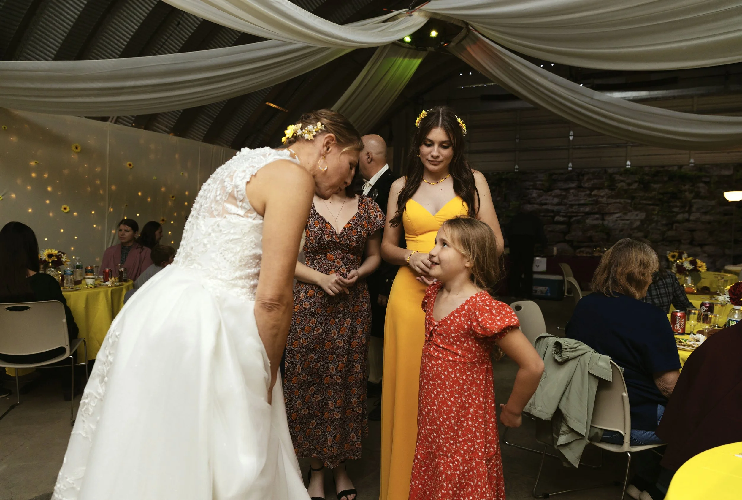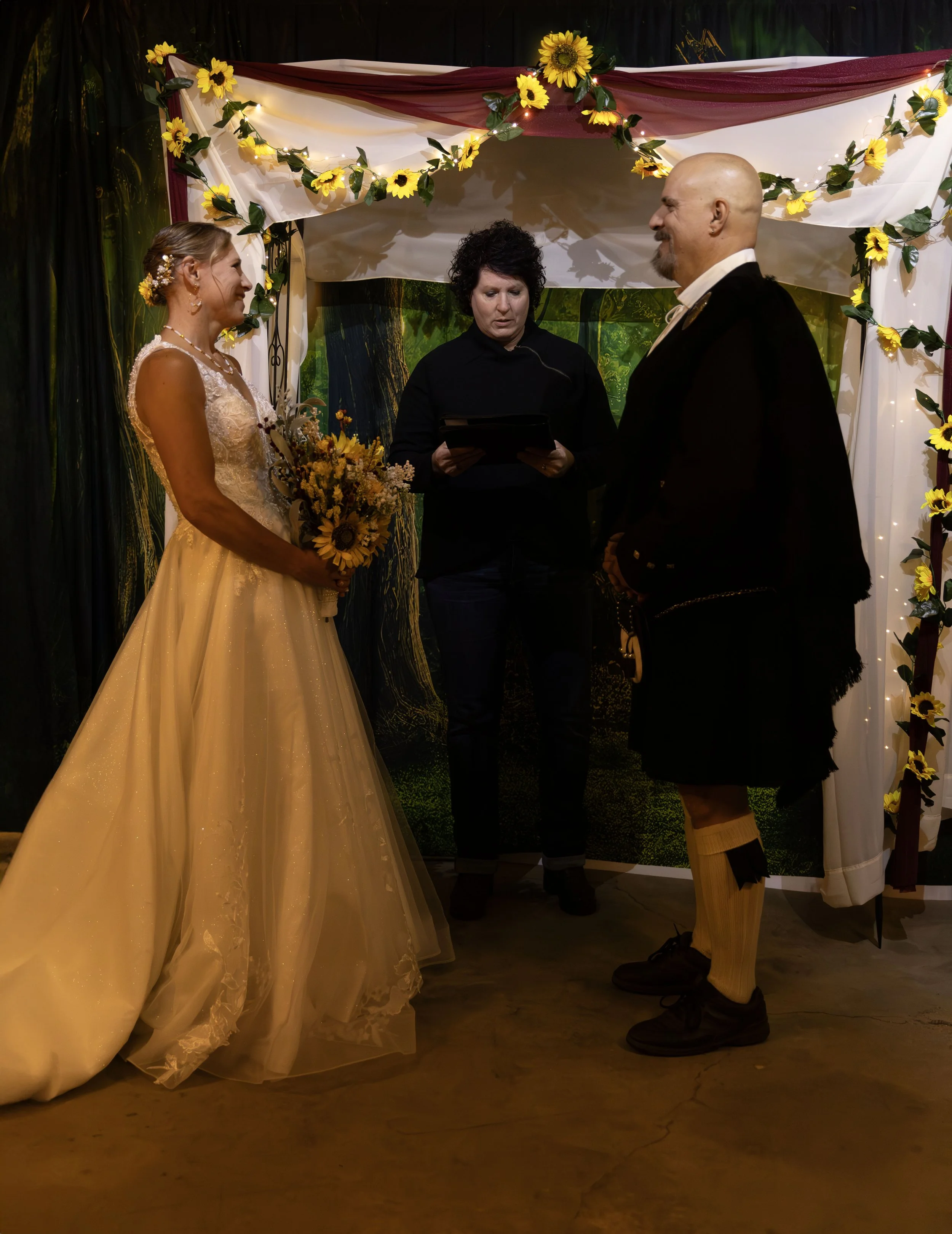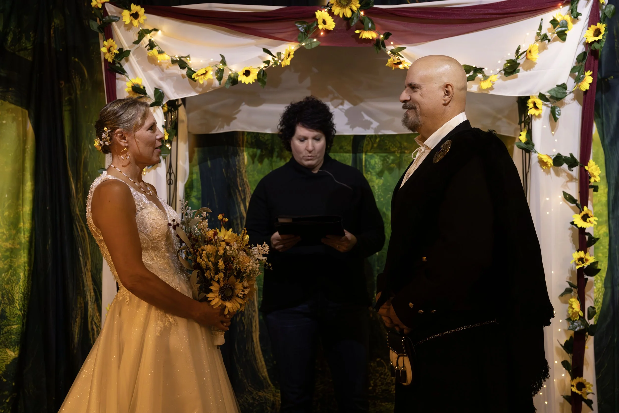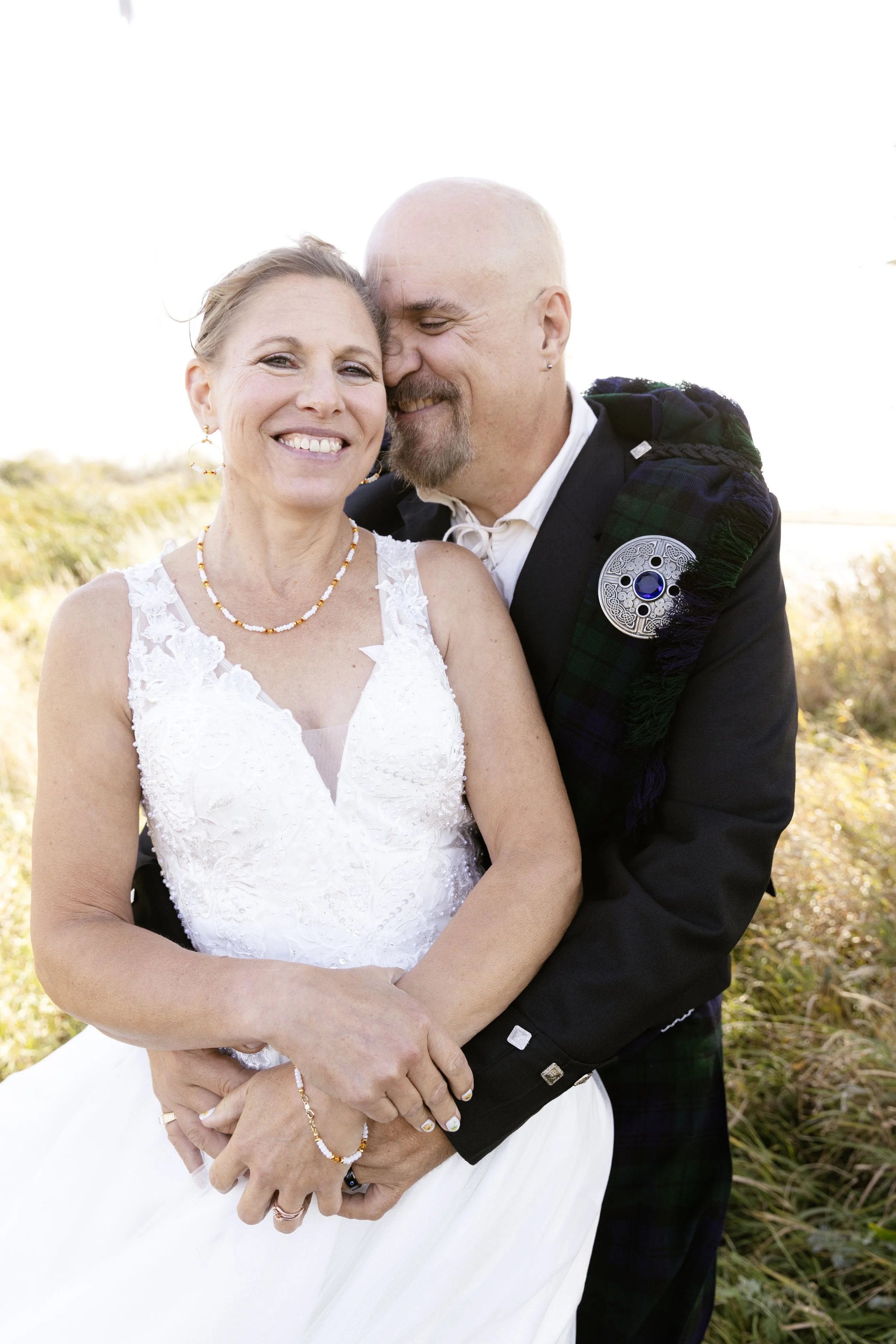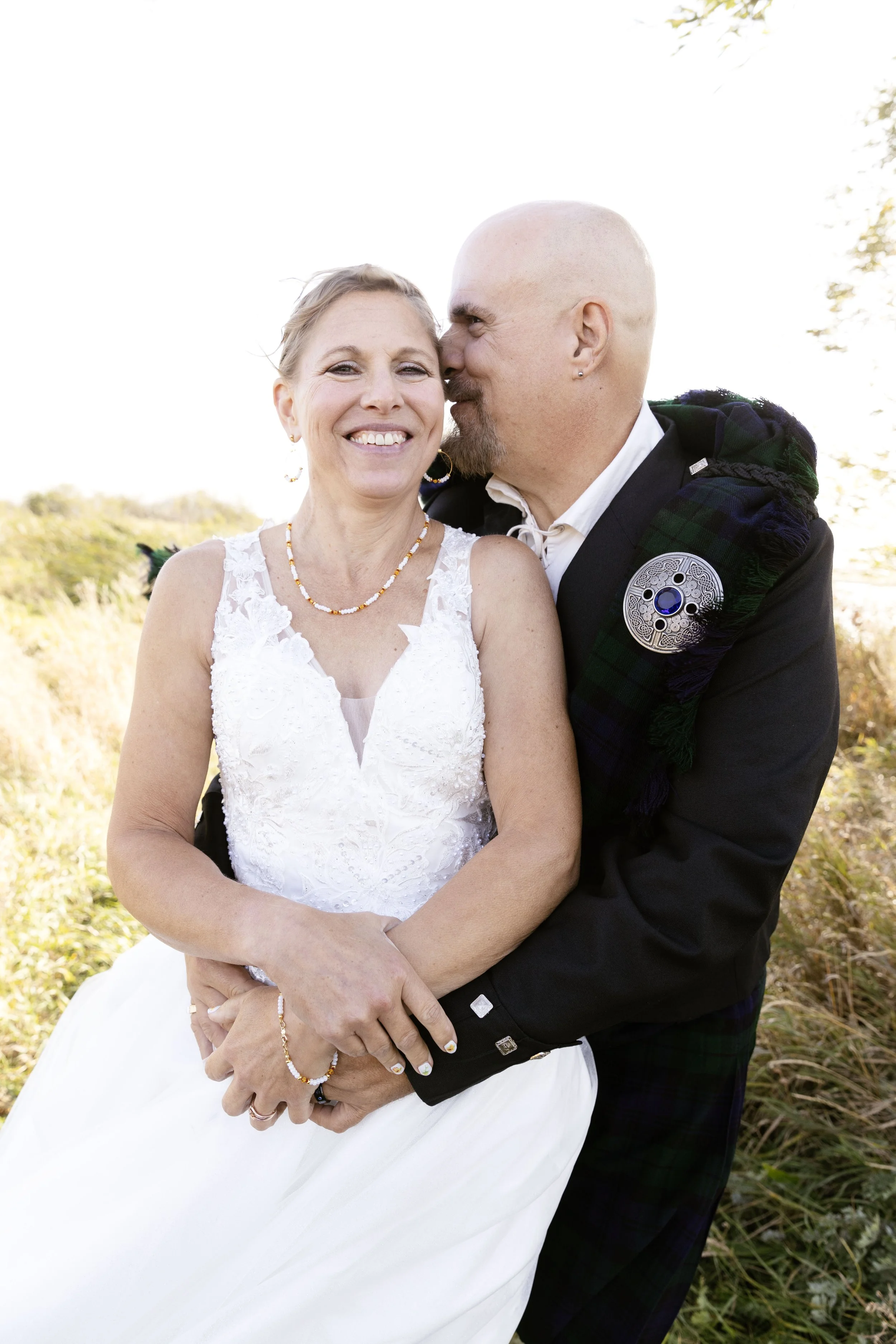 On a windy, sunny October day in 2024, Christine and Walt got married on their own land surrounded by a few friends, and family. It was fitting that sunflowers were part of the decor on such a sunny day. The wind added a sort of editorial feel to their portraits.