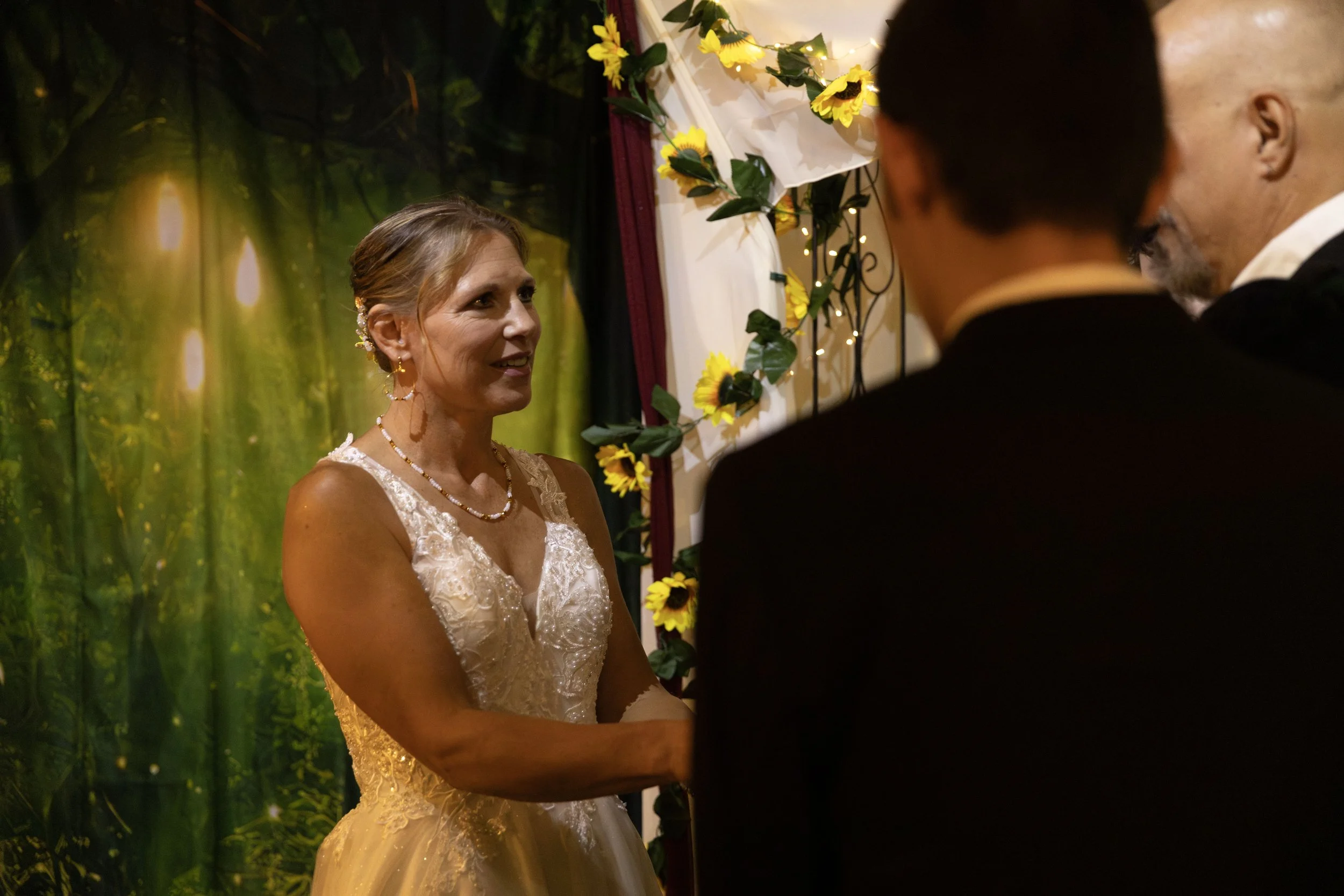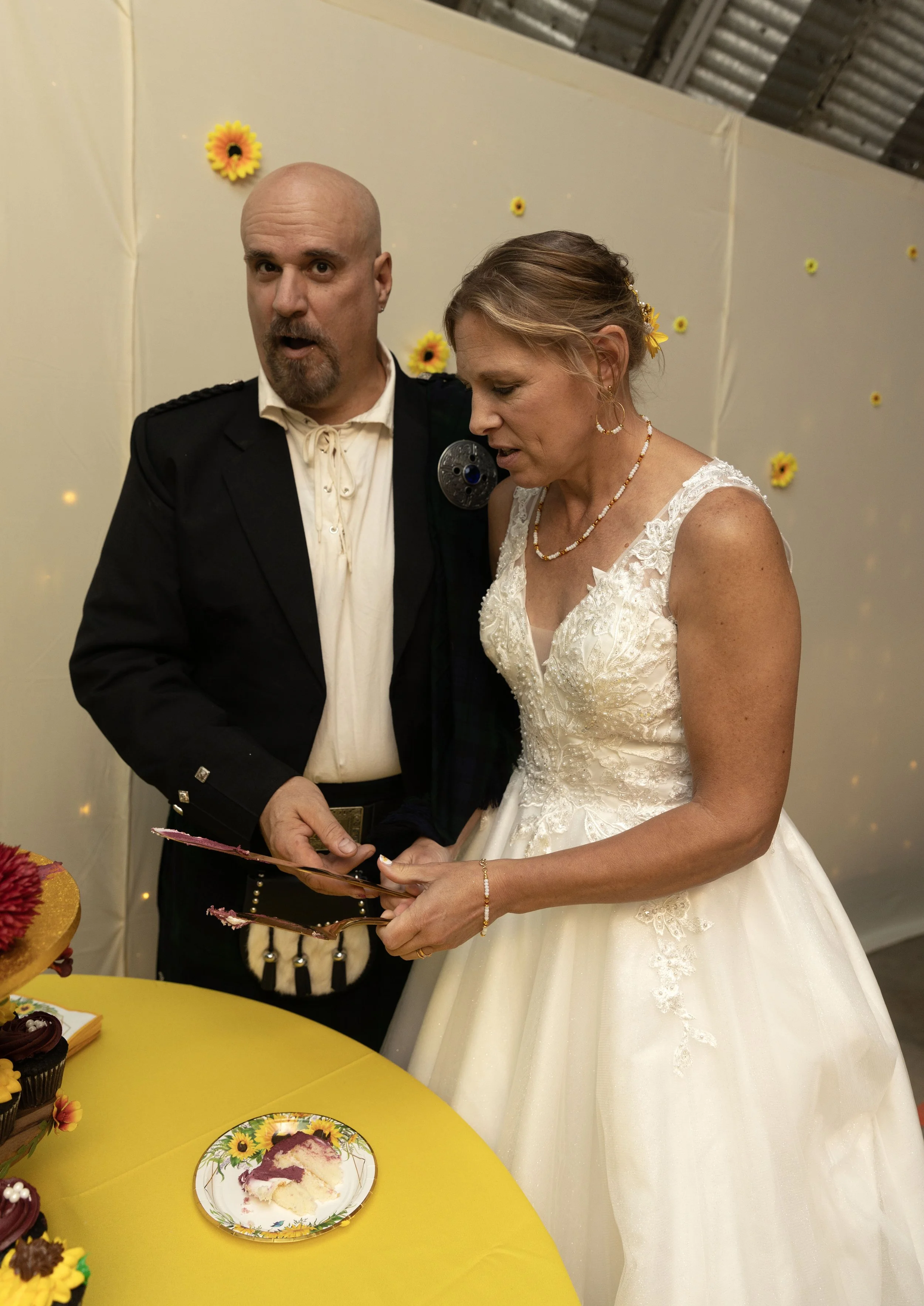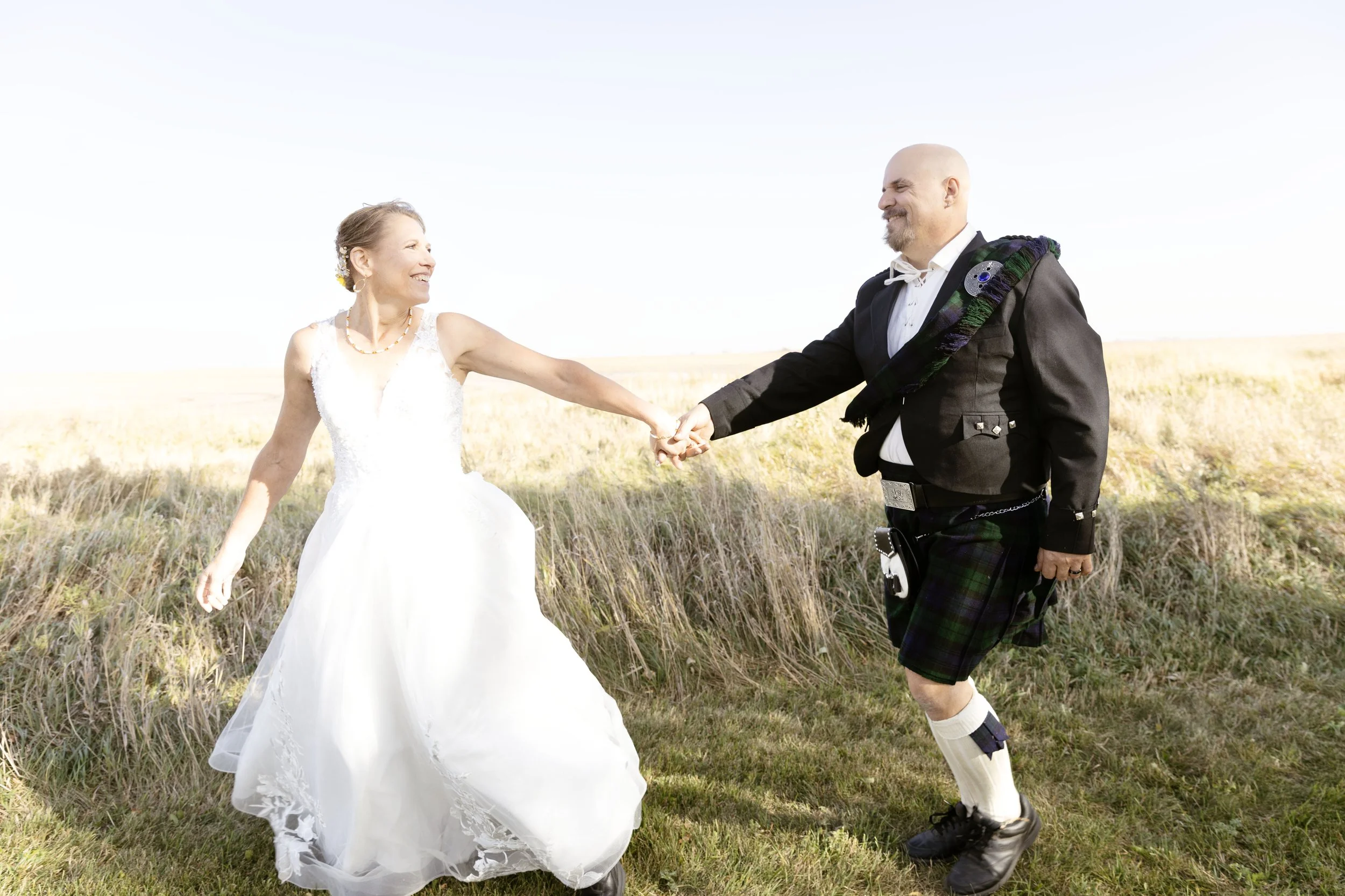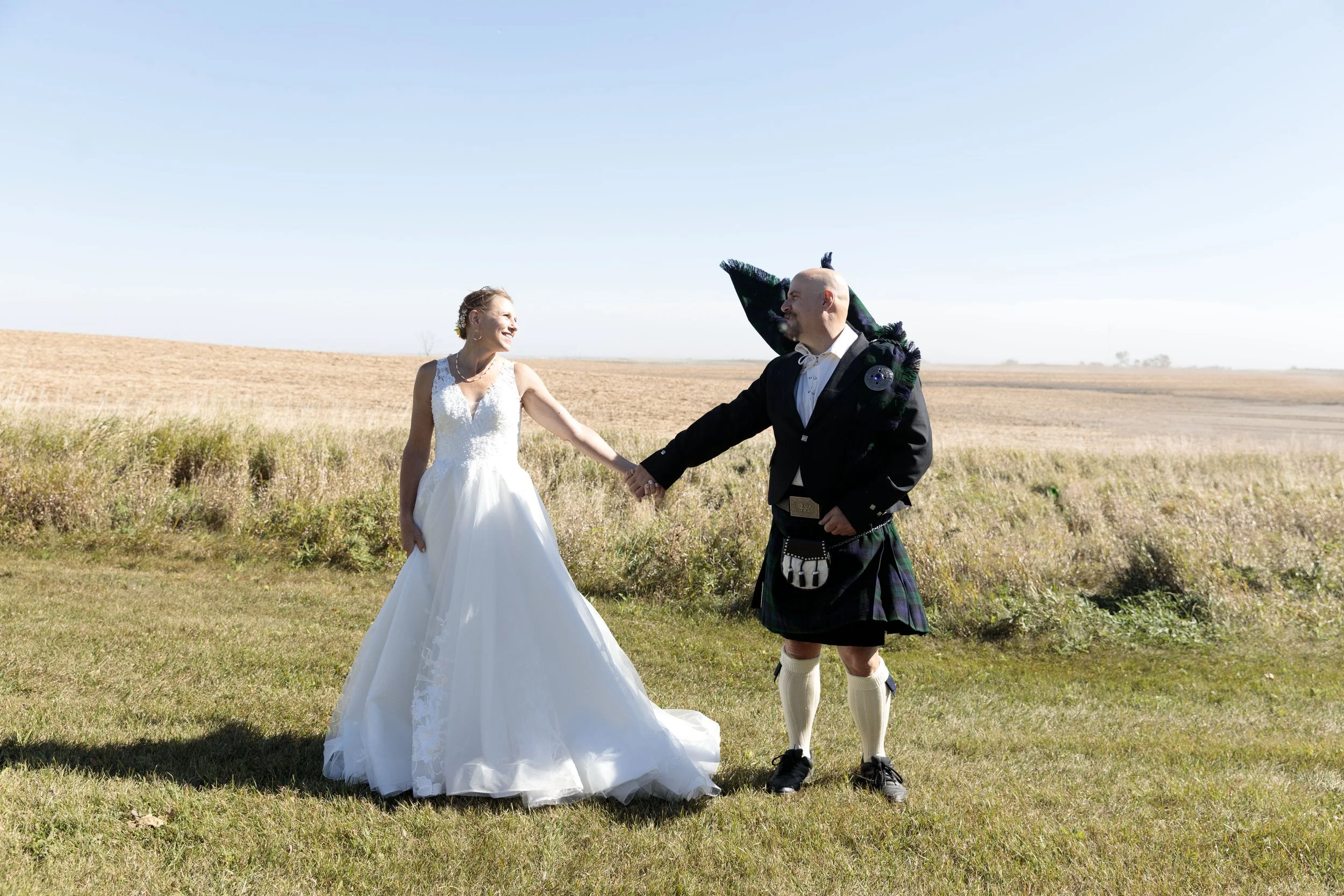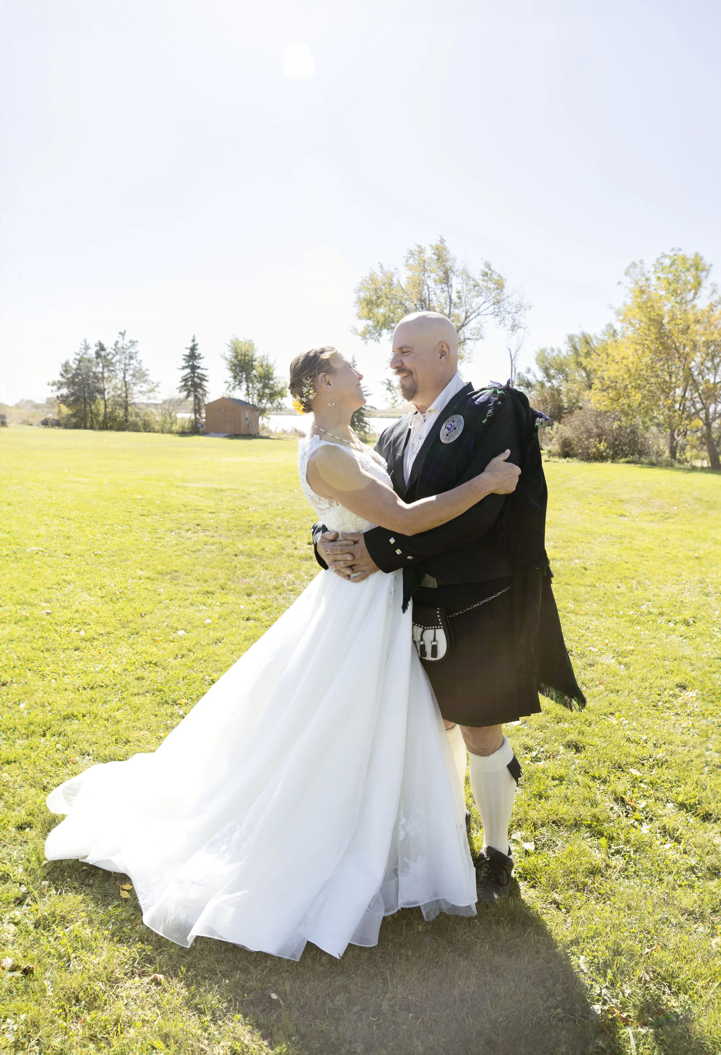 On a windy, sunny October day in 2024, Christine and Walt got married on their own land surrounded by a few friends, and family. It was fitting that sunflowers were part of the decor on such a sunny day. The wind added a sort of editorial feel to their portraits.