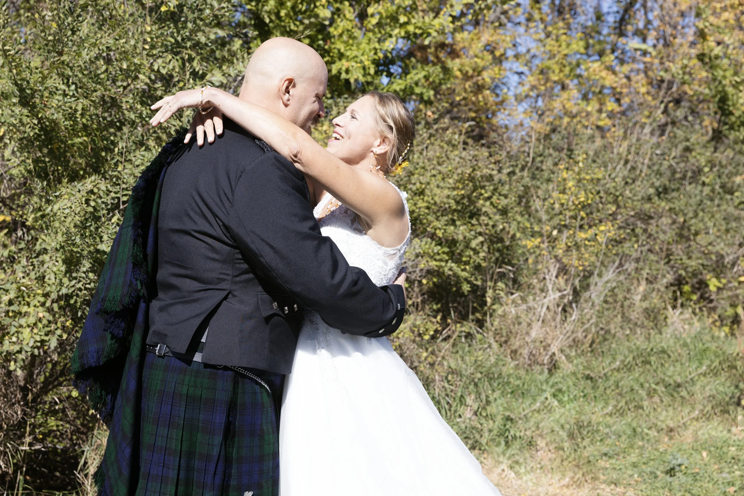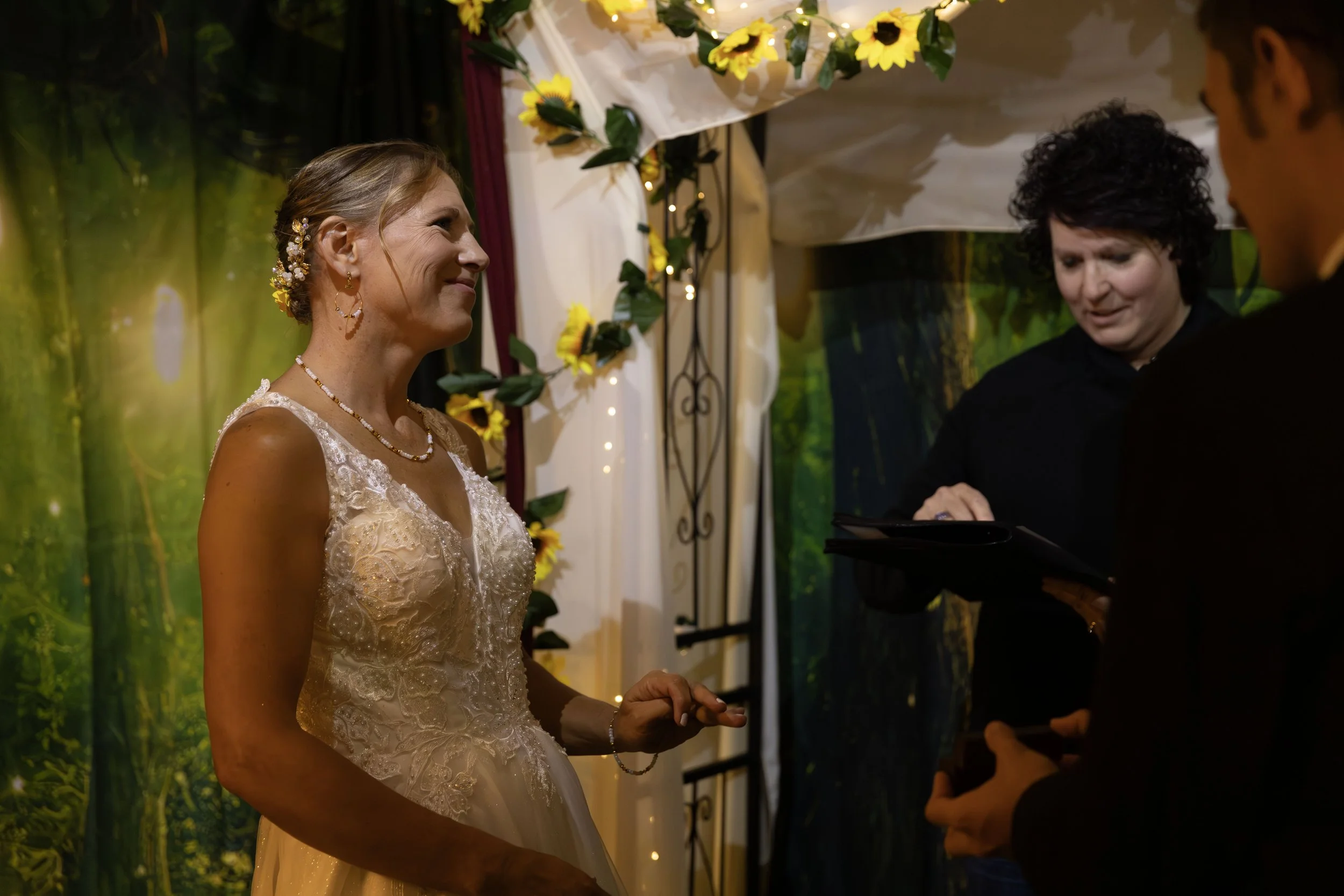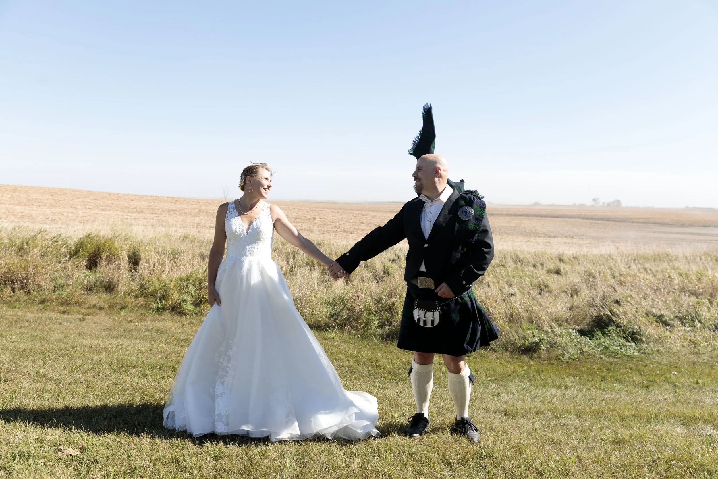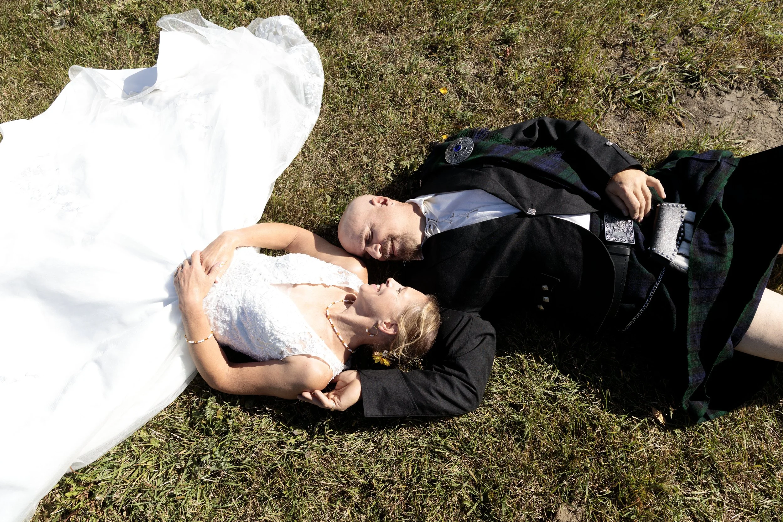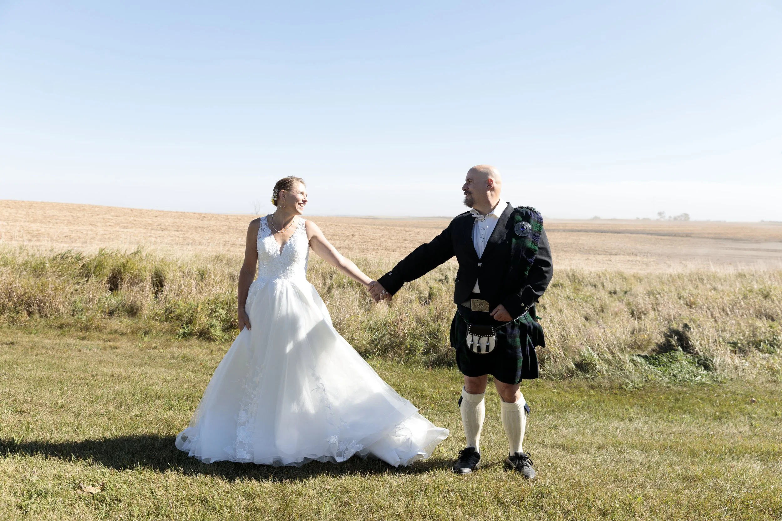 On a windy, sunny October day in 2024, Christine and Walt got married on their own land surrounded by a few friends, and family. It was fitting that sunflowers were part of the decor on such a sunny day. The wind added a sort of editorial feel to their portraits.