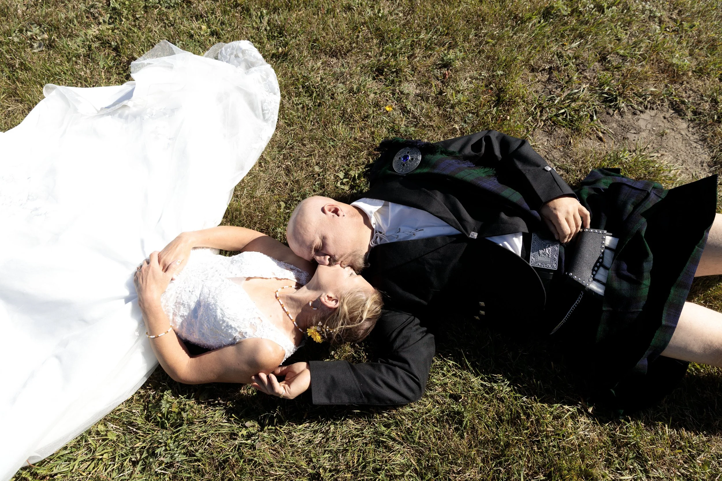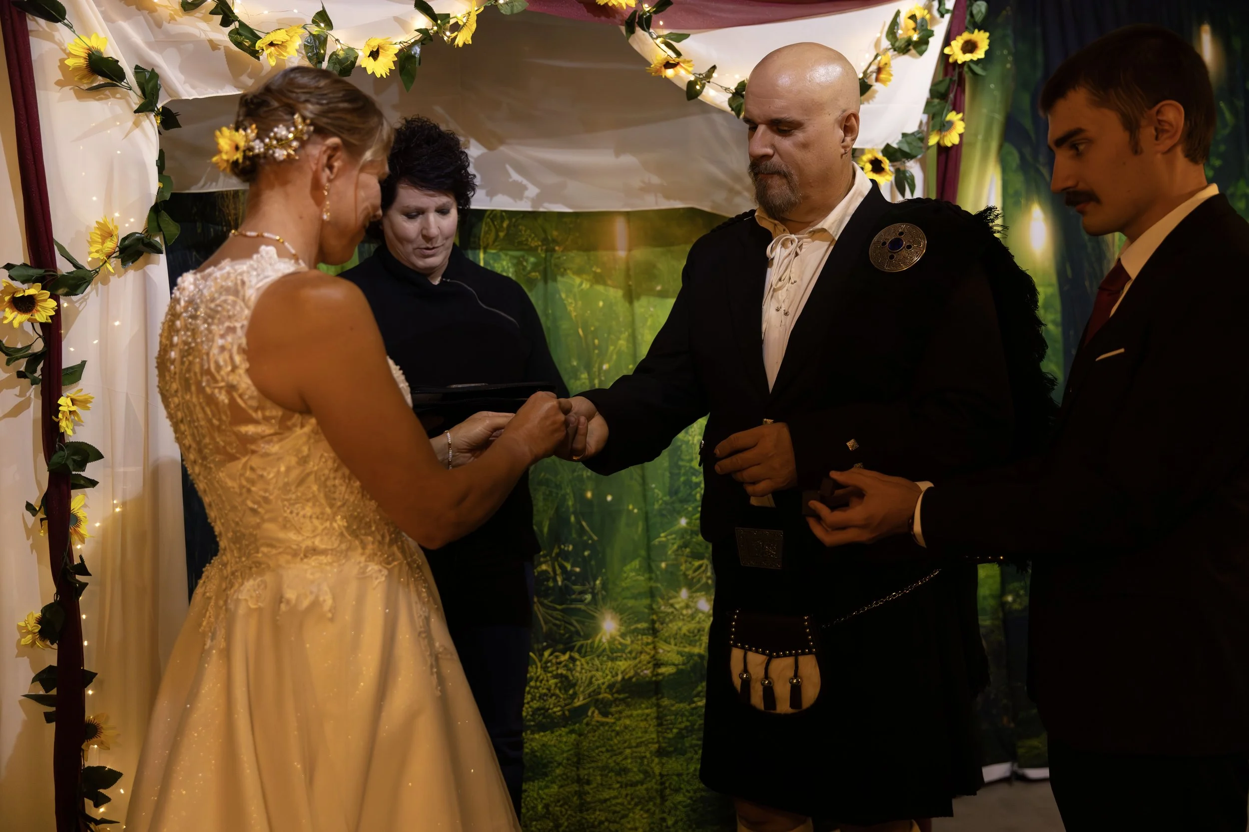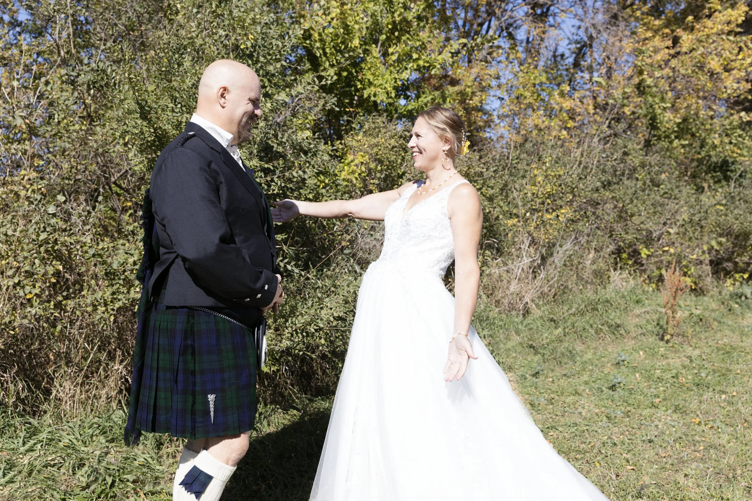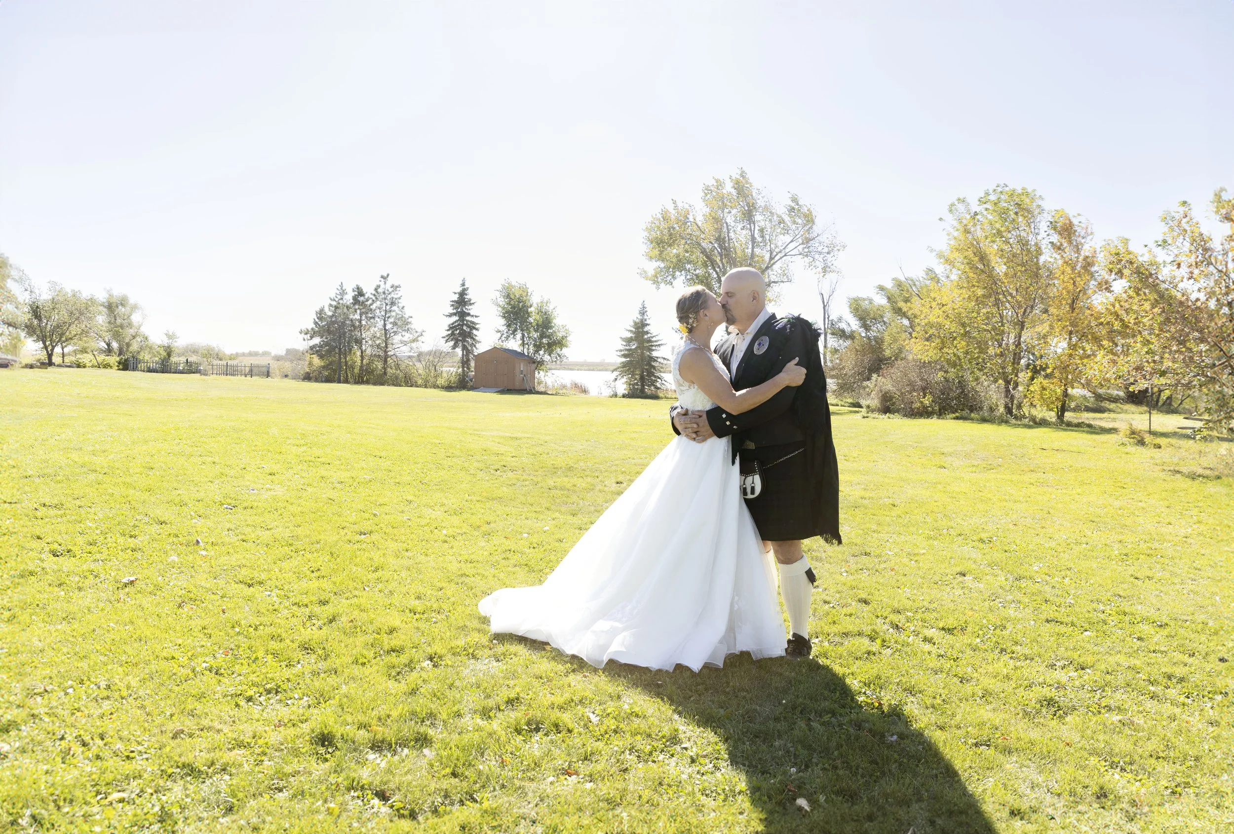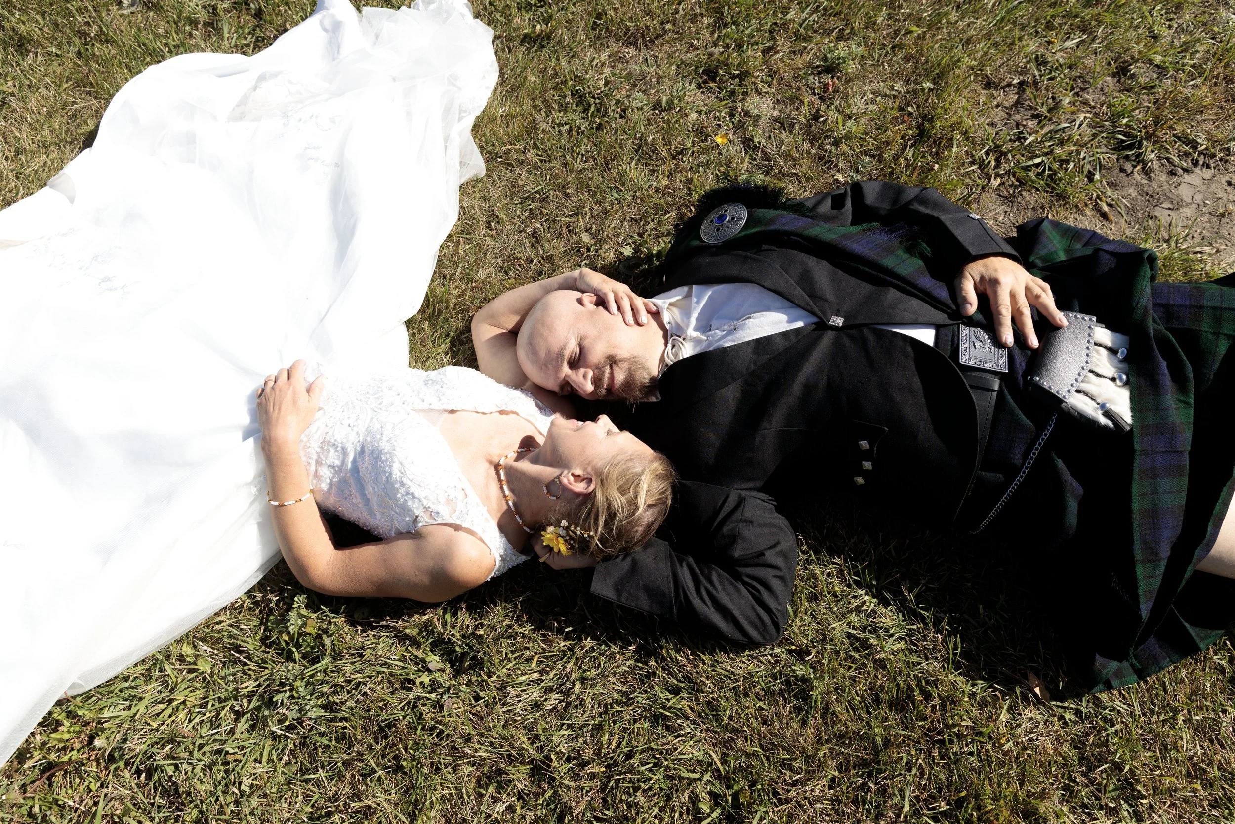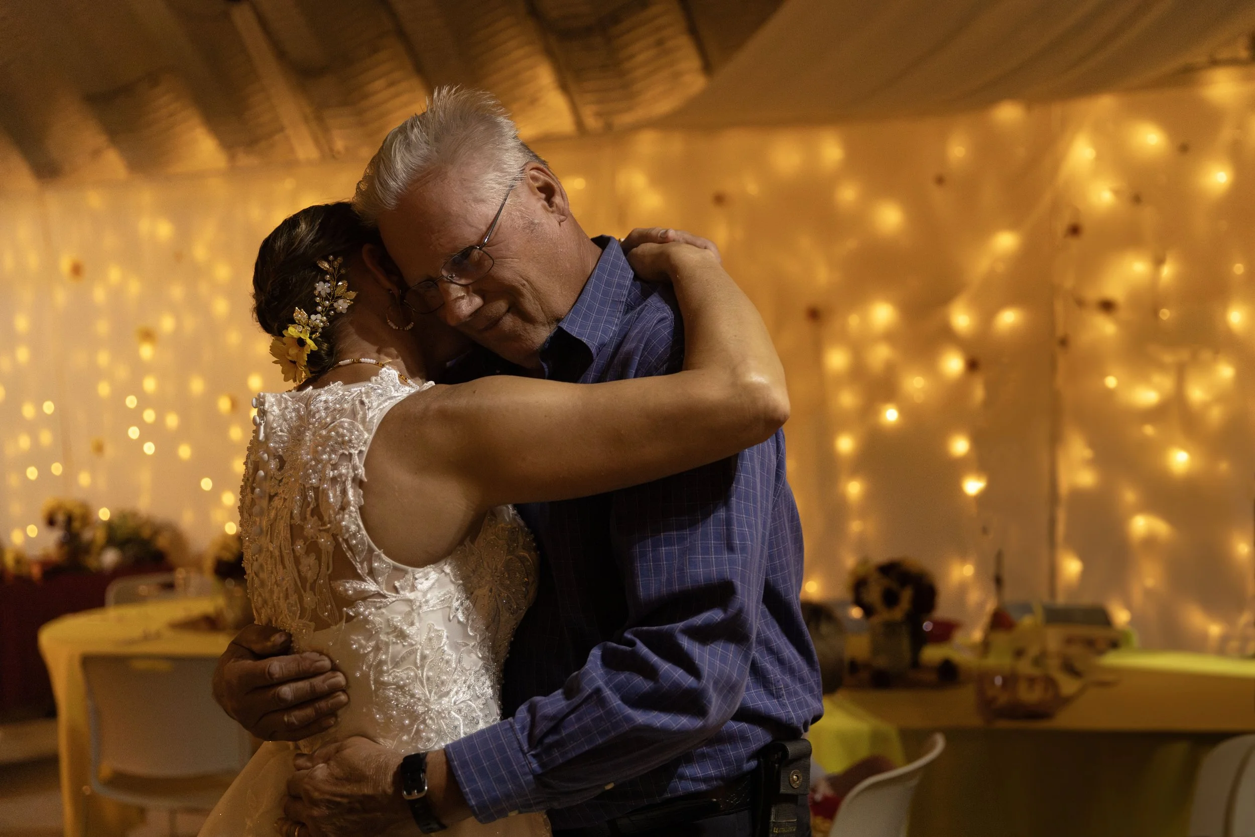 On a windy, sunny October day in 2024, Christine and Walt got married on their own land surrounded by a few friends, and family. It was fitting that sunflowers were part of the decor on such a sunny day. The wind added a sort of editorial feel to their portraits.