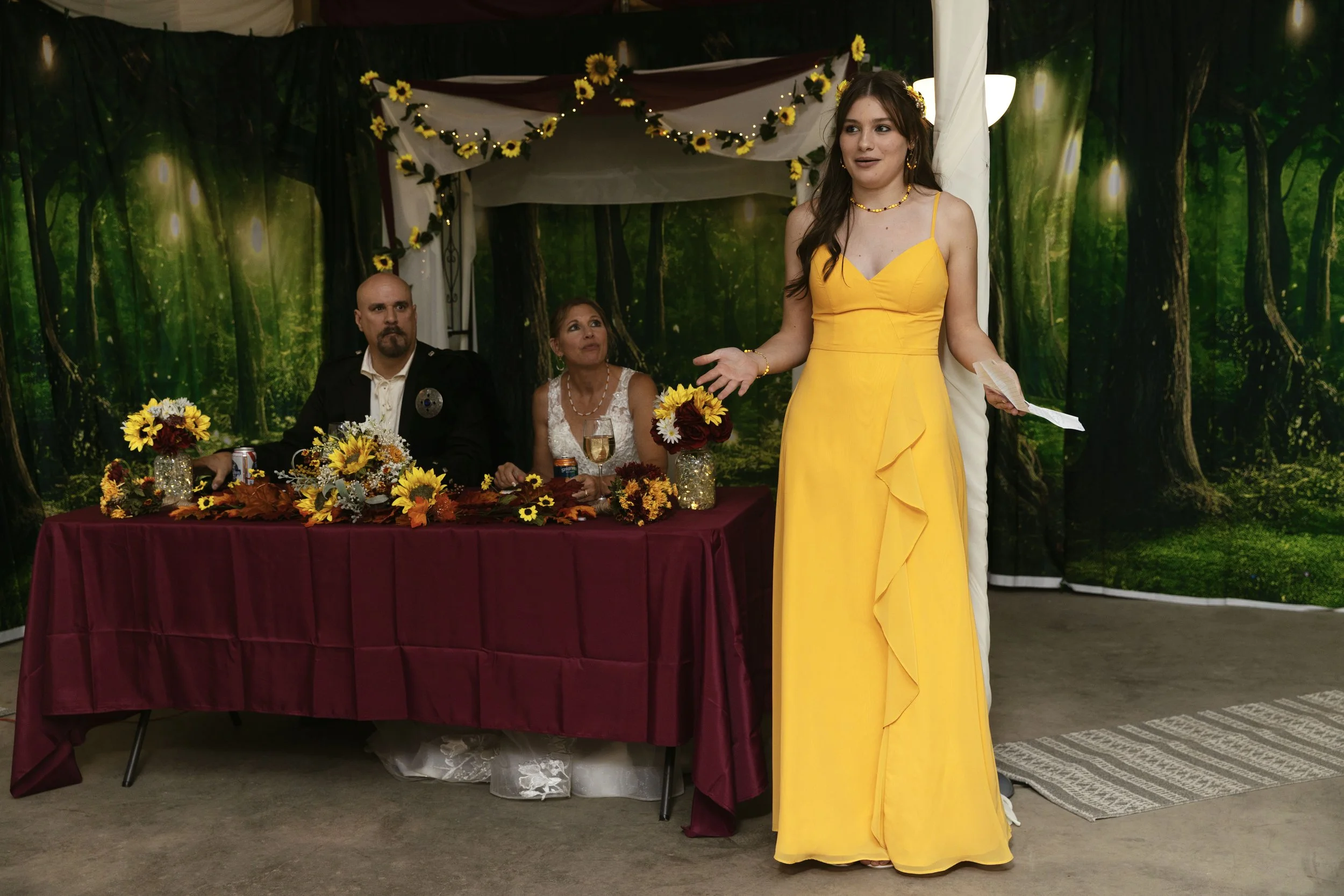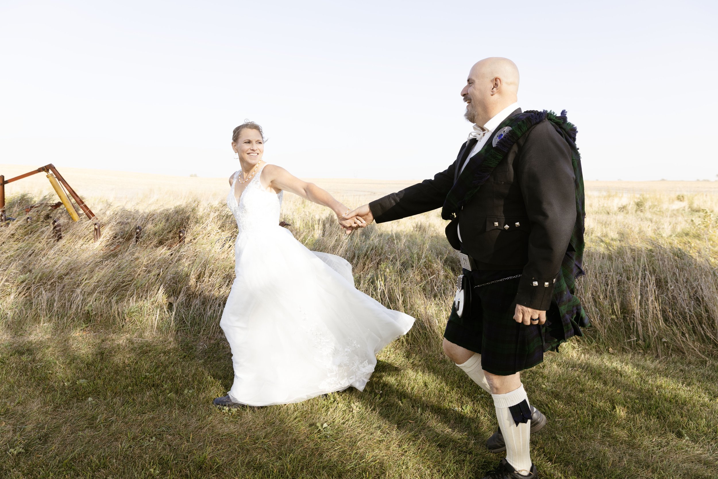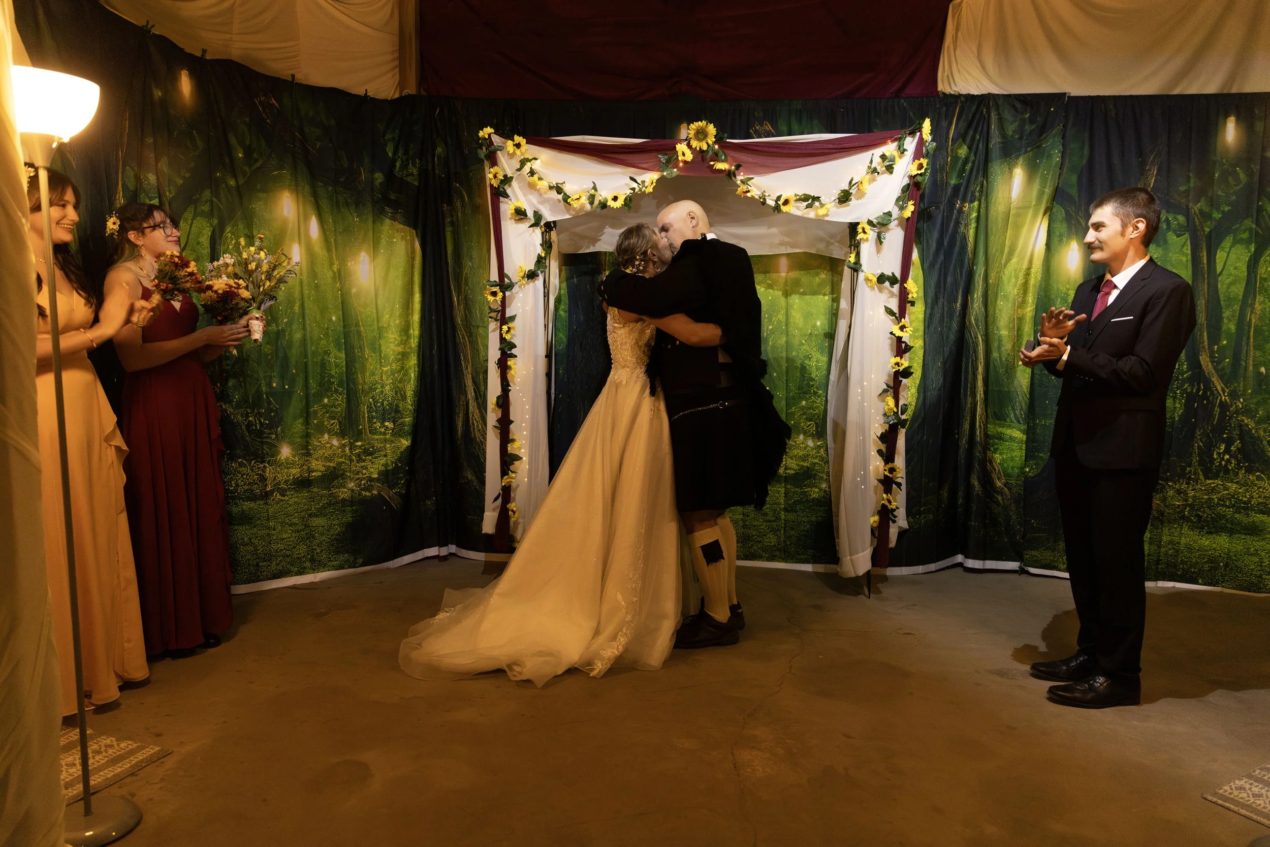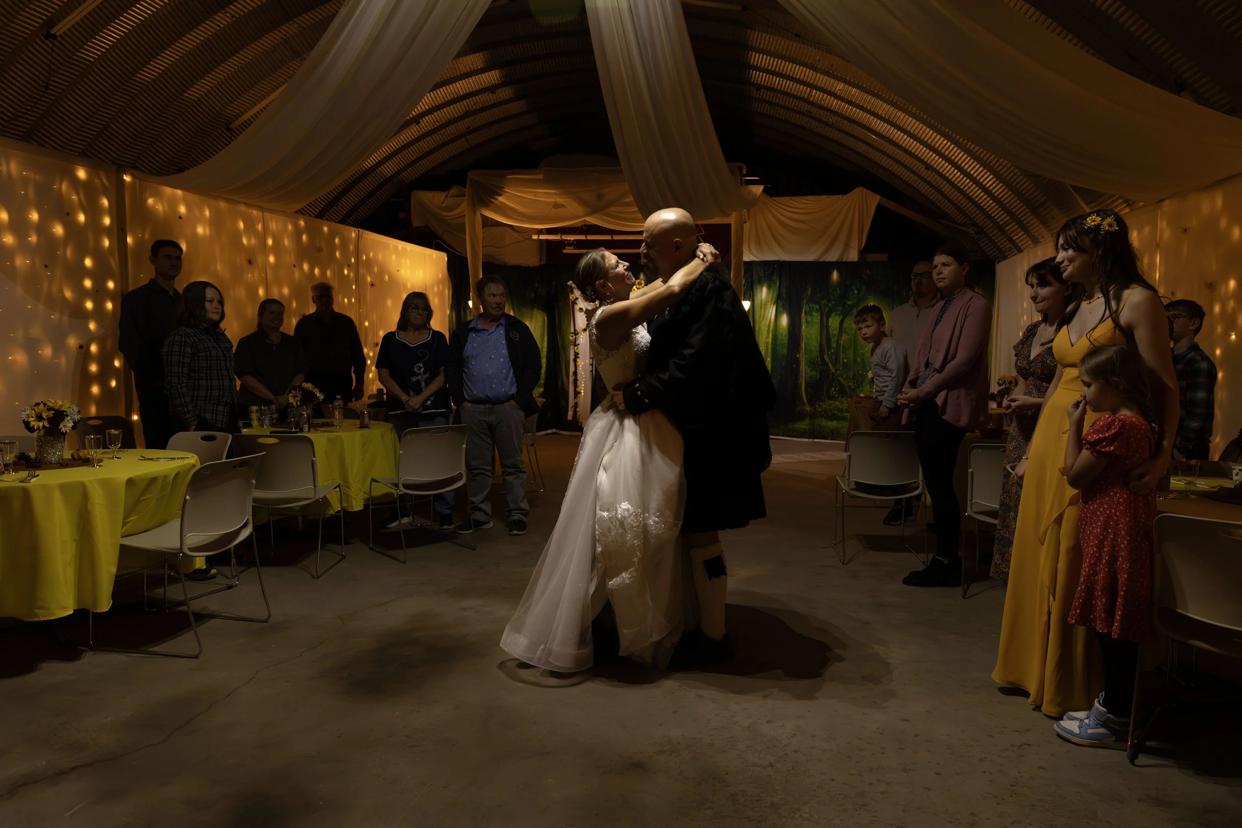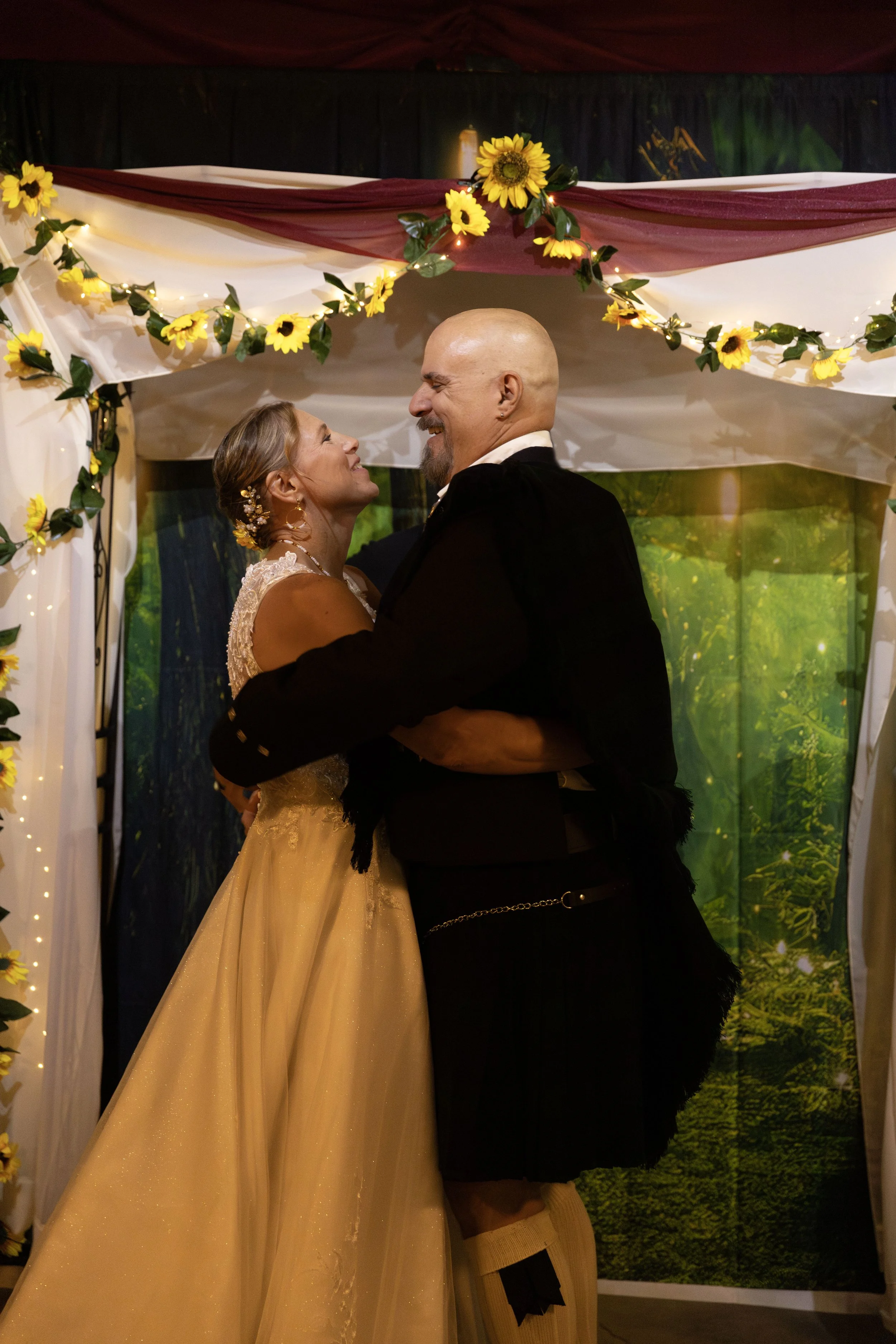 On a windy, sunny October day in 2024, Christine and Walt got married on their own land surrounded by a few friends, and family. It was fitting that sunflowers were part of the decor on such a sunny day. The wind added a sort of editorial feel to their portraits.