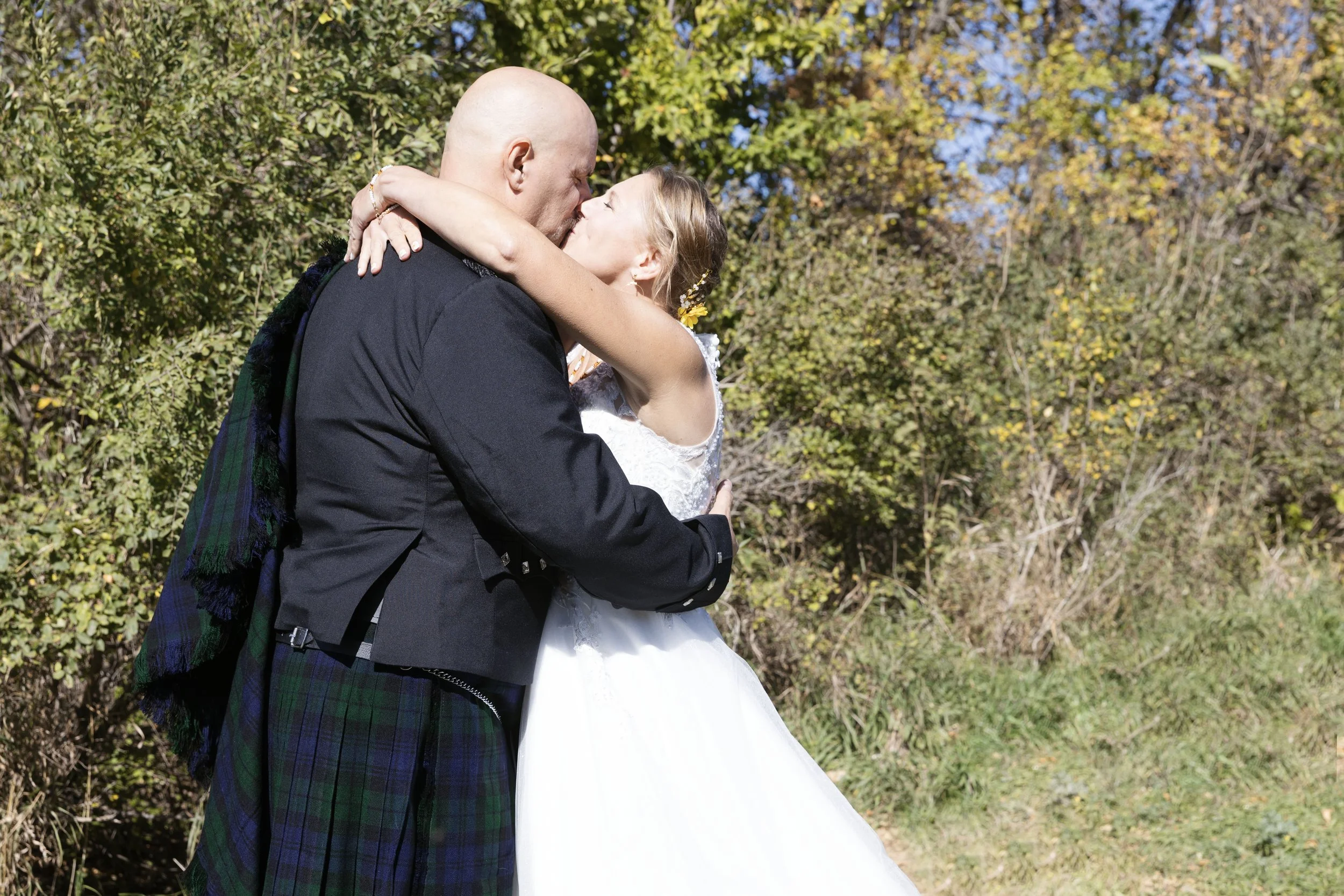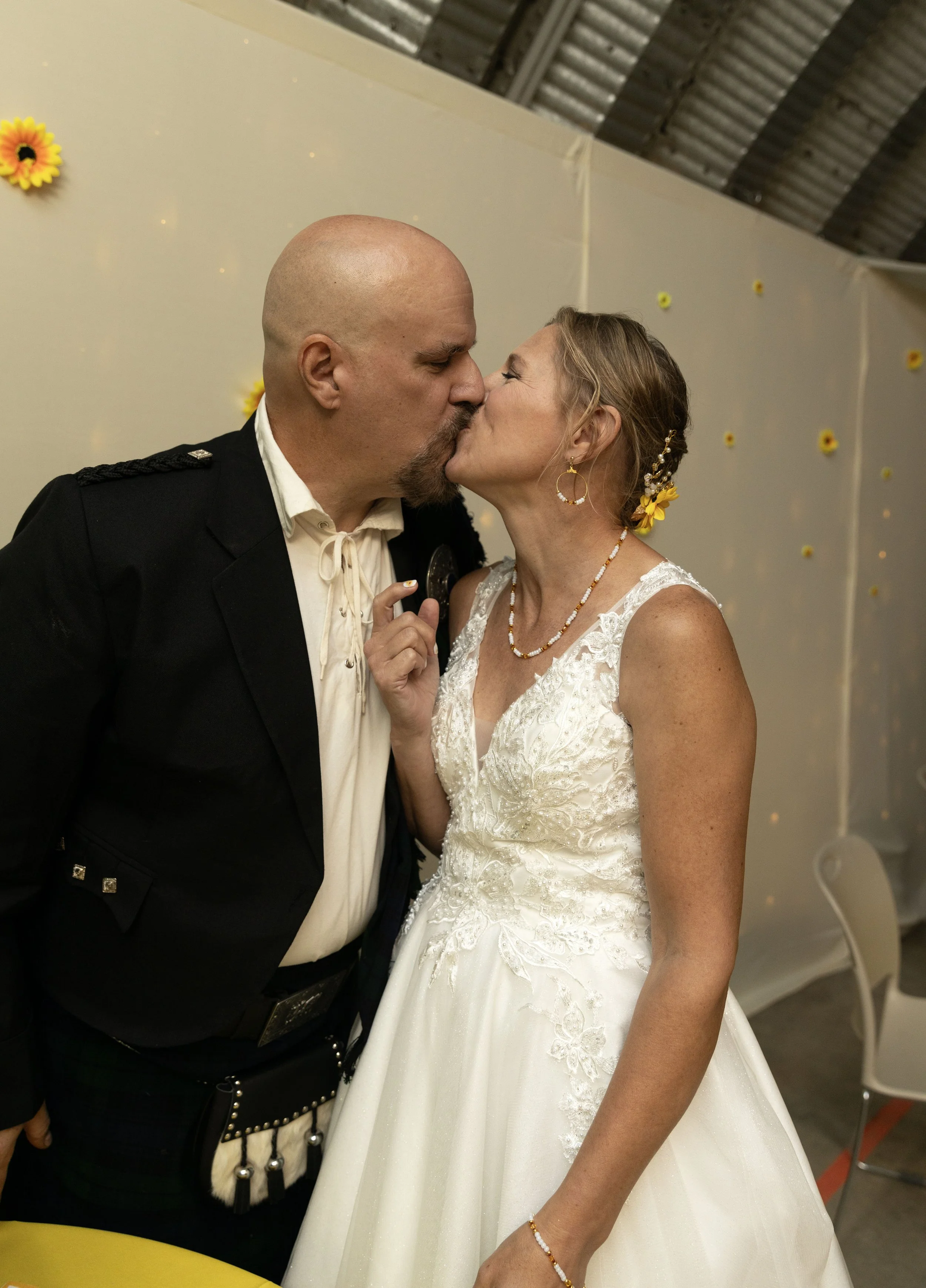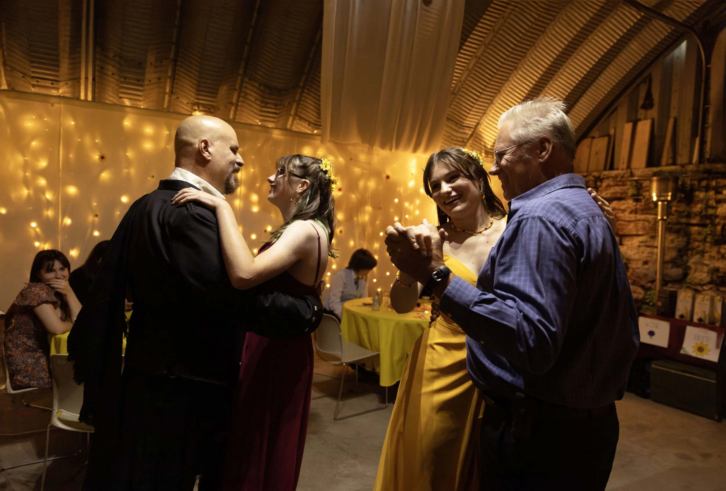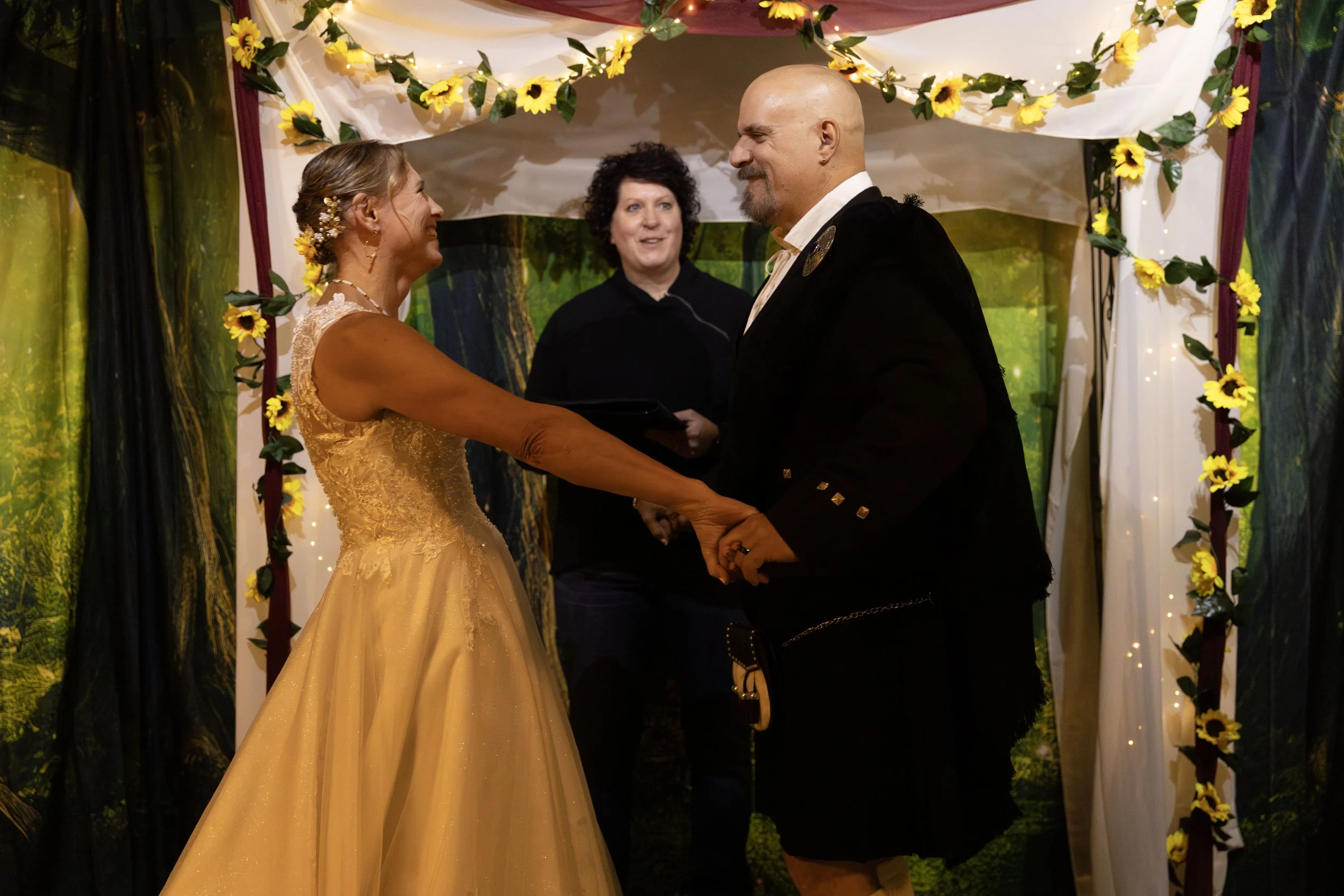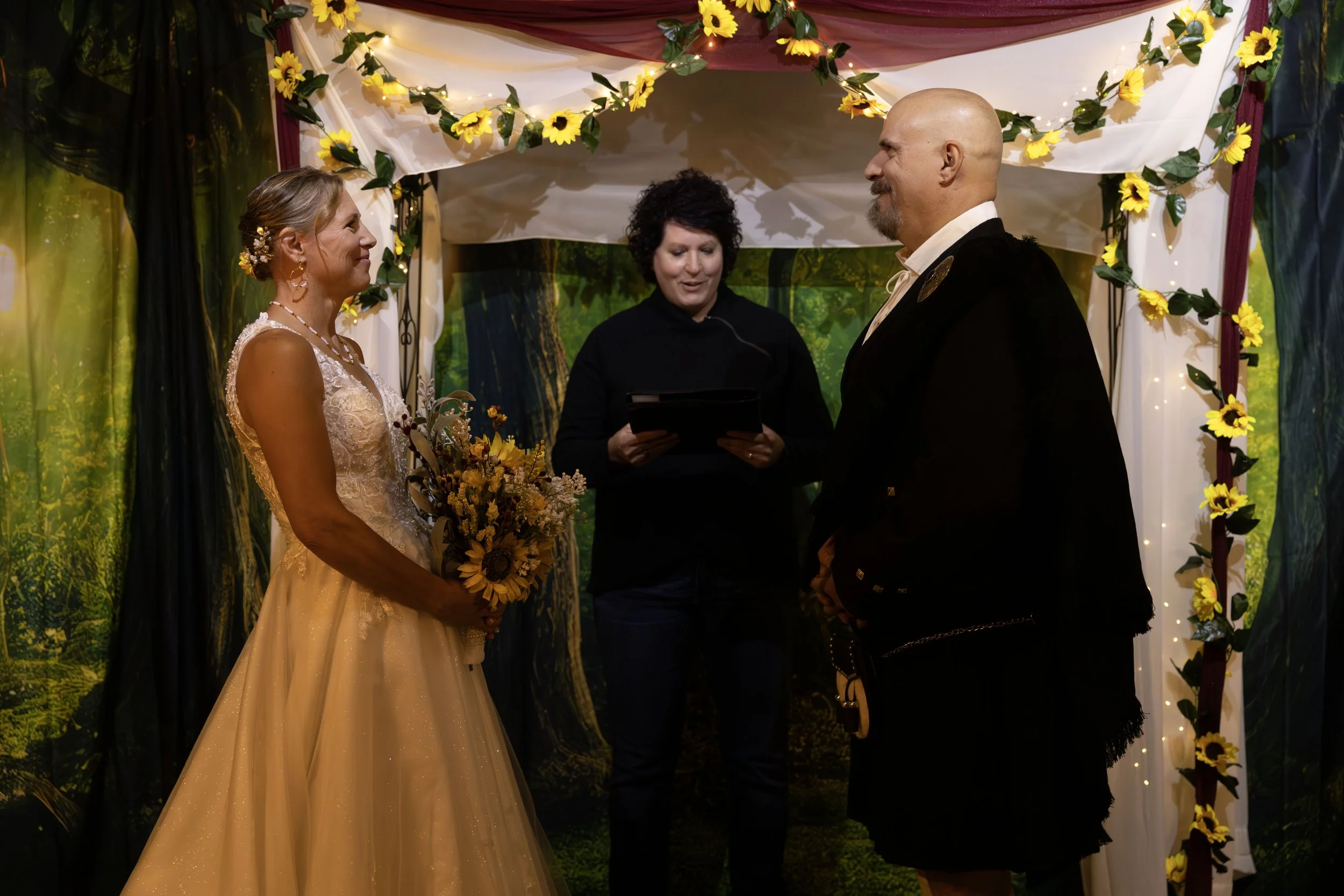 On a windy, sunny October day in 2024, Christine and Walt got married on their own land surrounded by a few friends, and family. It was fitting that sunflowers were part of the decor on such a sunny day. The wind added a sort of editorial feel to their portraits.