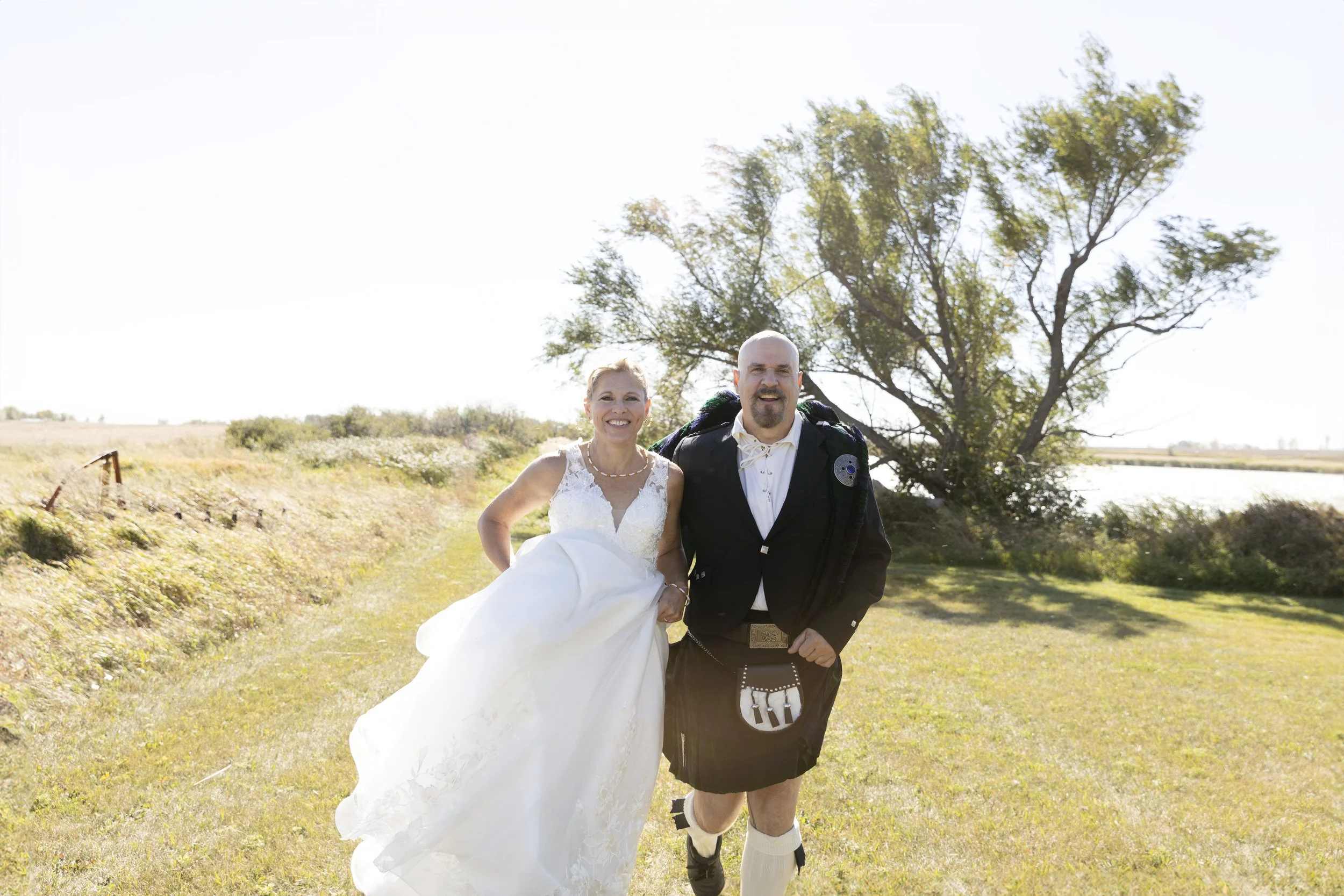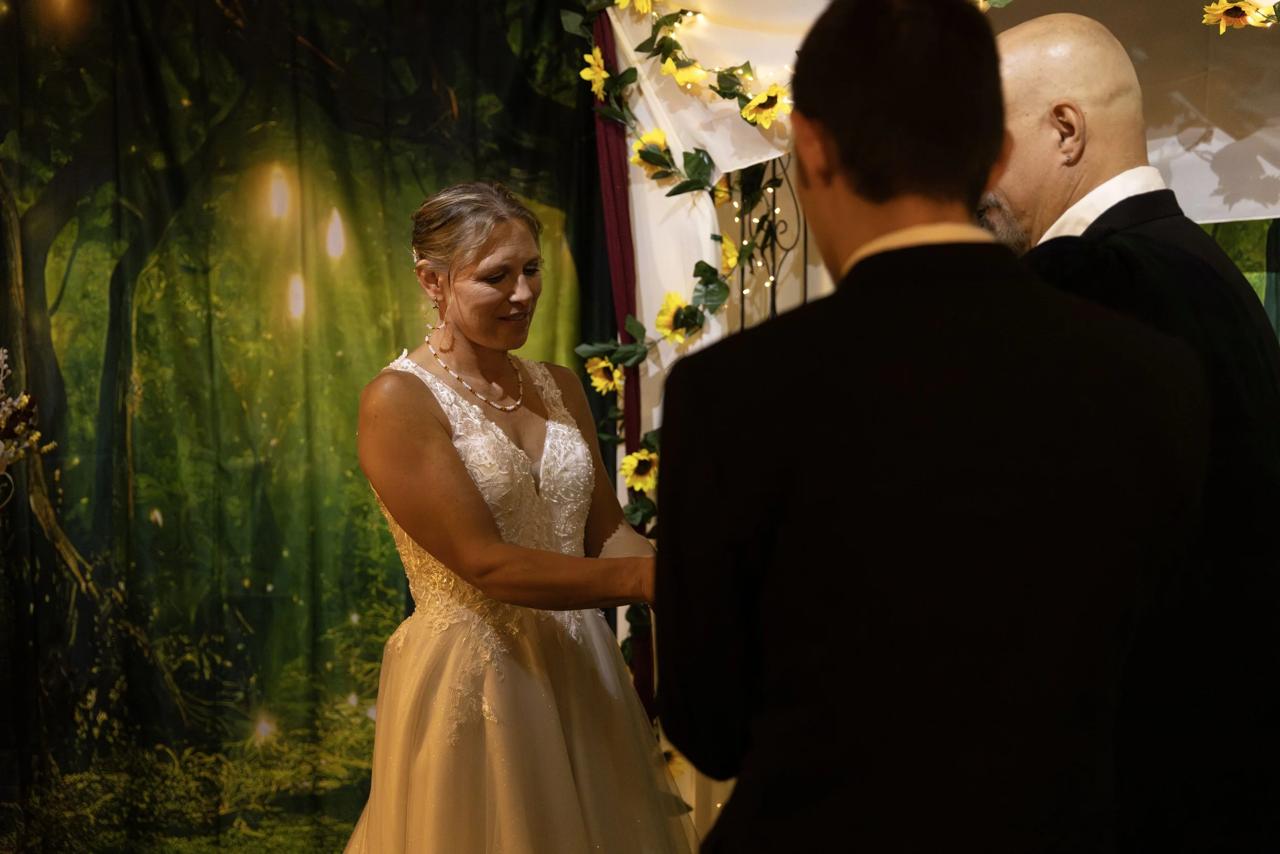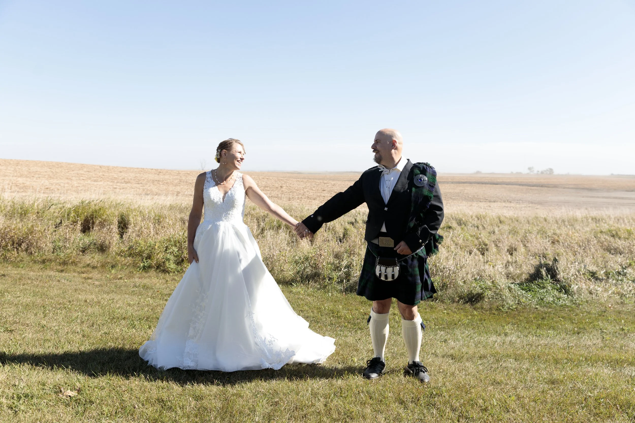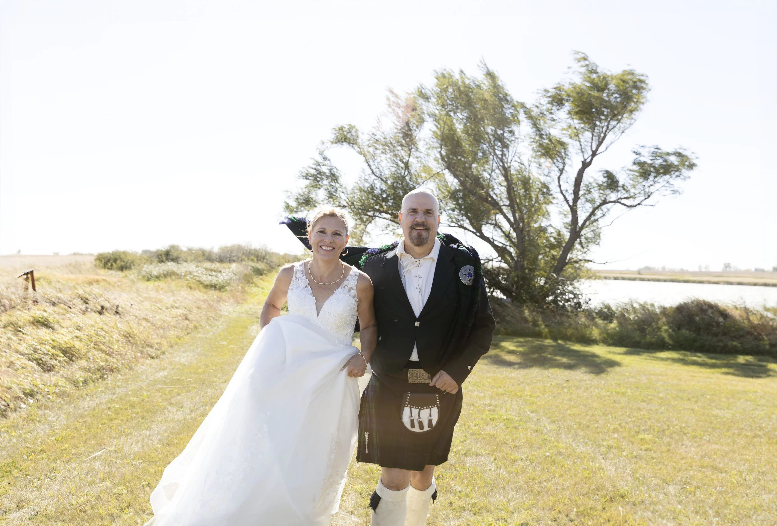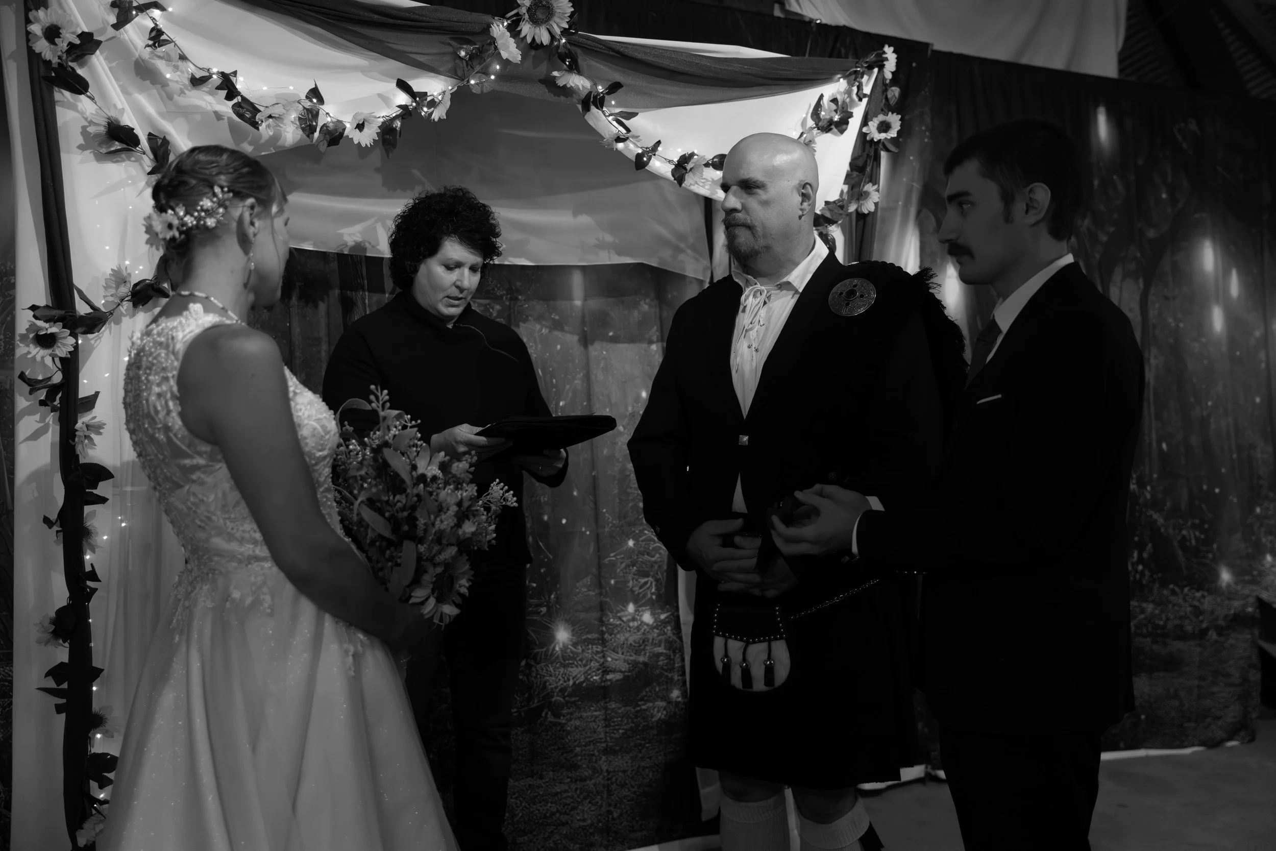 On a windy, sunny October day in 2024, Christine and Walt got married on their own land surrounded by a few friends, and family. It was fitting that sunflowers were part of the decor on such a sunny day. The wind added a sort of editorial feel to their portraits.
