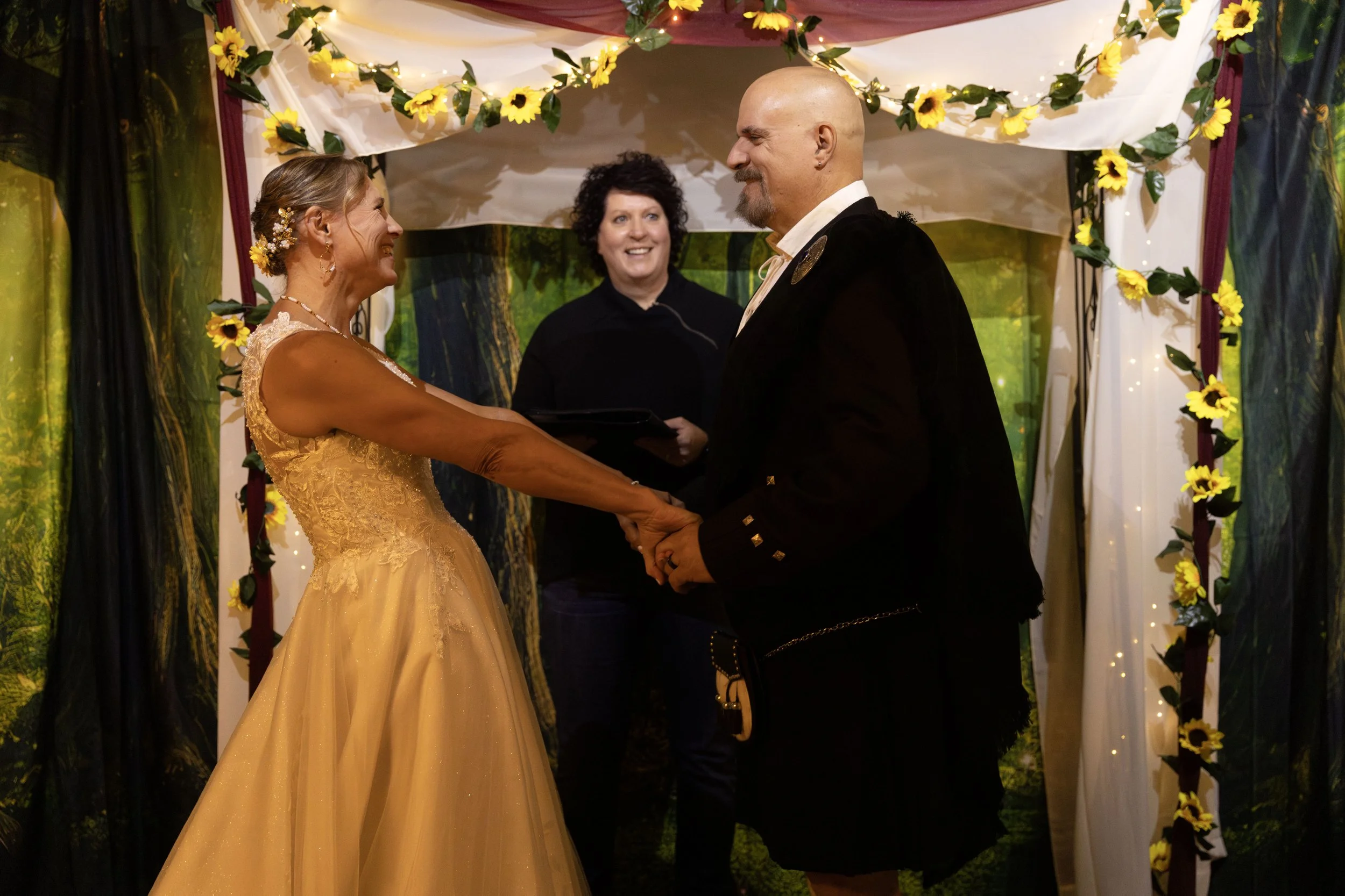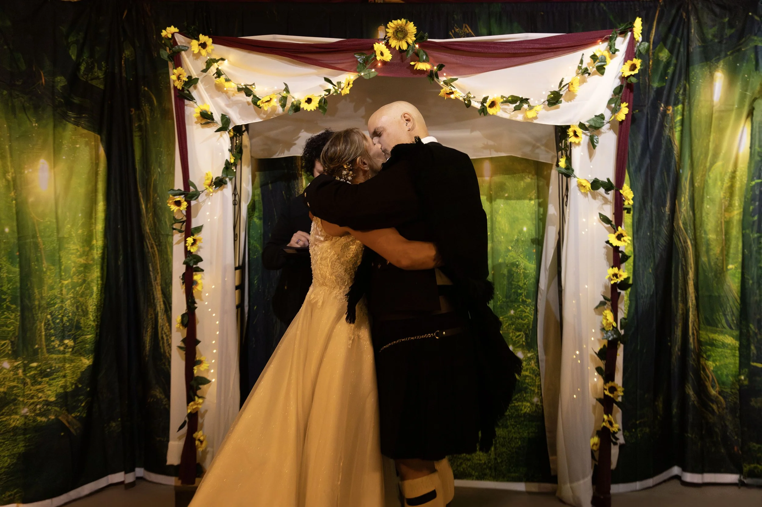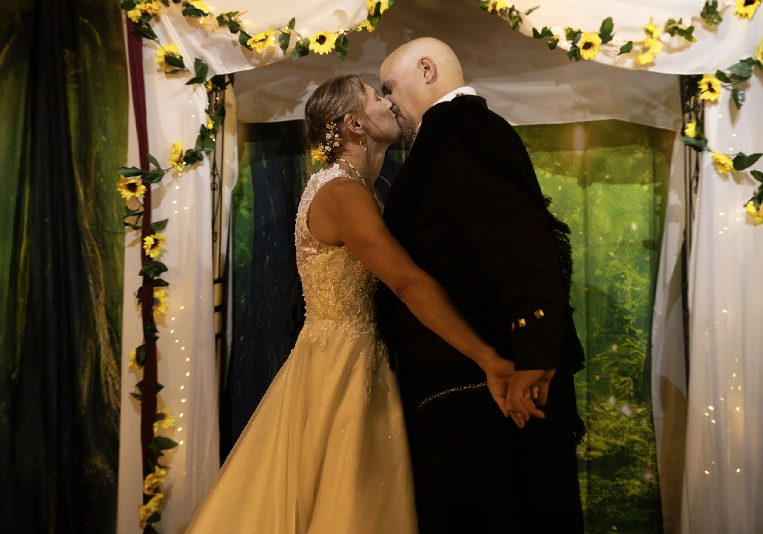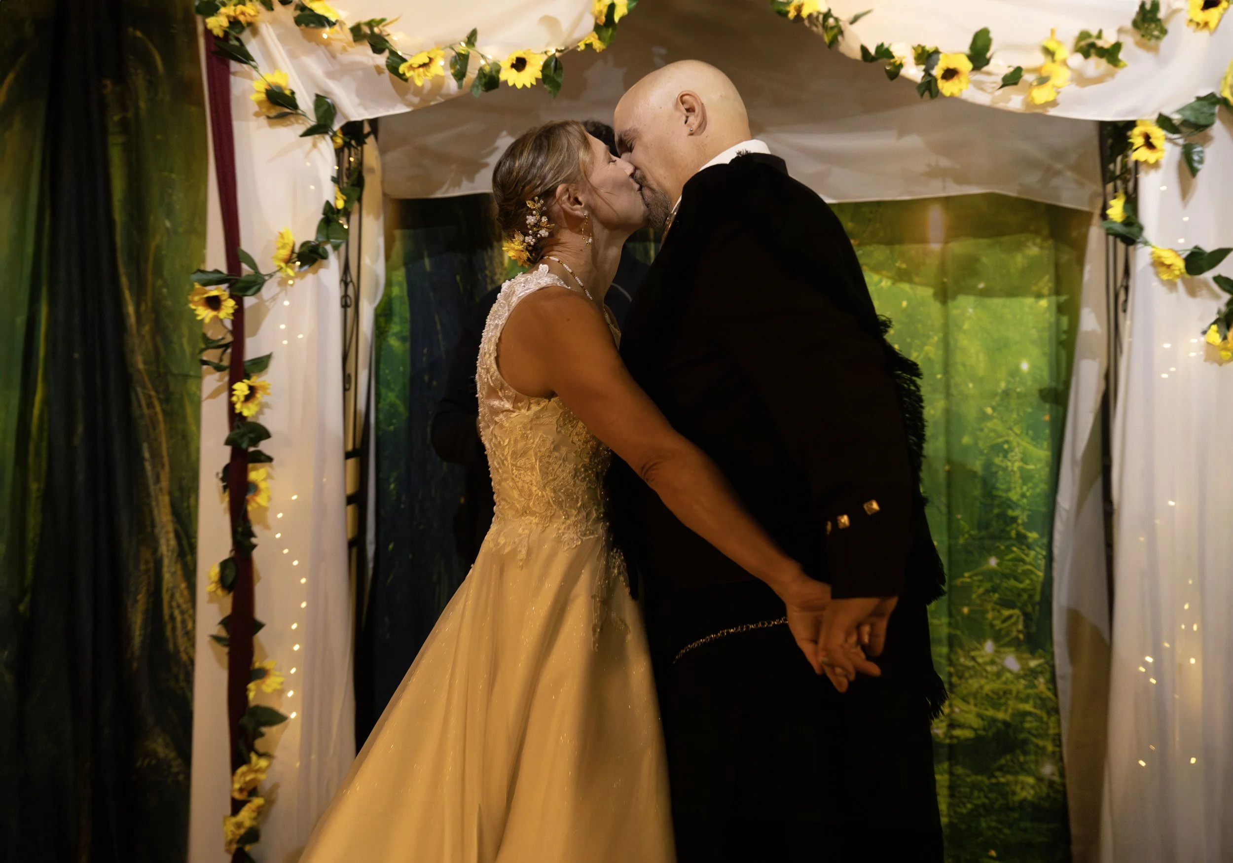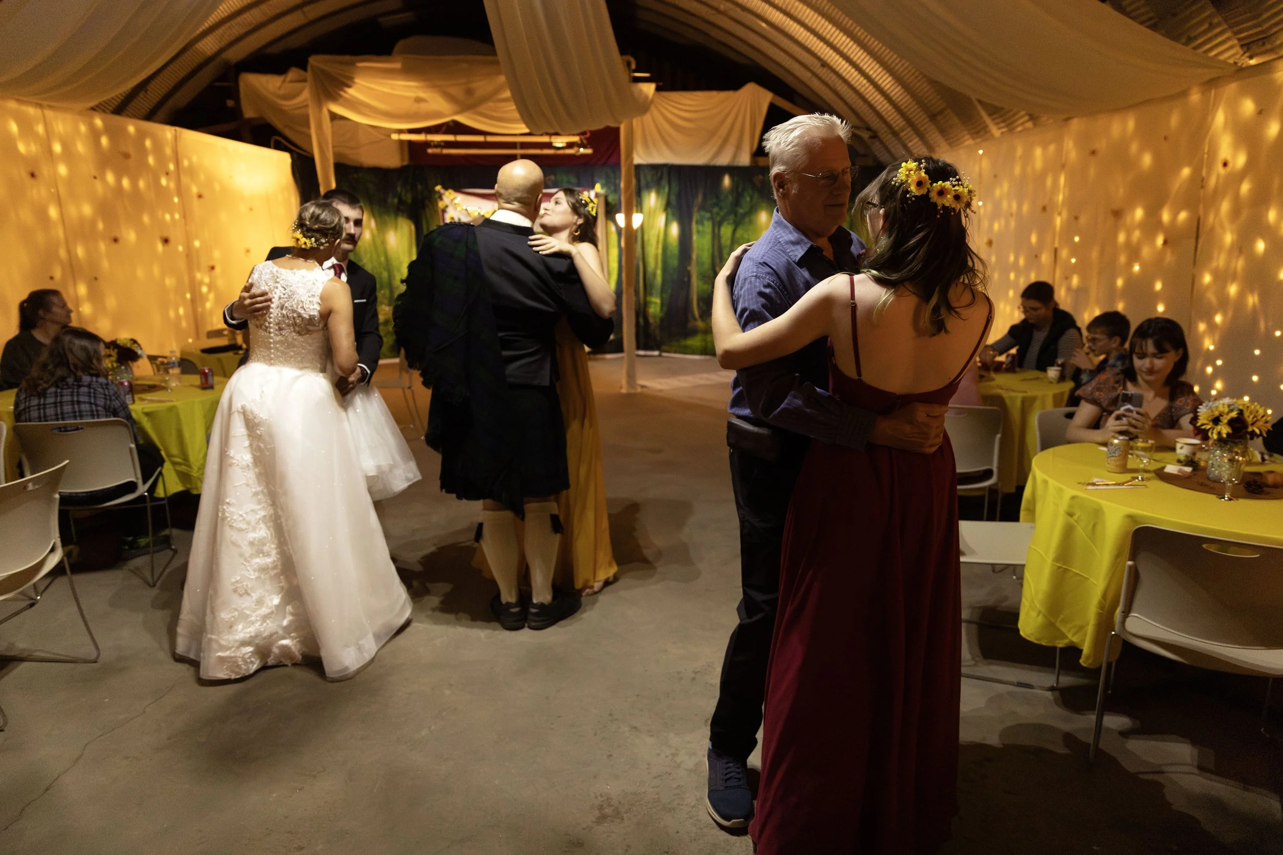 On a windy, sunny October day in 2024, Christine and Walt got married on their own land surrounded by a few friends, and family. It was fitting that sunflowers were part of the decor on such a sunny day. The wind added a sort of editorial feel to their portraits.