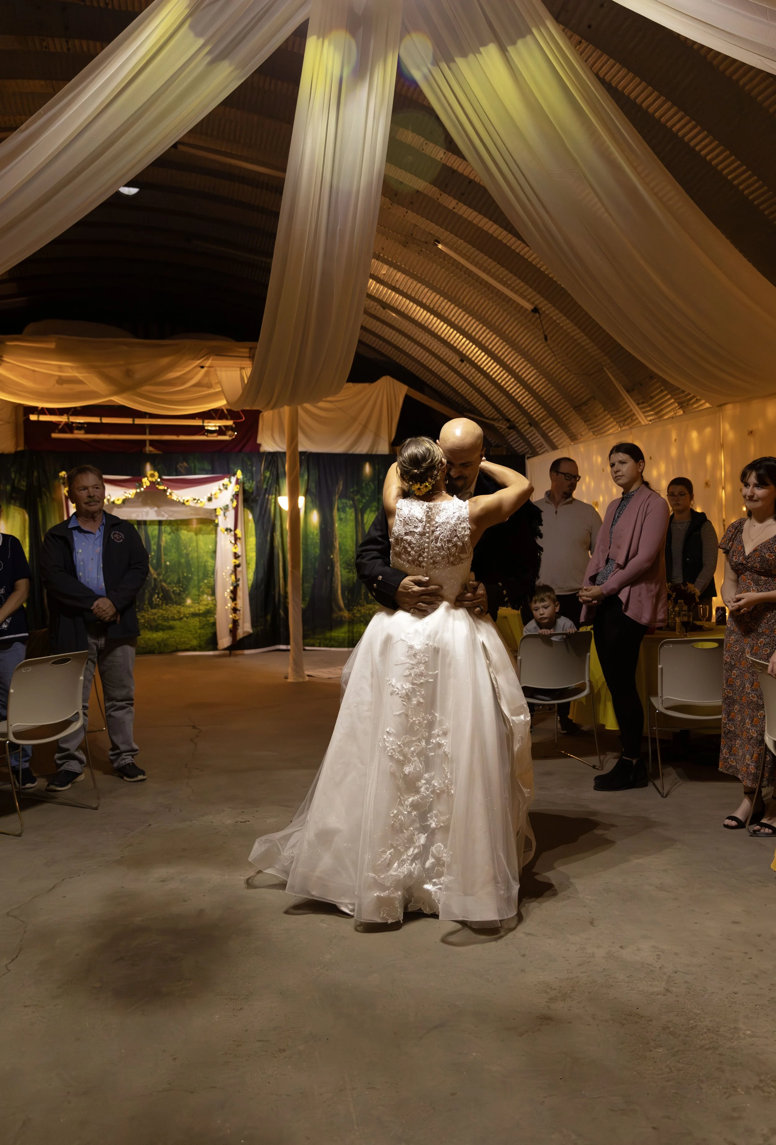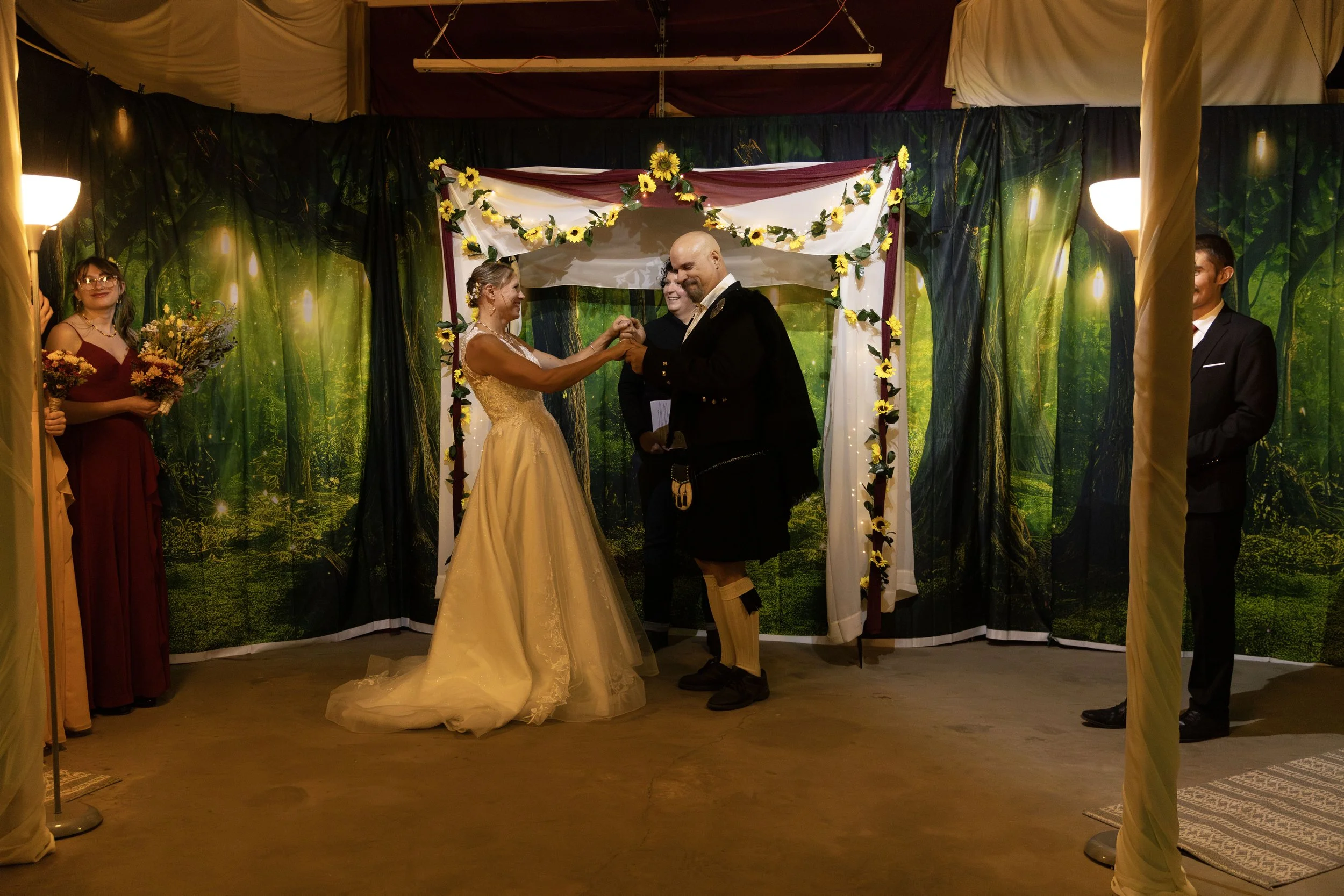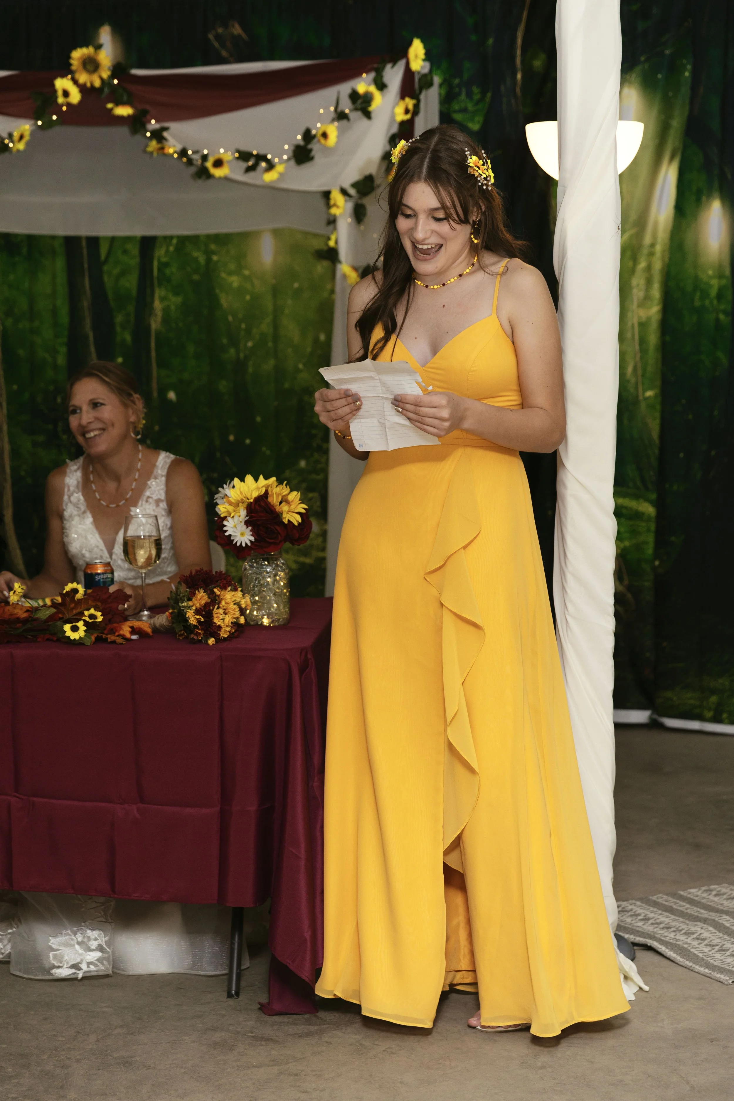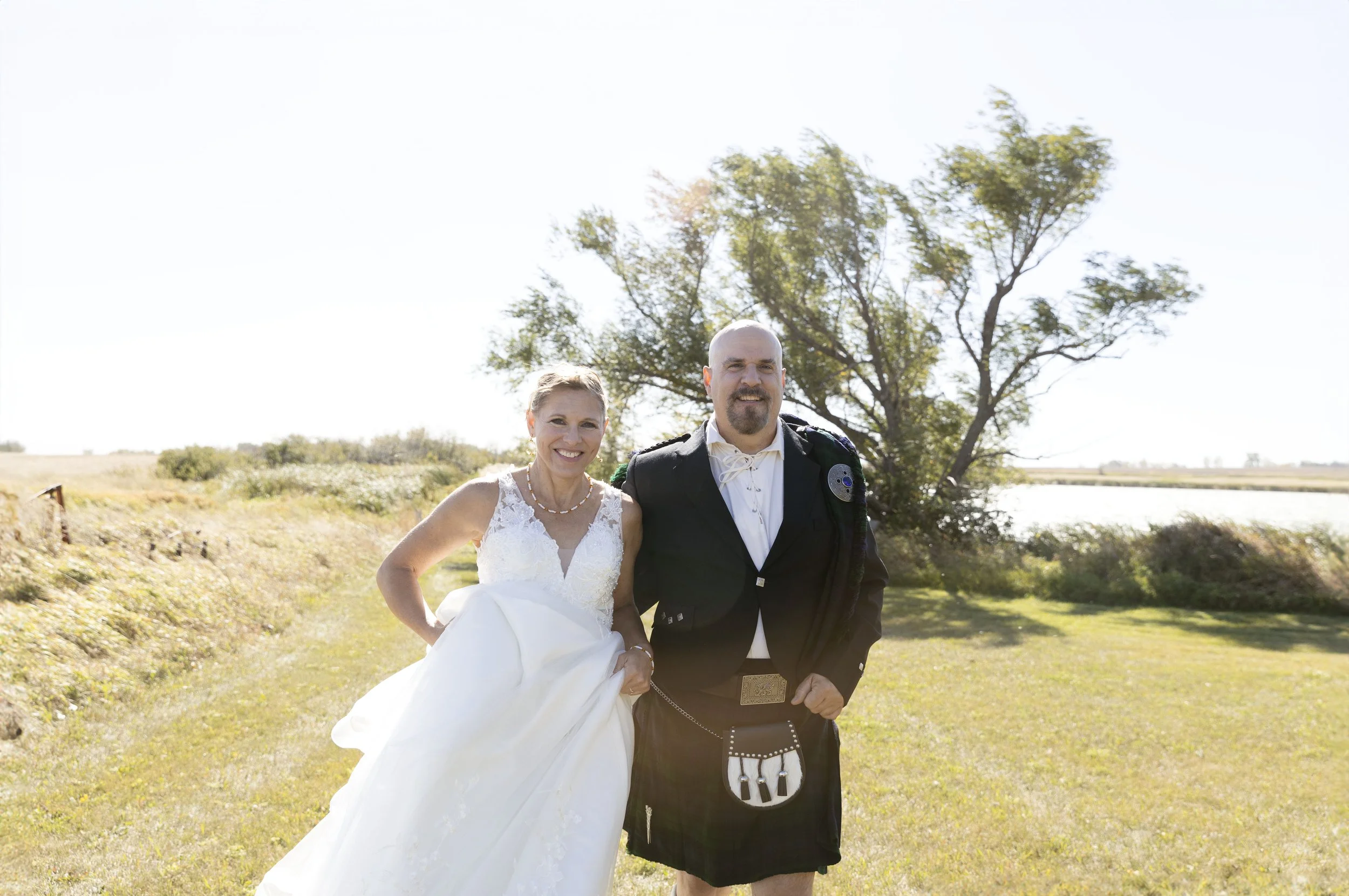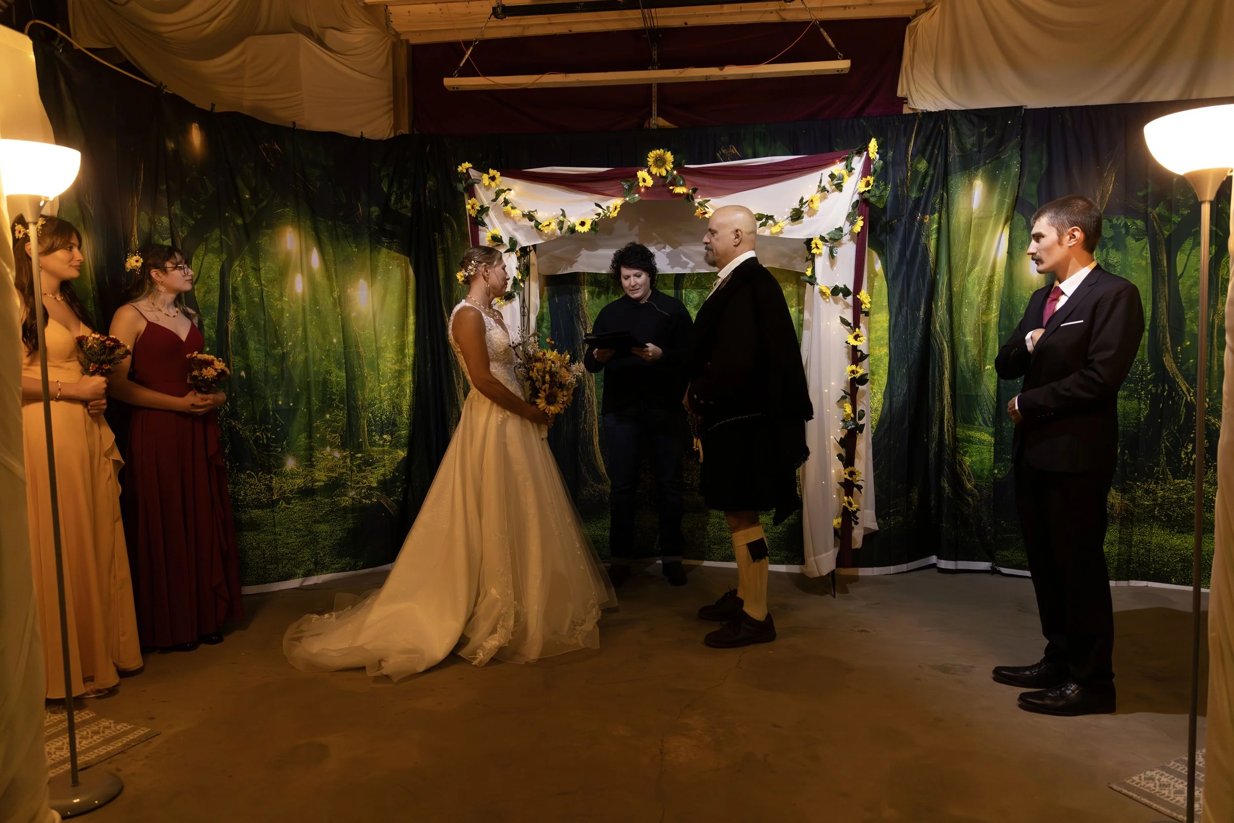 On a windy, sunny October day in 2024, Christine and Walt got married on their own land surrounded by a few friends, and family. It was fitting that sunflowers were part of the decor on such a sunny day. The wind added a sort of editorial feel to their portraits.
