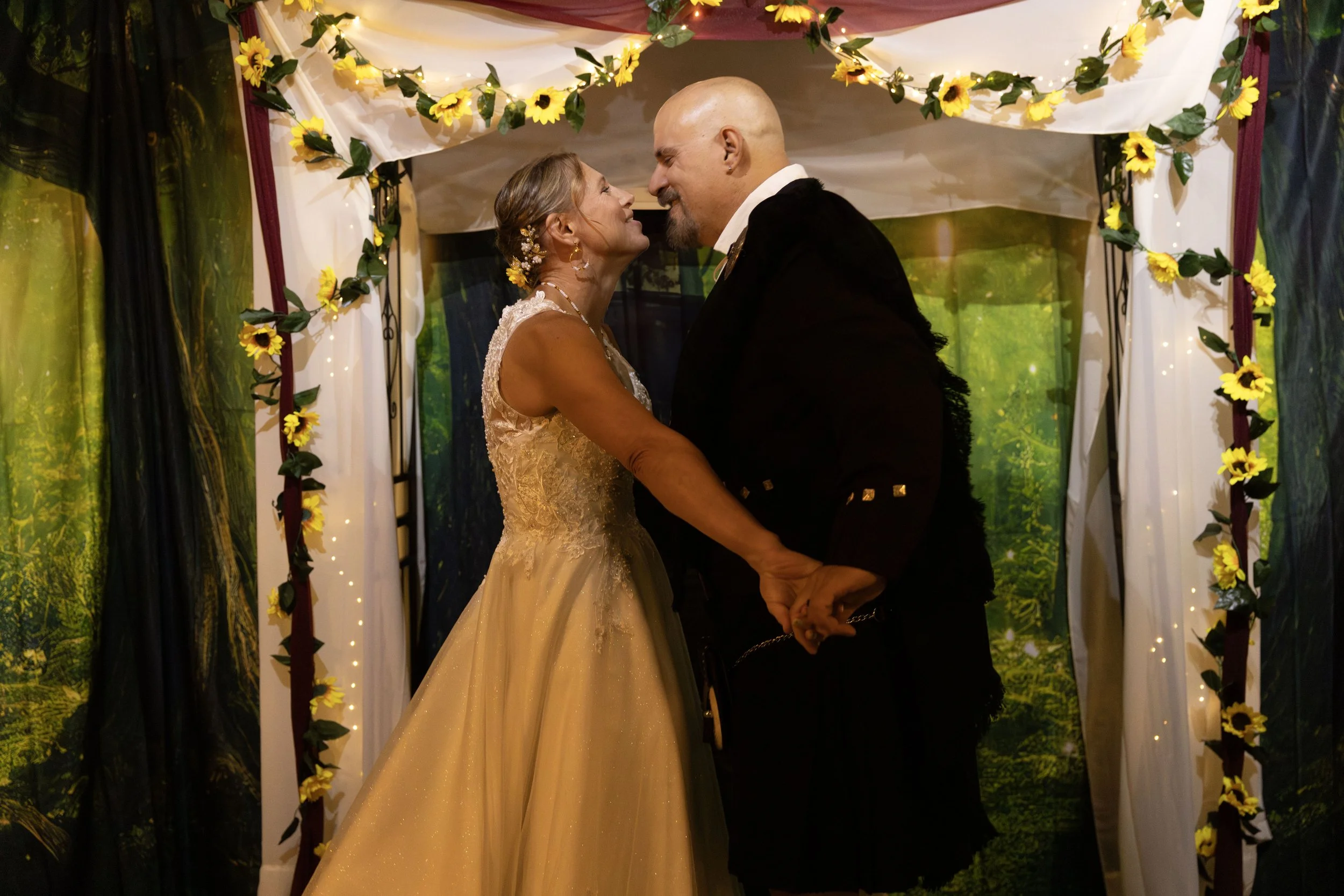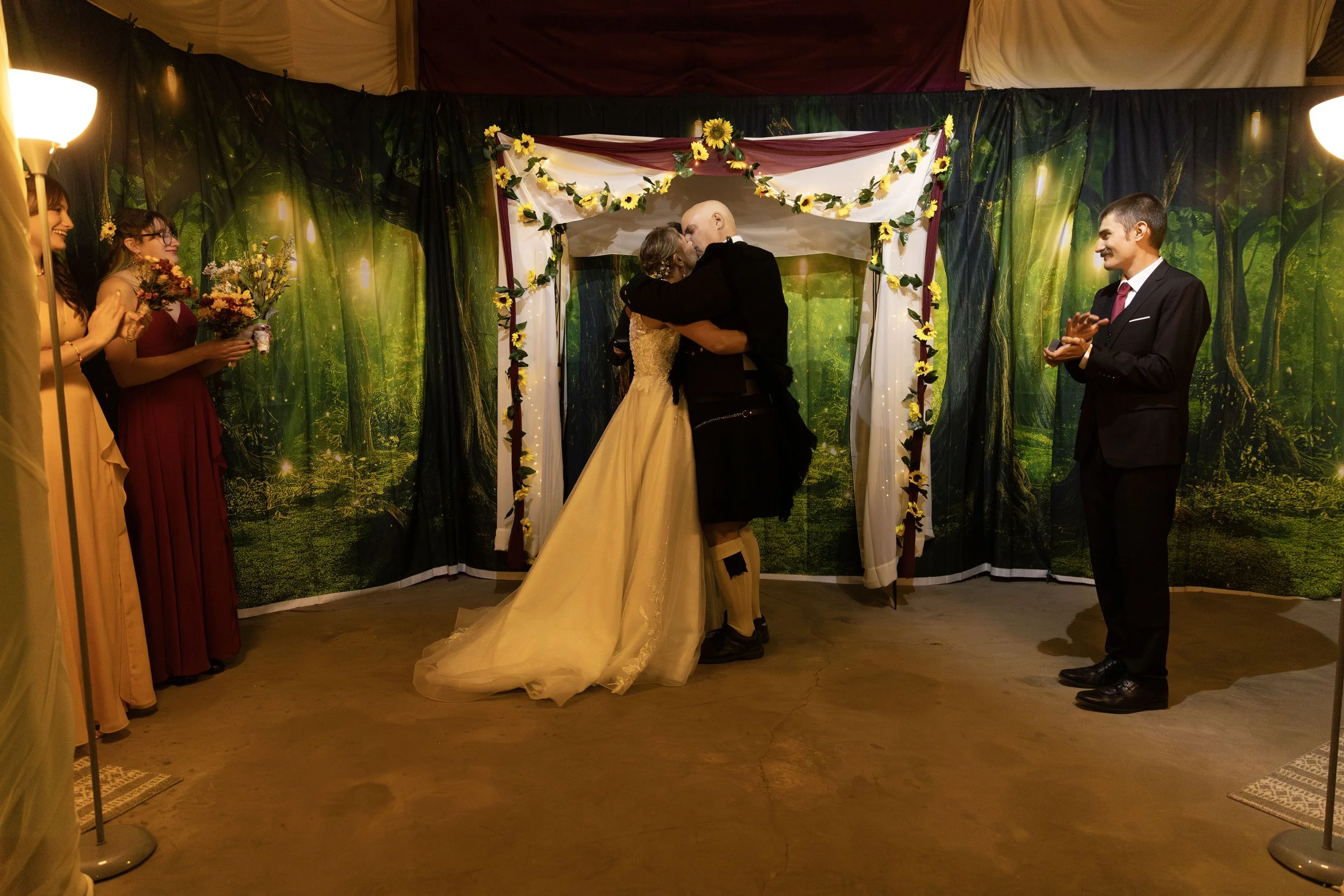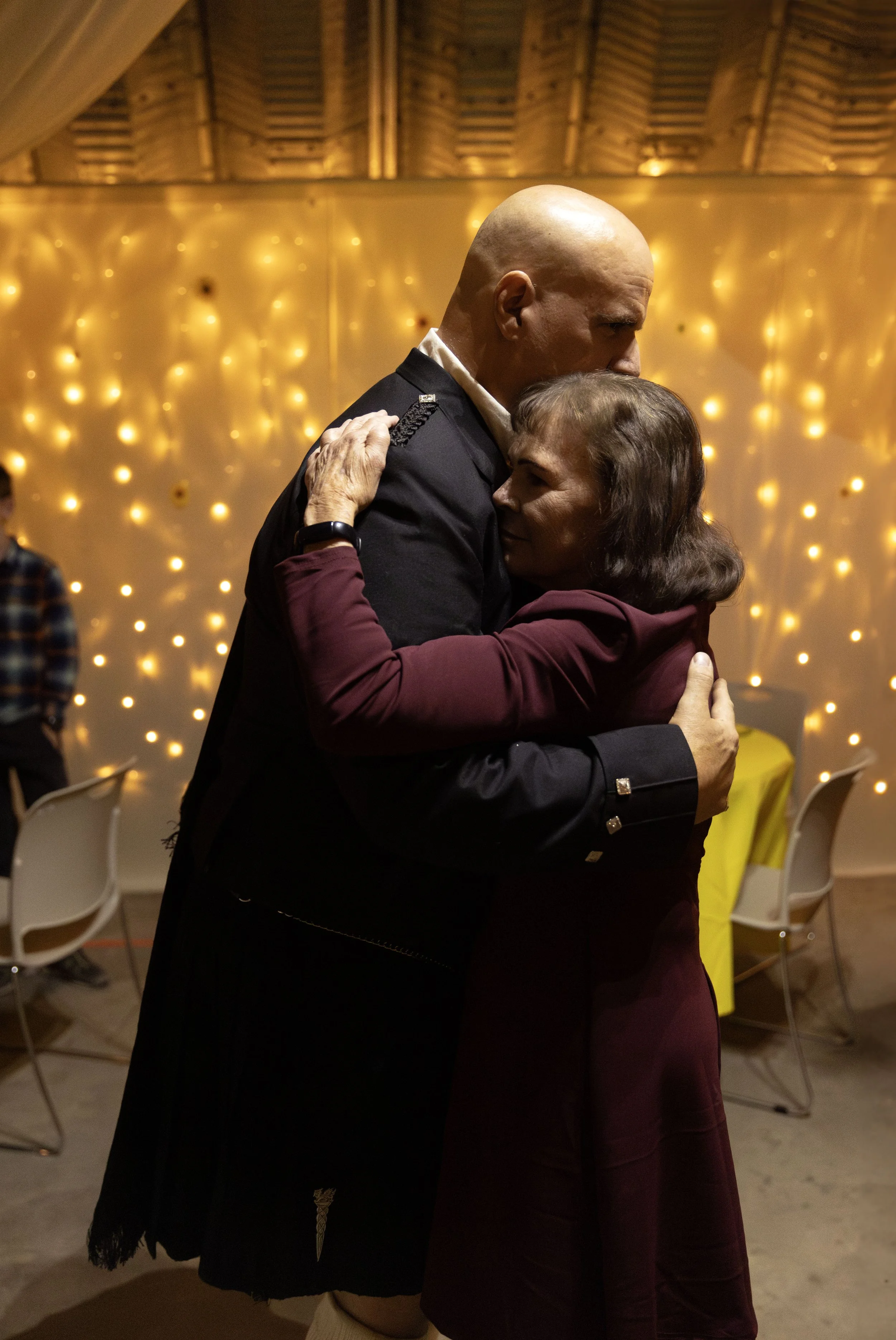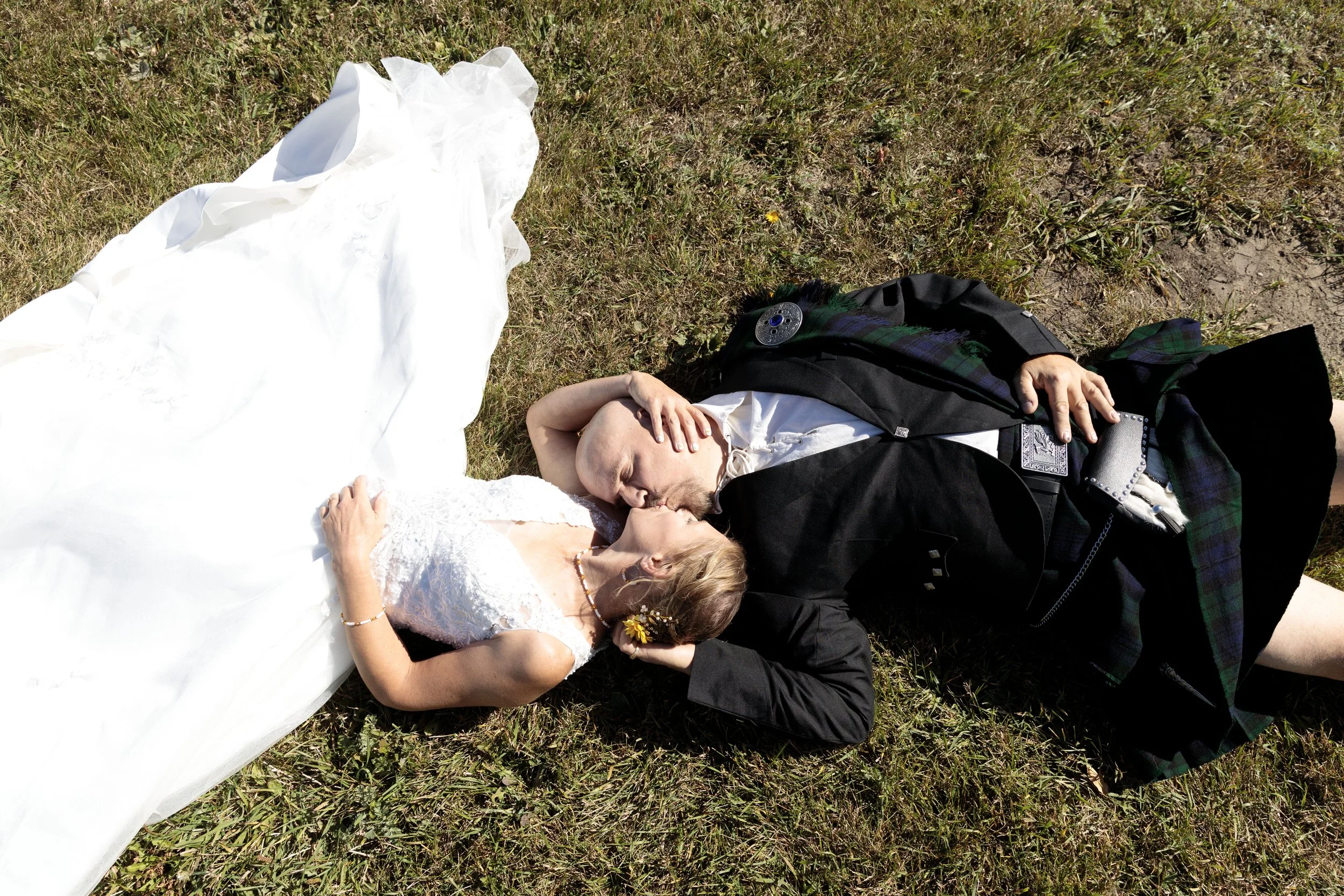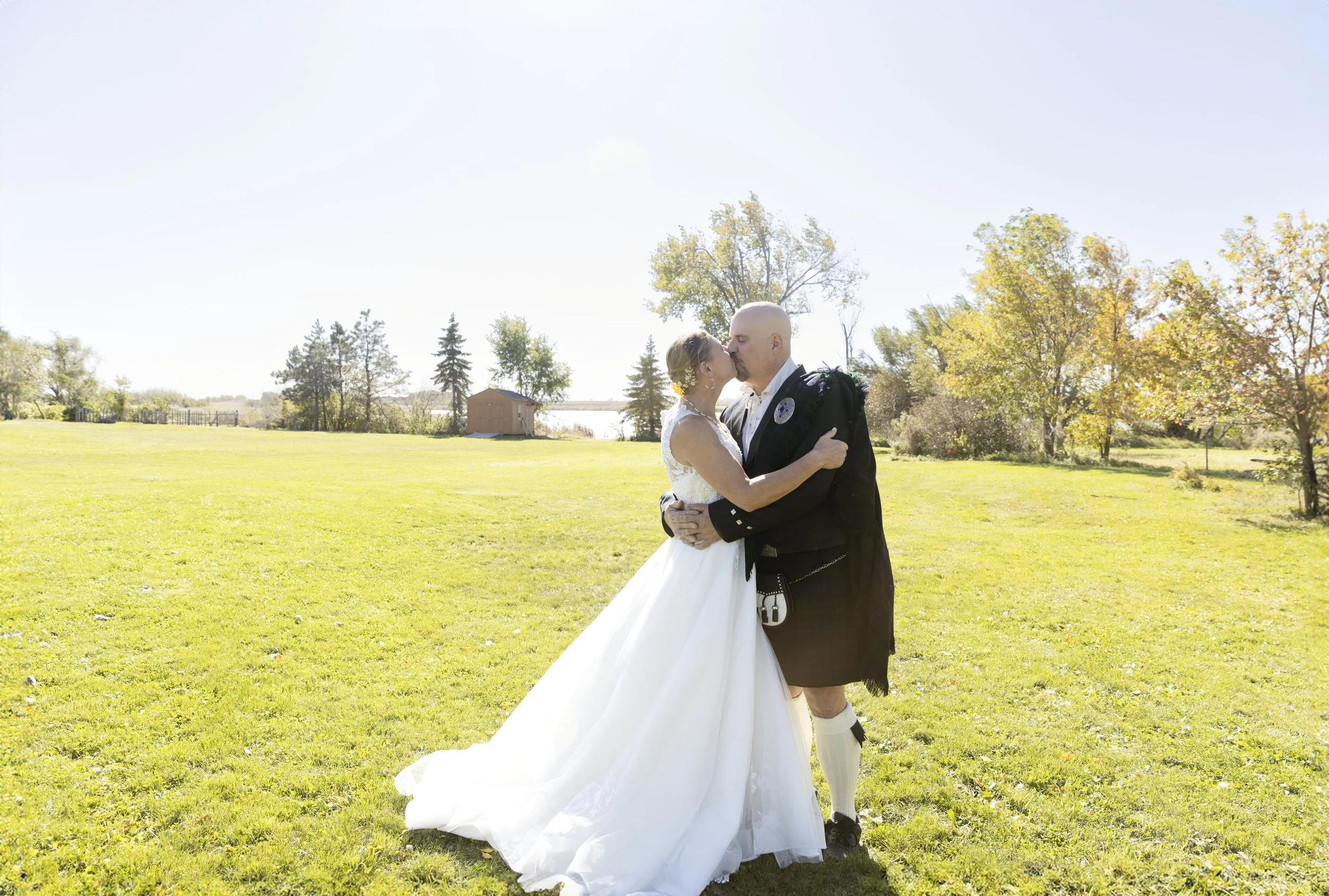 On a windy, sunny October day in 2024, Christine and Walt got married on their own land surrounded by a few friends, and family. It was fitting that sunflowers were part of the decor on such a sunny day. The wind added a sort of editorial feel to their portraits.