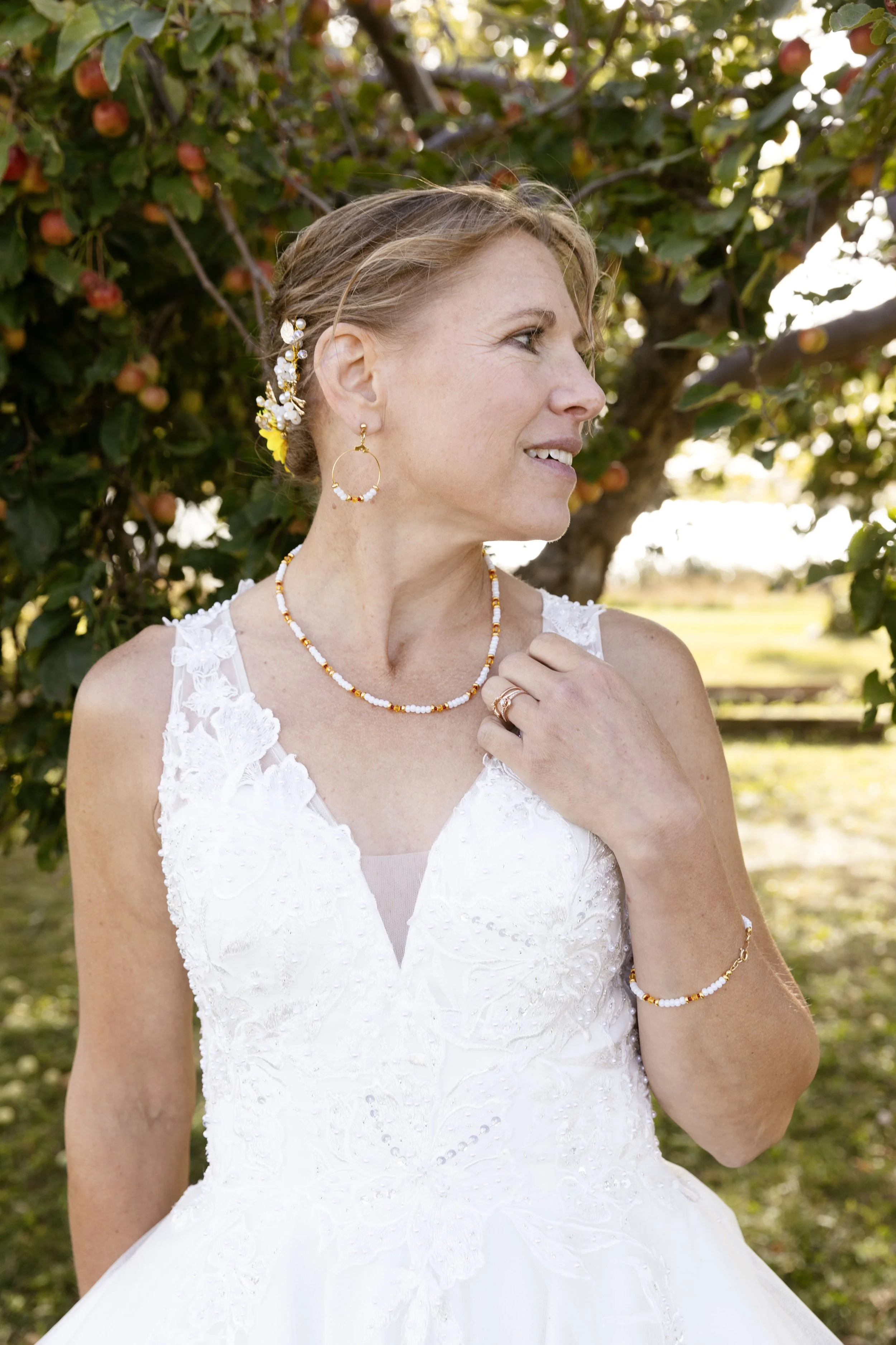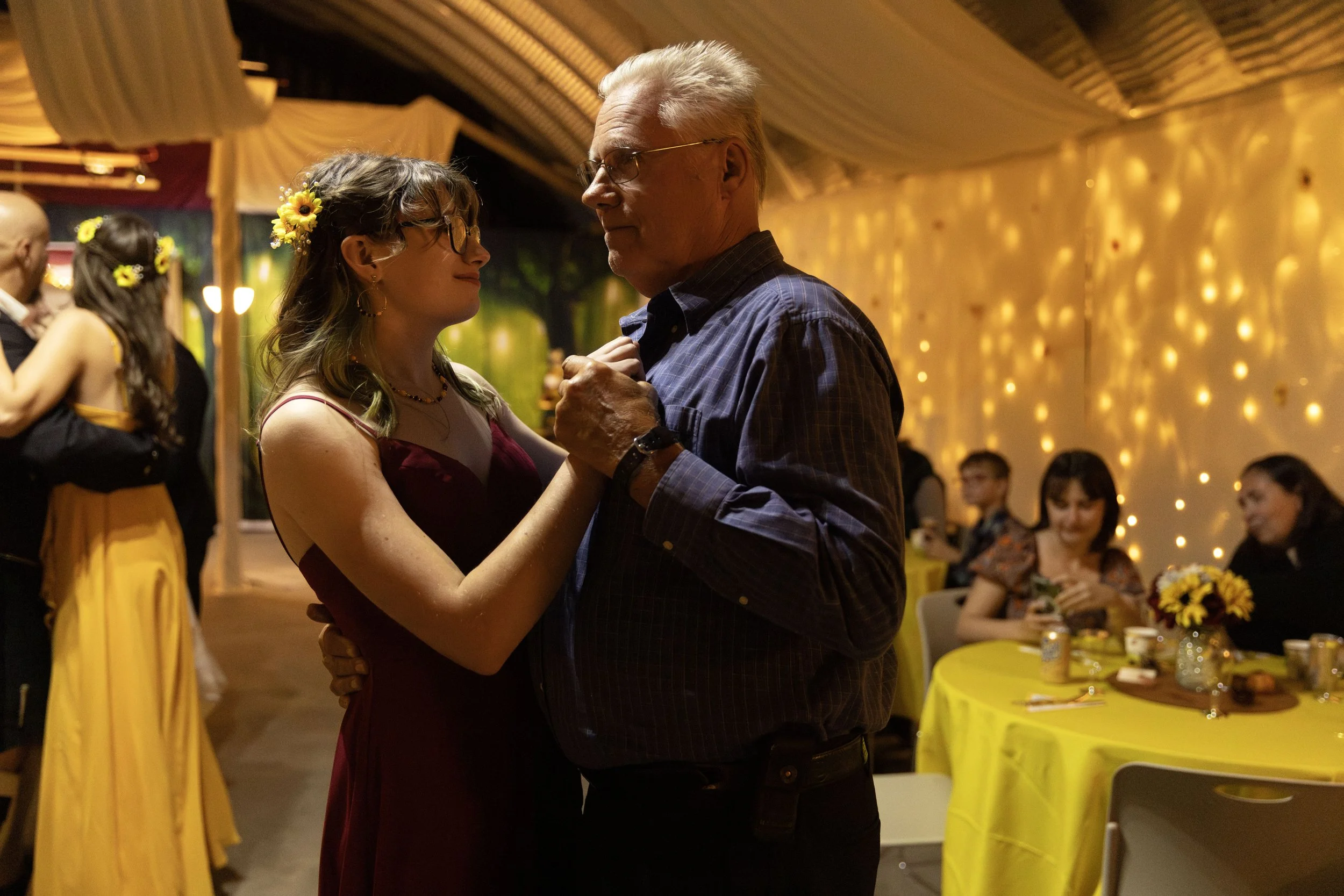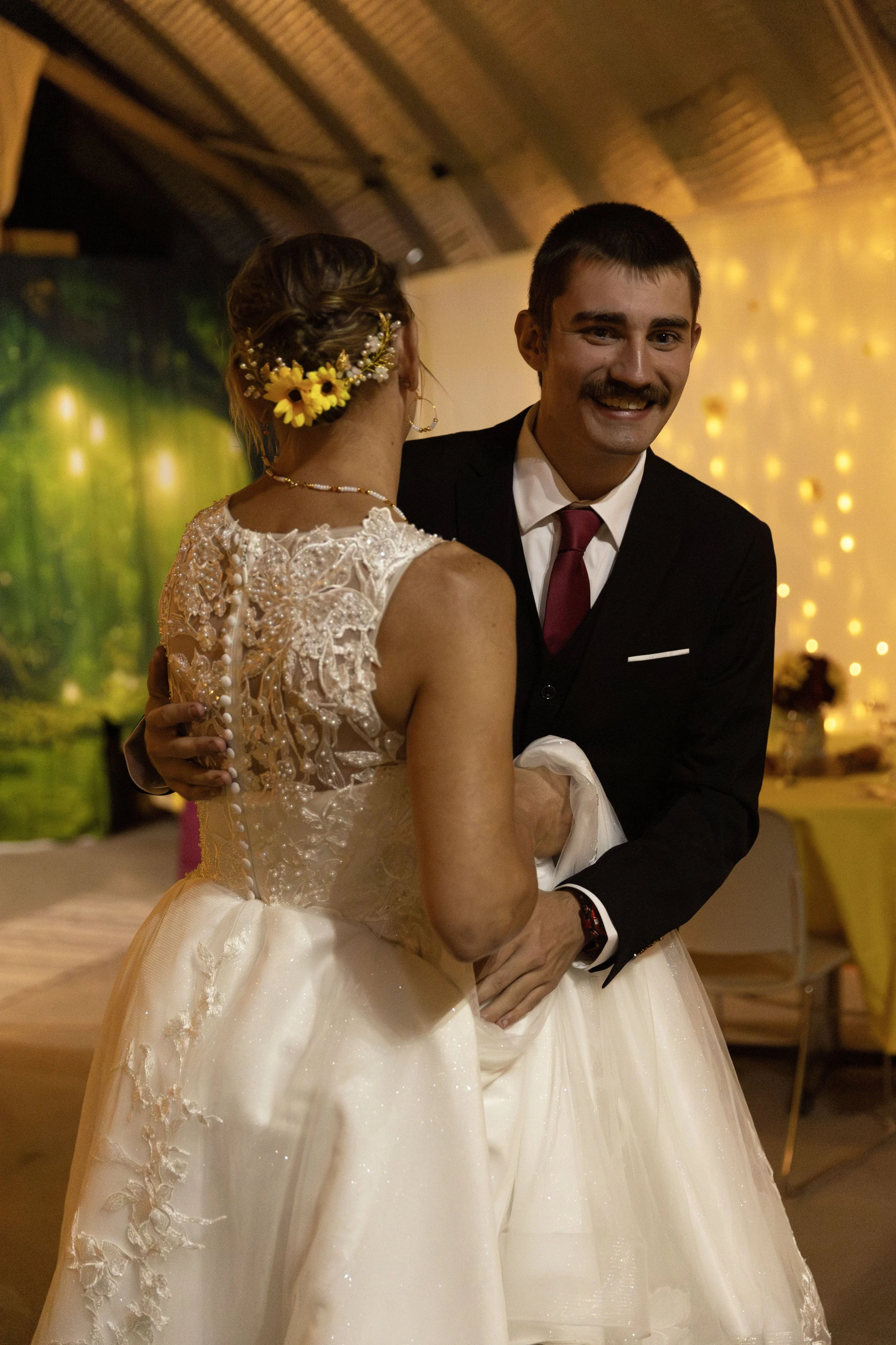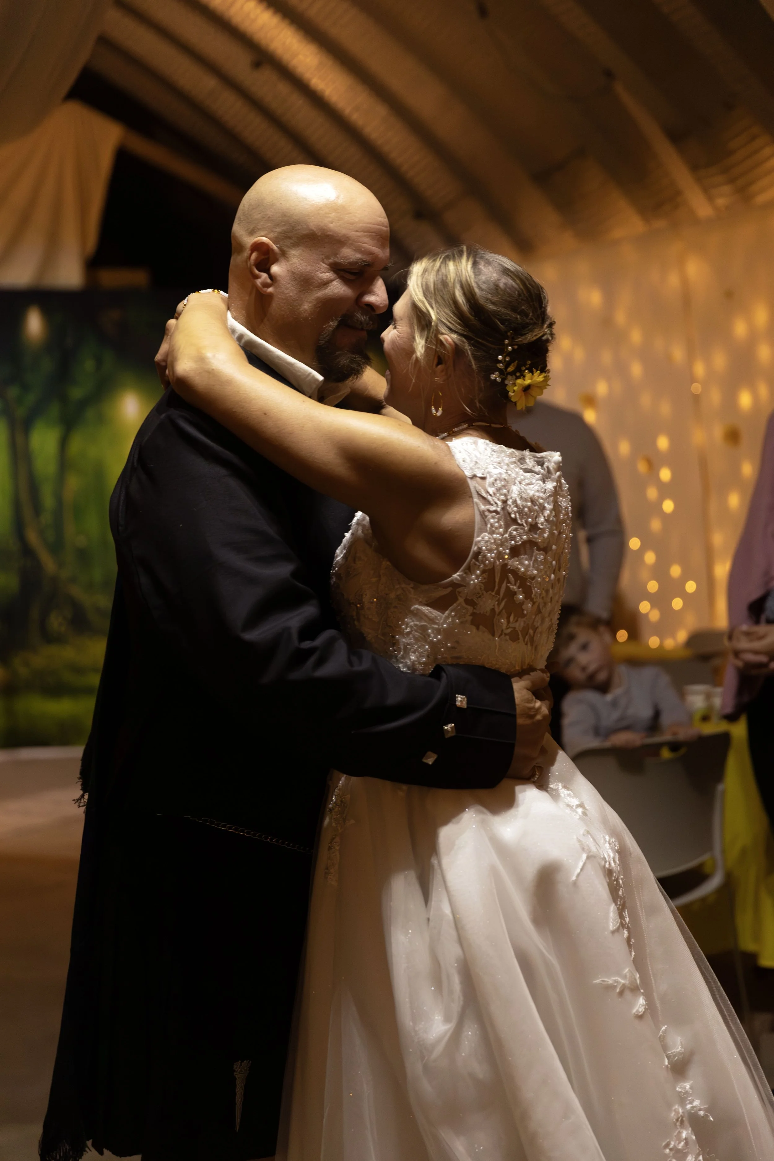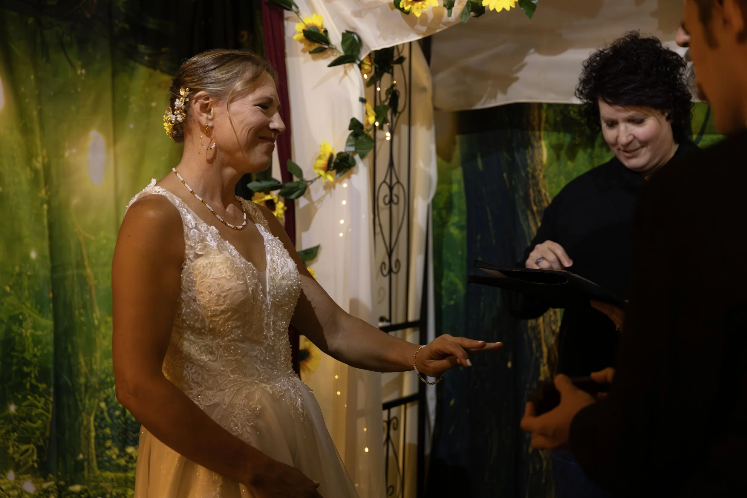 On a windy, sunny October day in 2024, Christine and Walt got married on their own land surrounded by a few friends, and family. It was fitting that sunflowers were part of the decor on such a sunny day. The wind added a sort of editorial feel to their portraits.